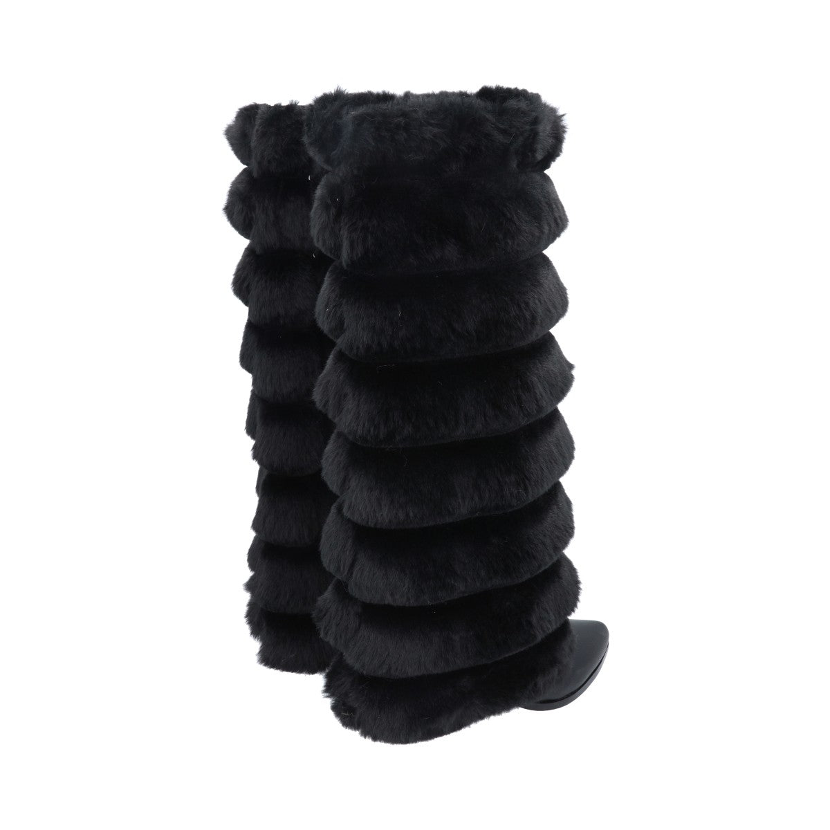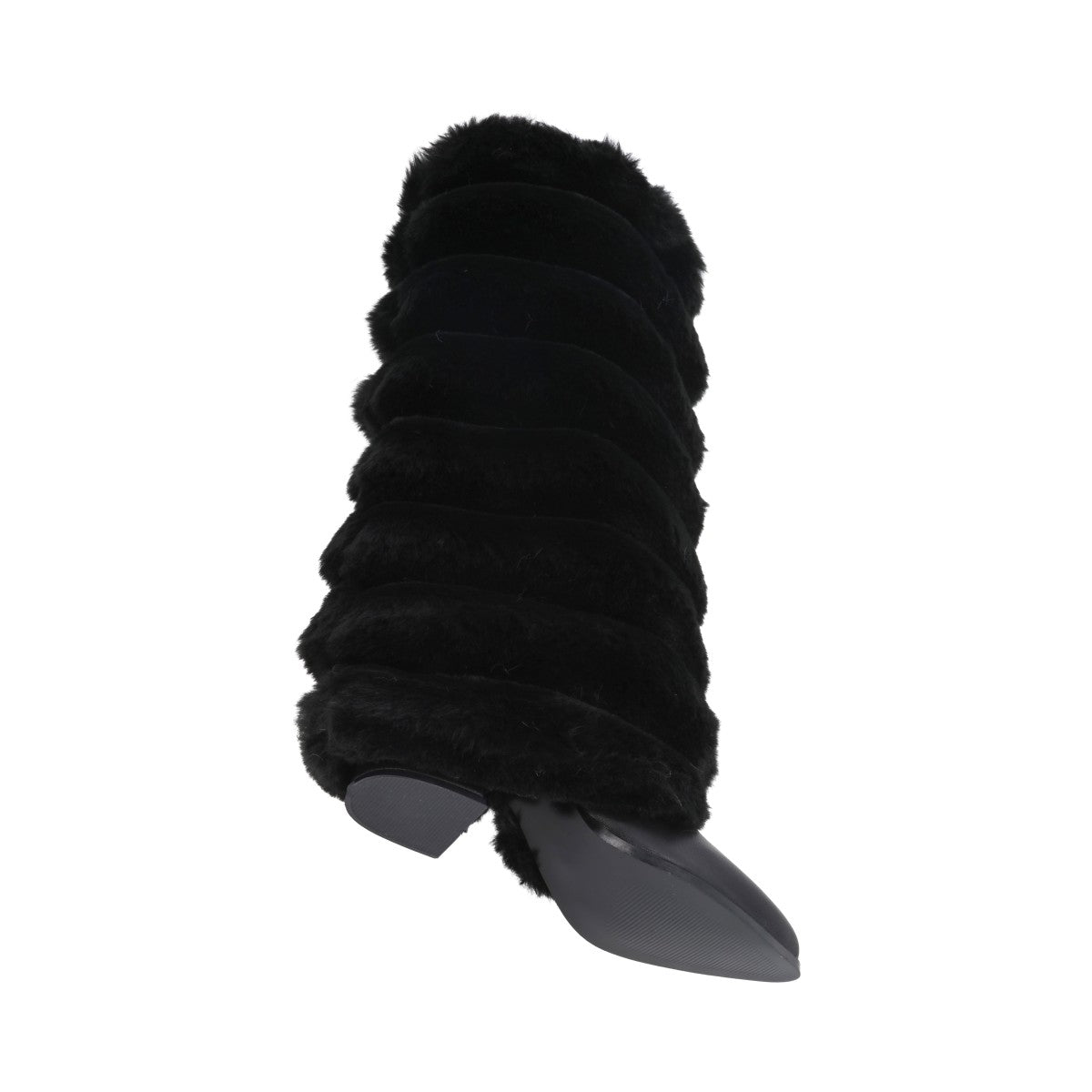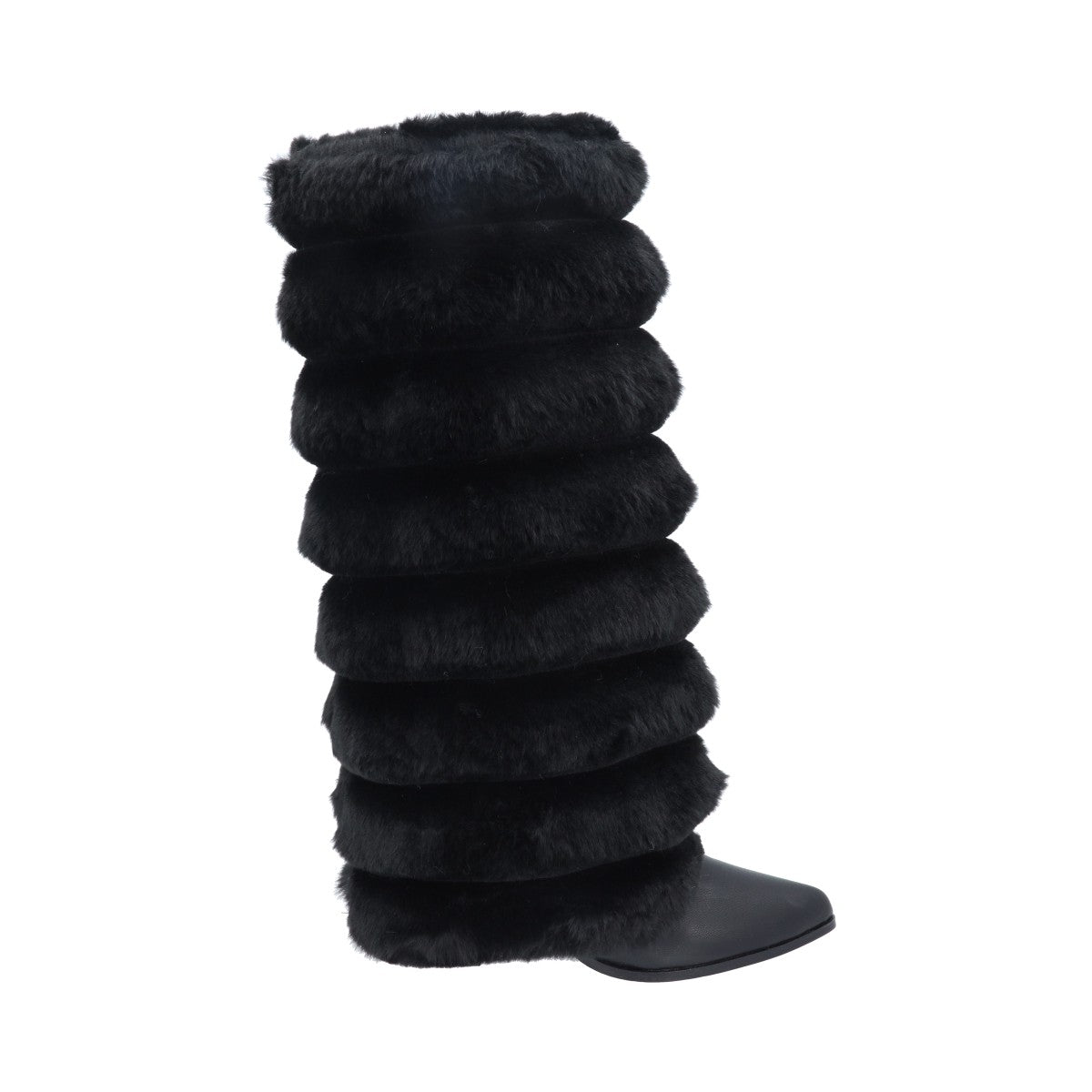Bota puntal de tacón larga maxi con peluche para mujer de material negro cabra piel sintética con cierre reforzado lateral, altura hasta abajo de la rodilla.