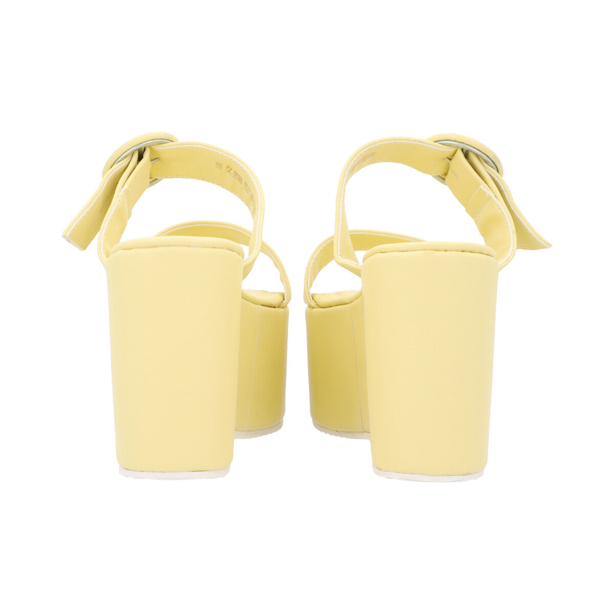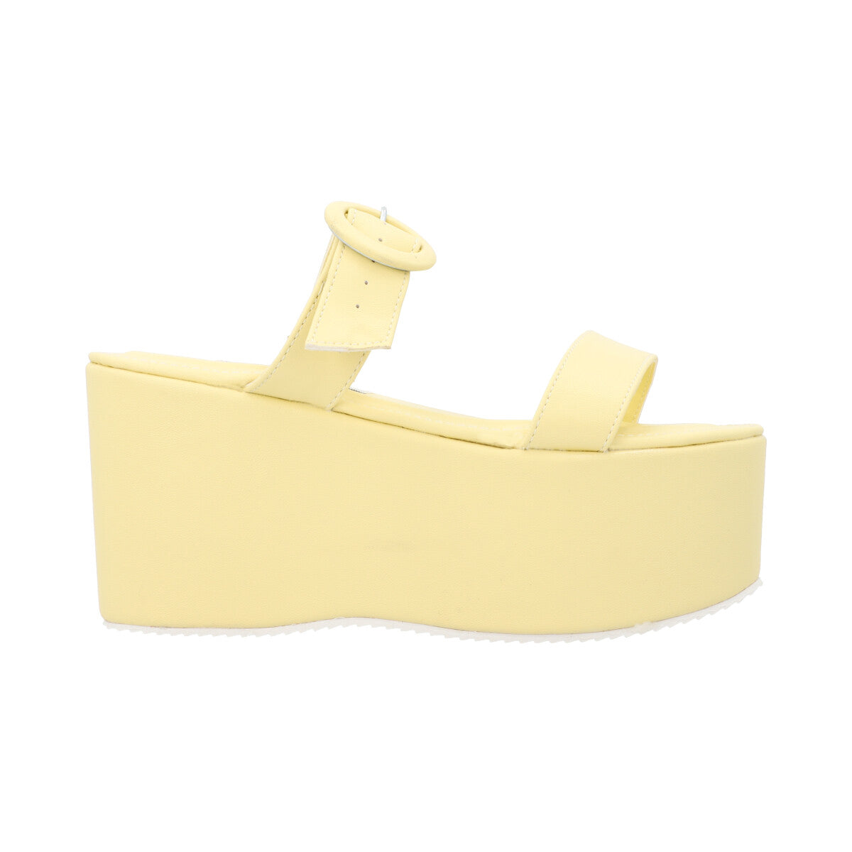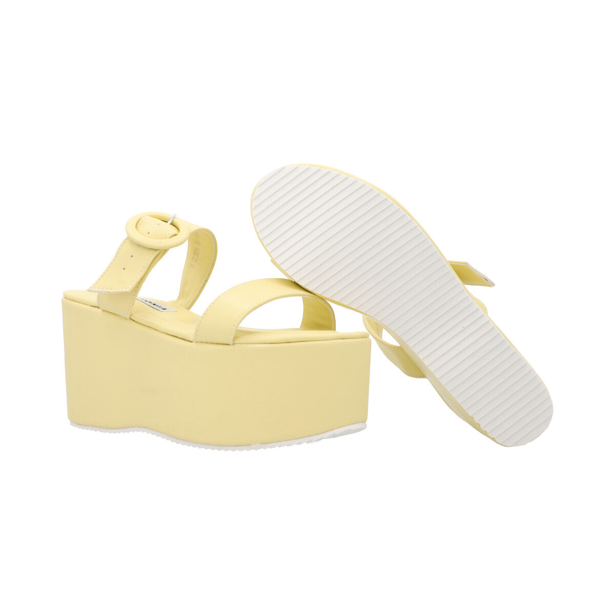 Sandalia de plataforma trendy para mujer color amarillo betún con doble tira y látigo ajustable.