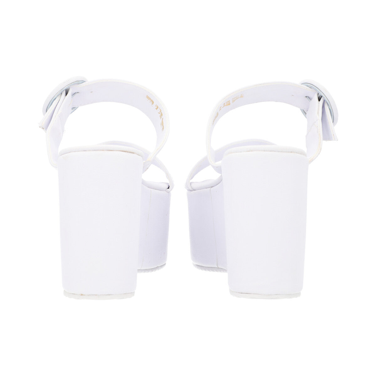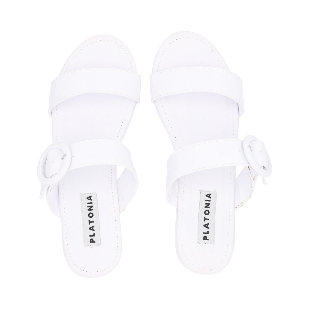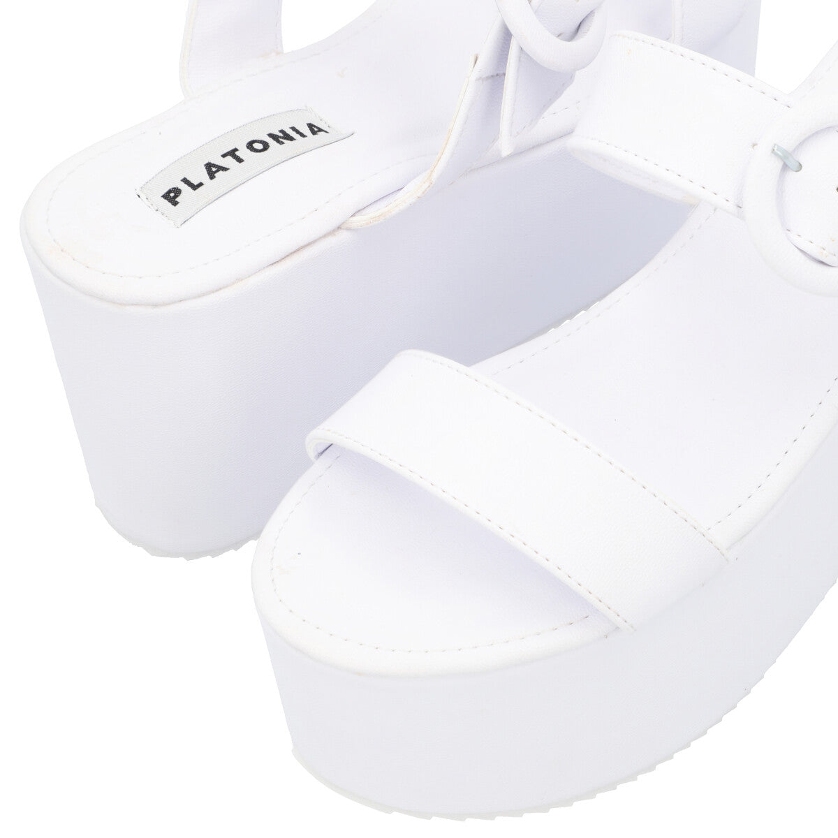 Sandalia de plataforma trendy para mujer color blanco con doble tira y látigo ajustable.