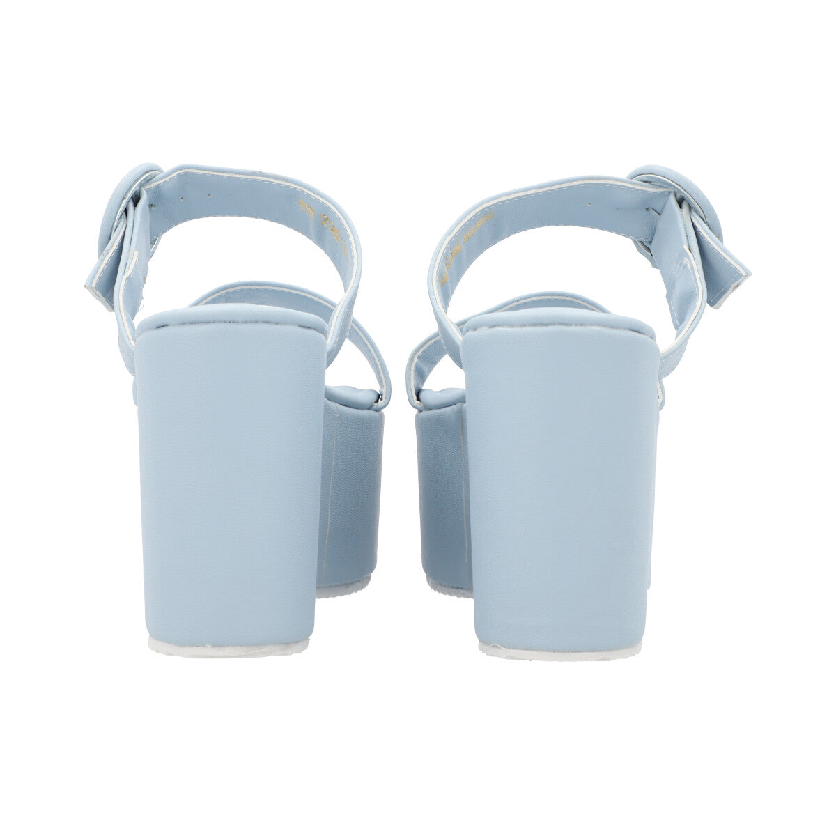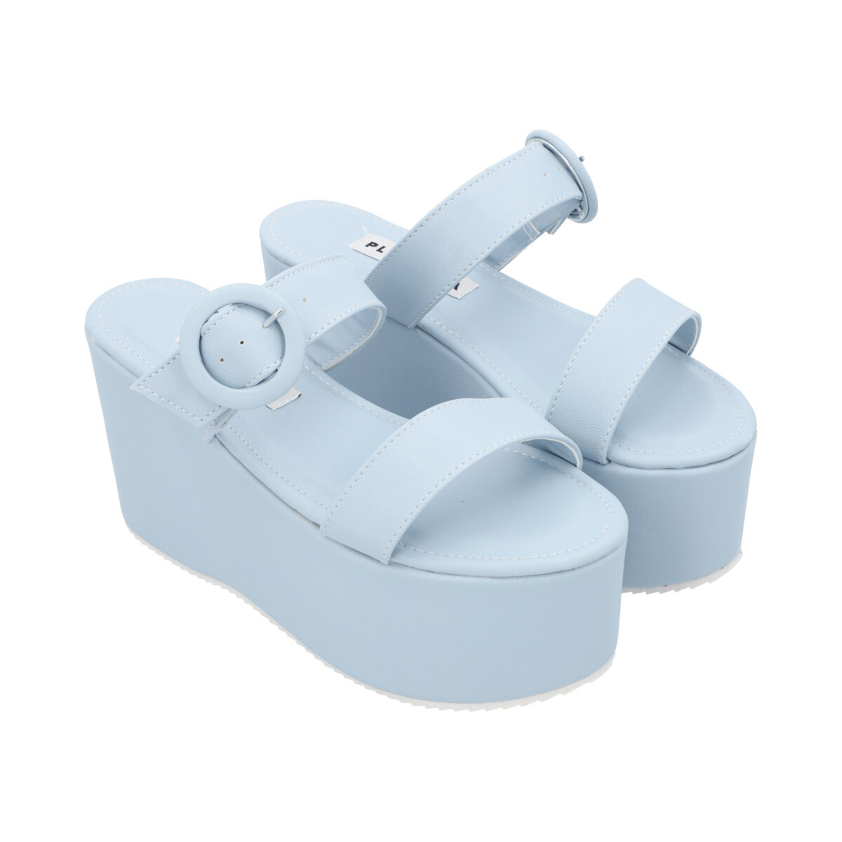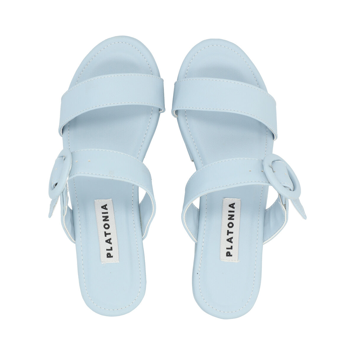 Sandalia de plataforma trendy para mujer color celeste con doble tira y látigo ajustable.