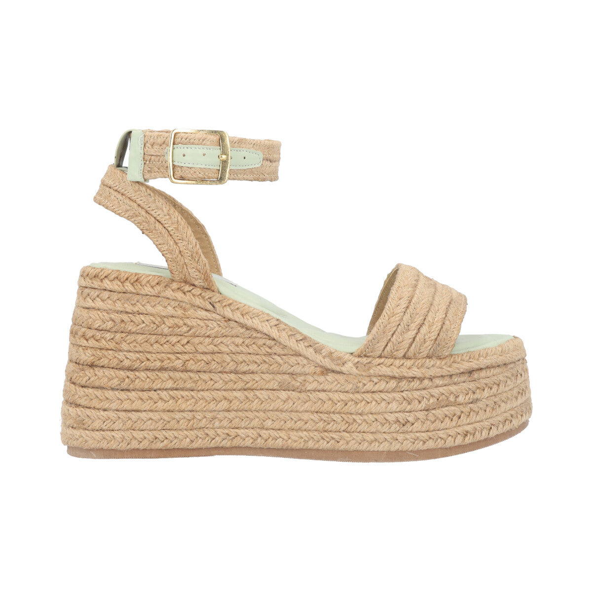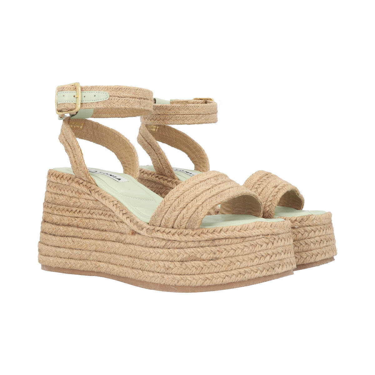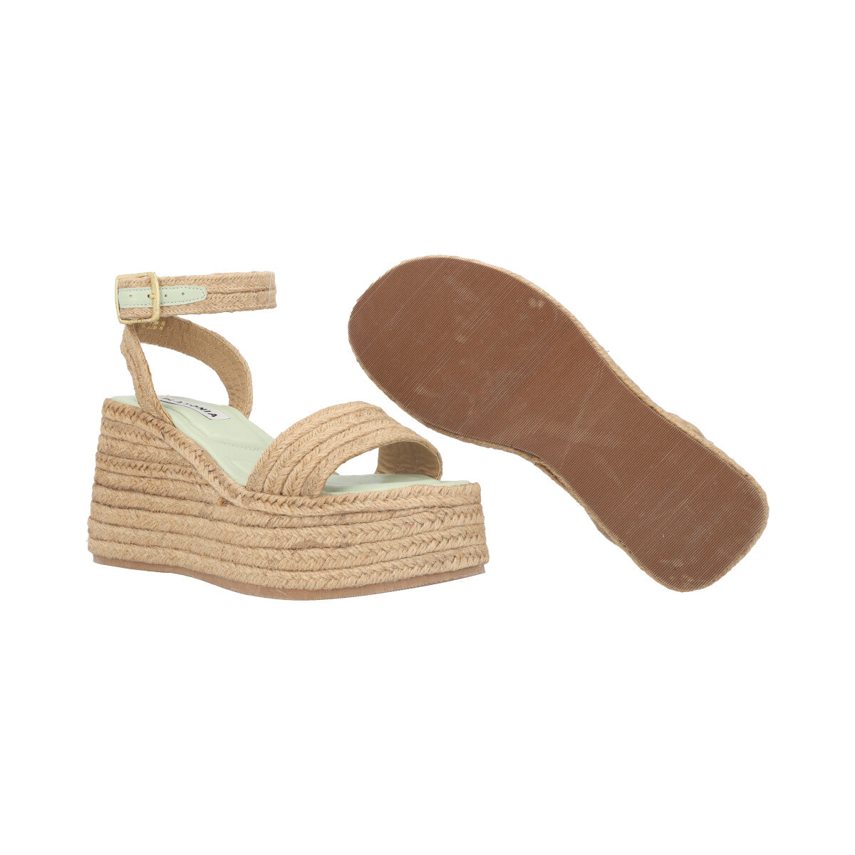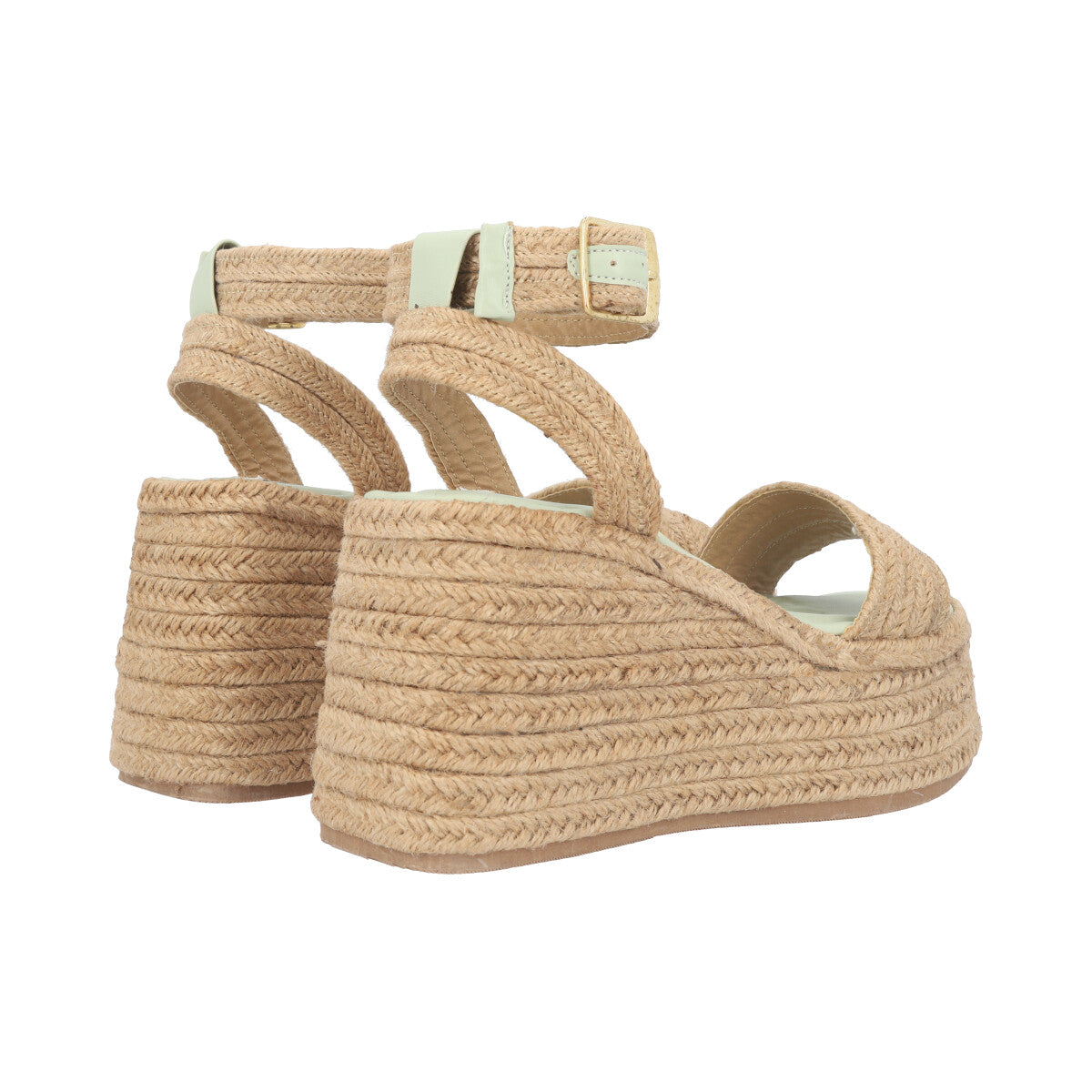 Sandalia de plataforma con yute natural para mujer color pistache con látigo ajustable reforzado y plantilla de memory foam.