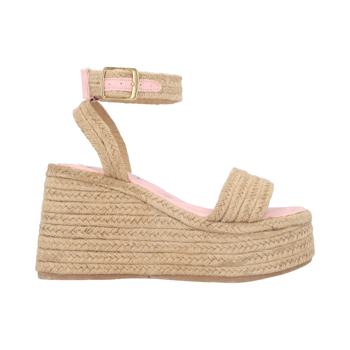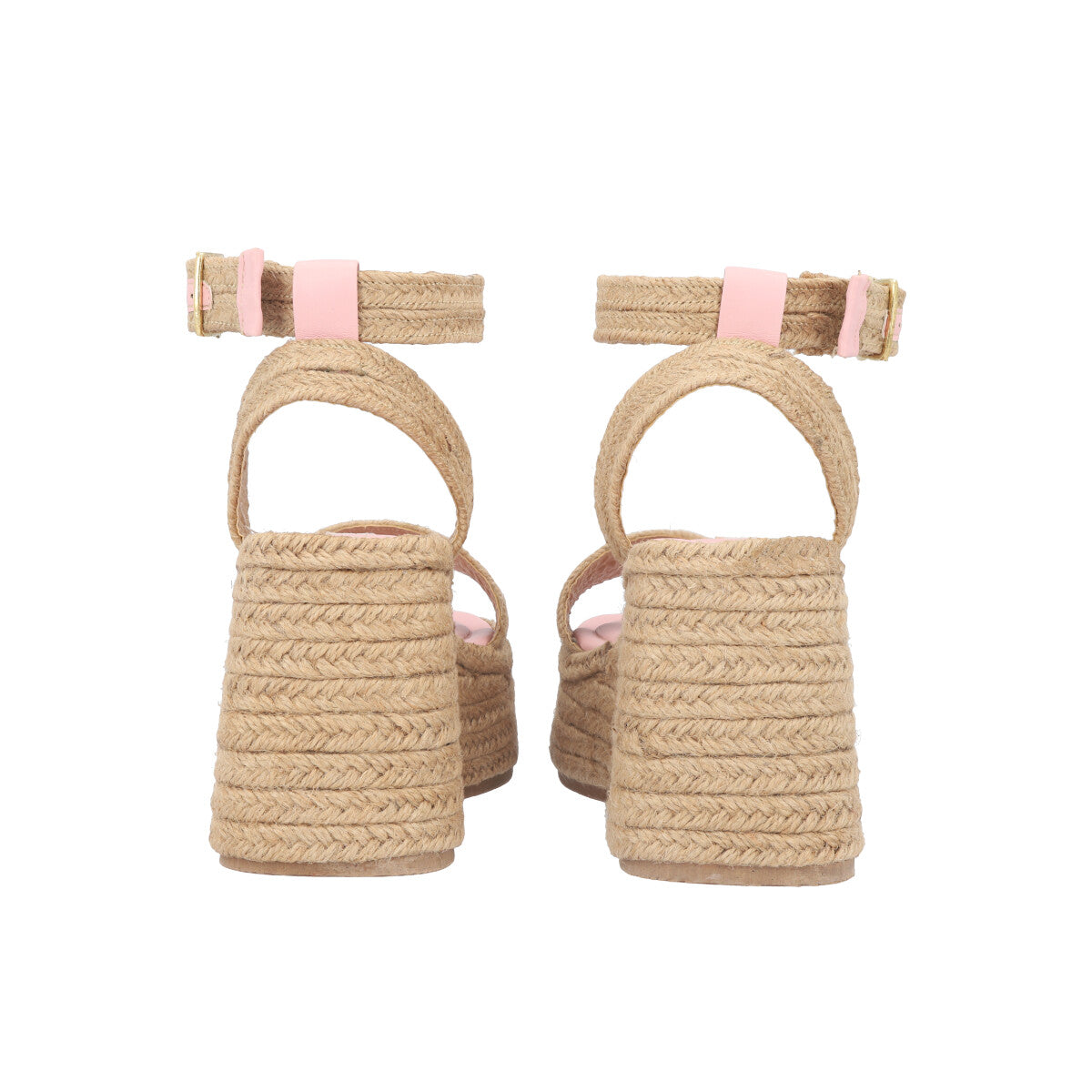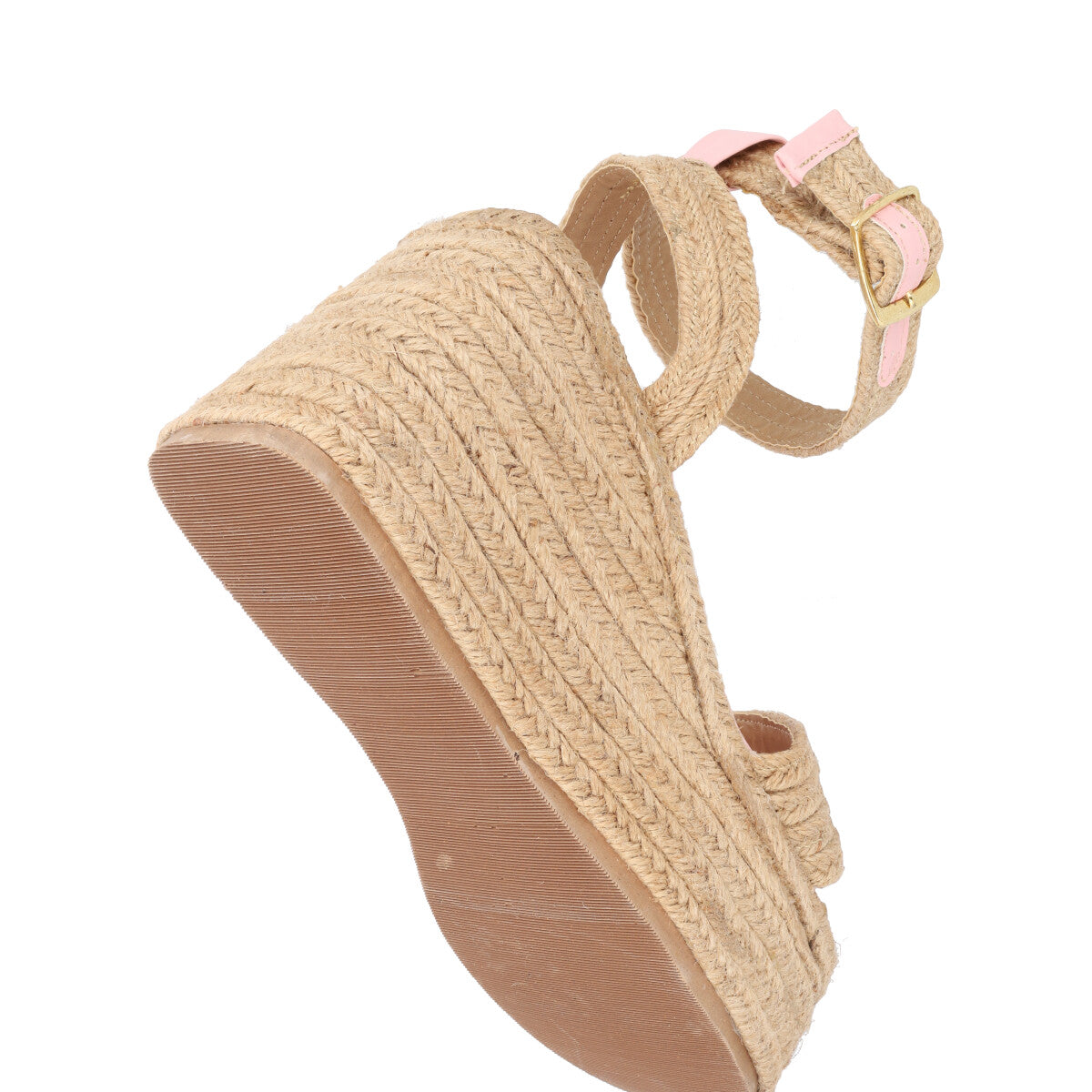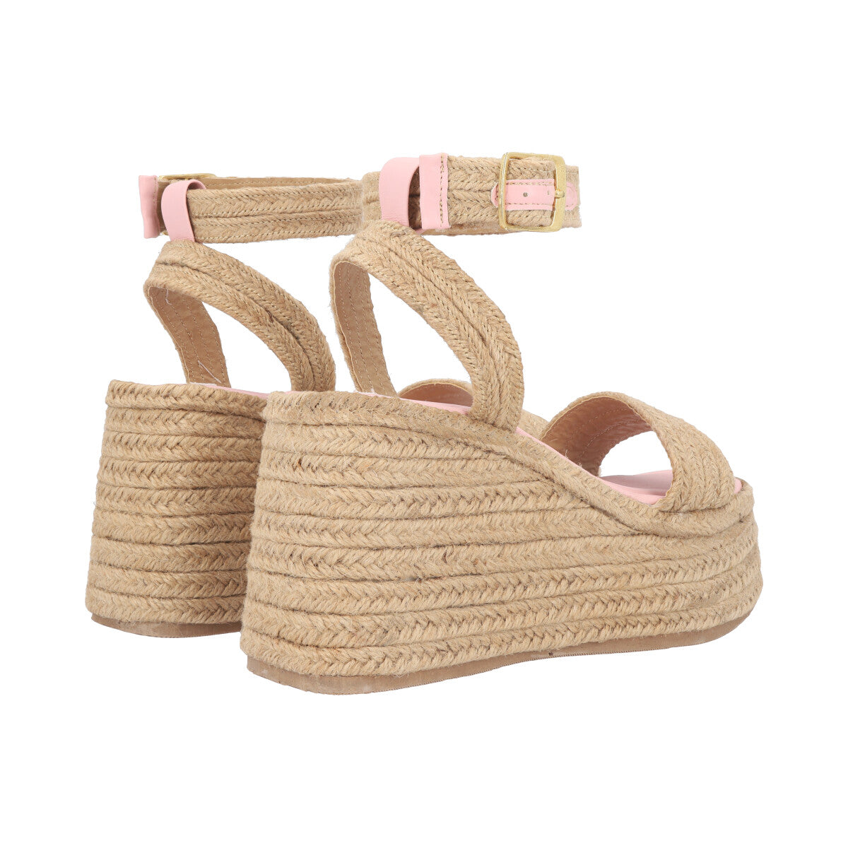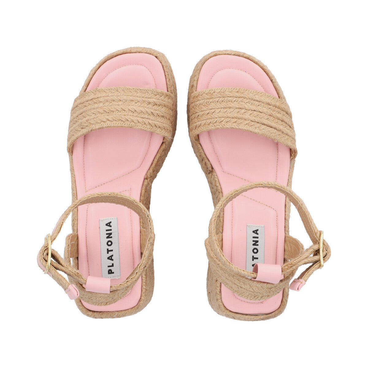 Sandalia de plataforma con yute natural para mujer color rosa pop con látigo ajustable reforzado y plantilla de memory foam.