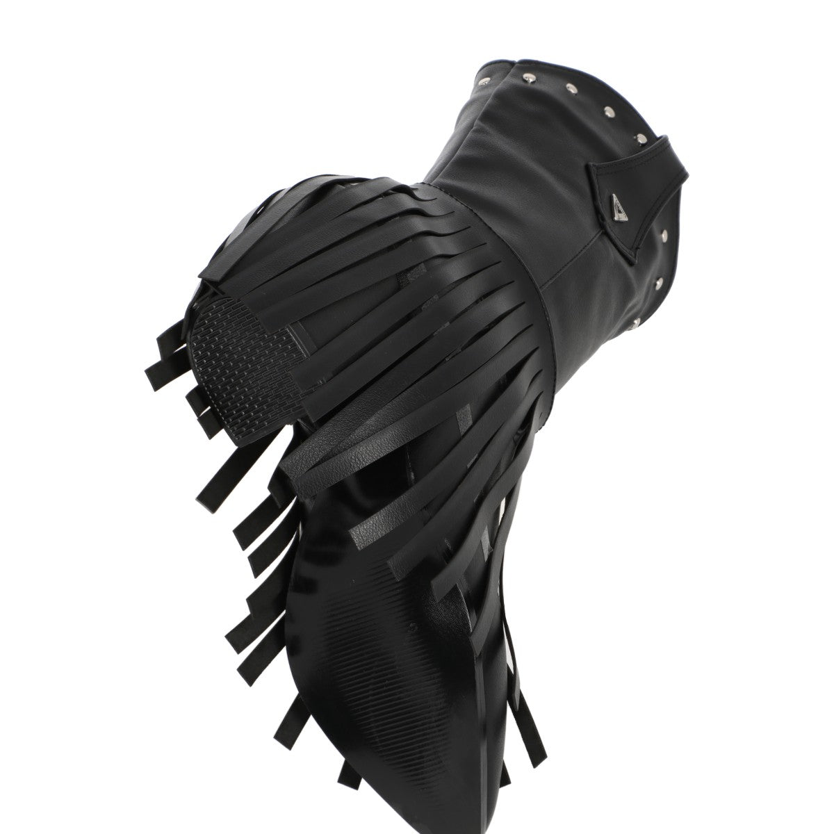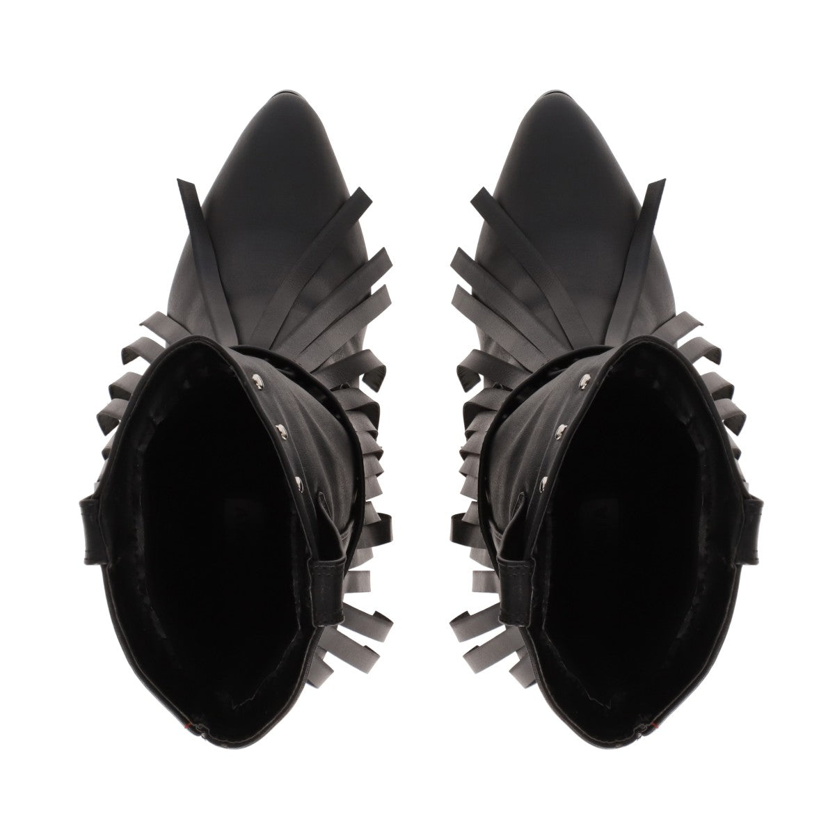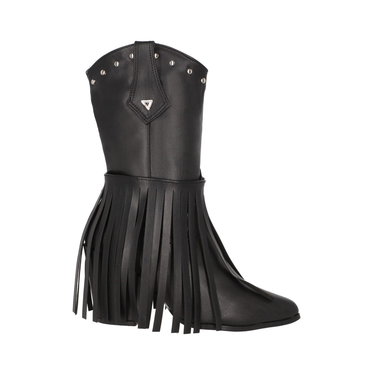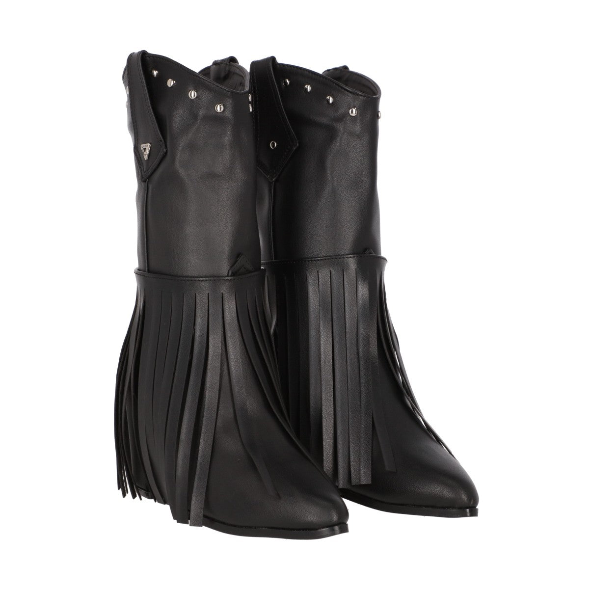 Bota vaquera con flecos cowboy para mujer material cabra piel sintético color negro , bota vaquera camelia platonia para mujer.
