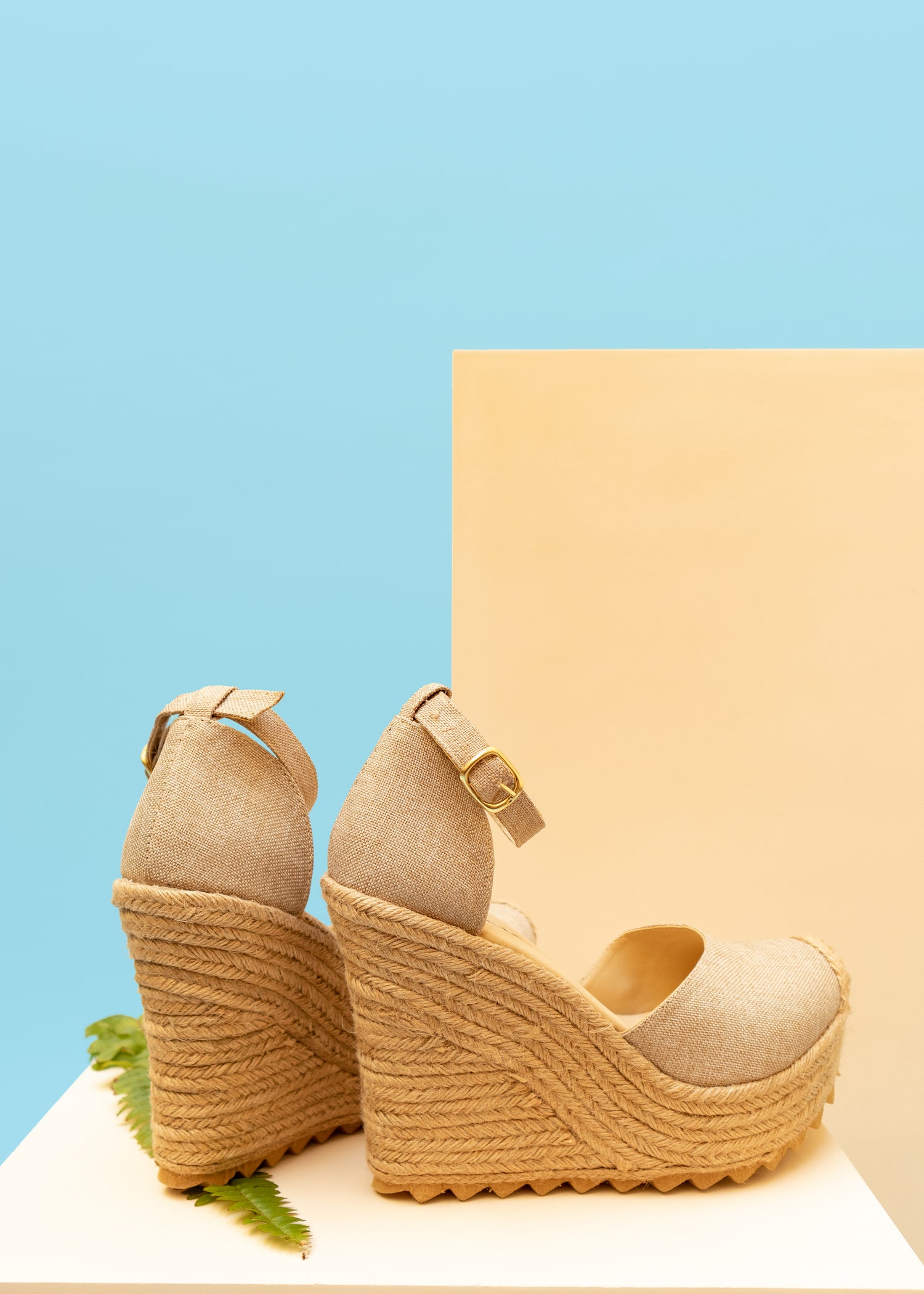 Alpargata de plataforma con yute para mujer color beige con látigo ajustable.