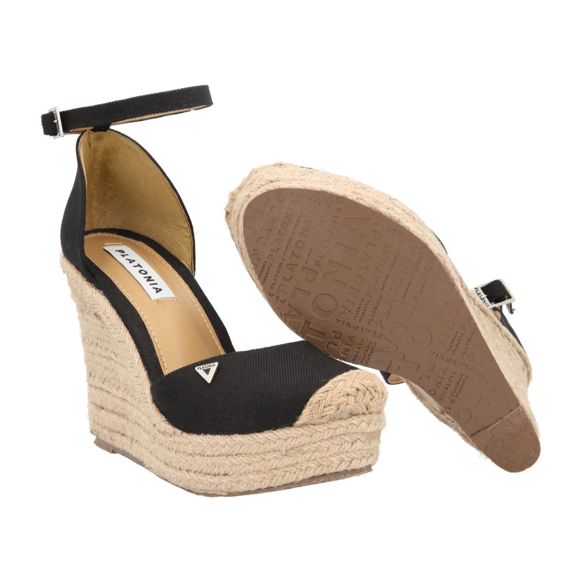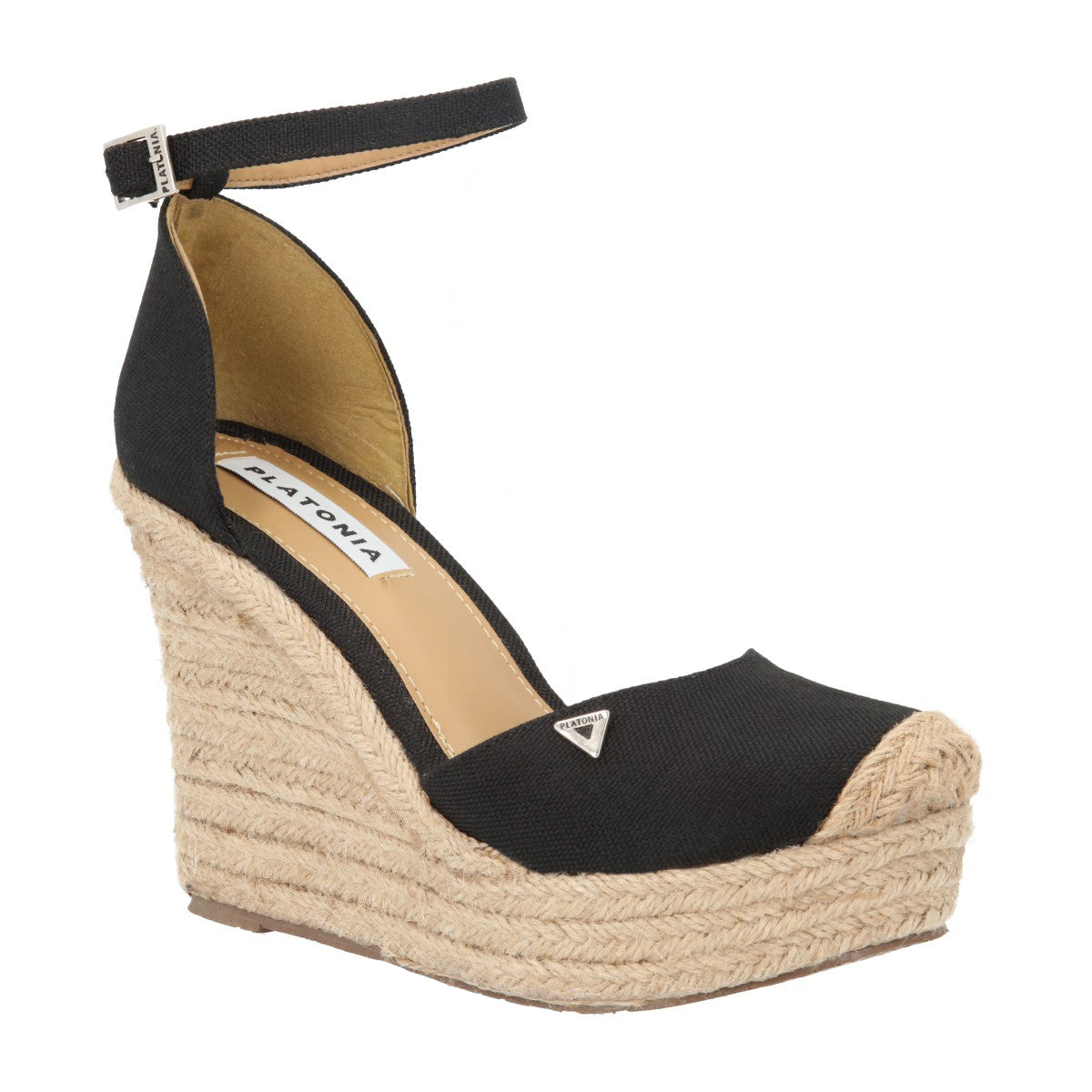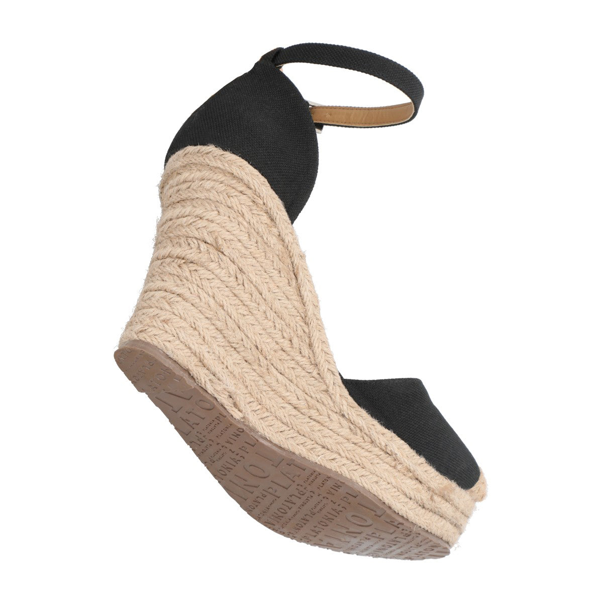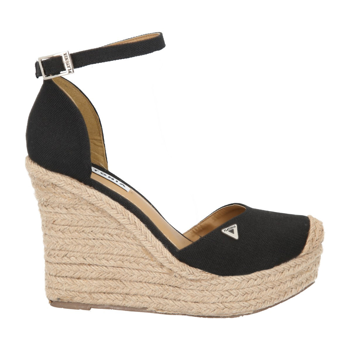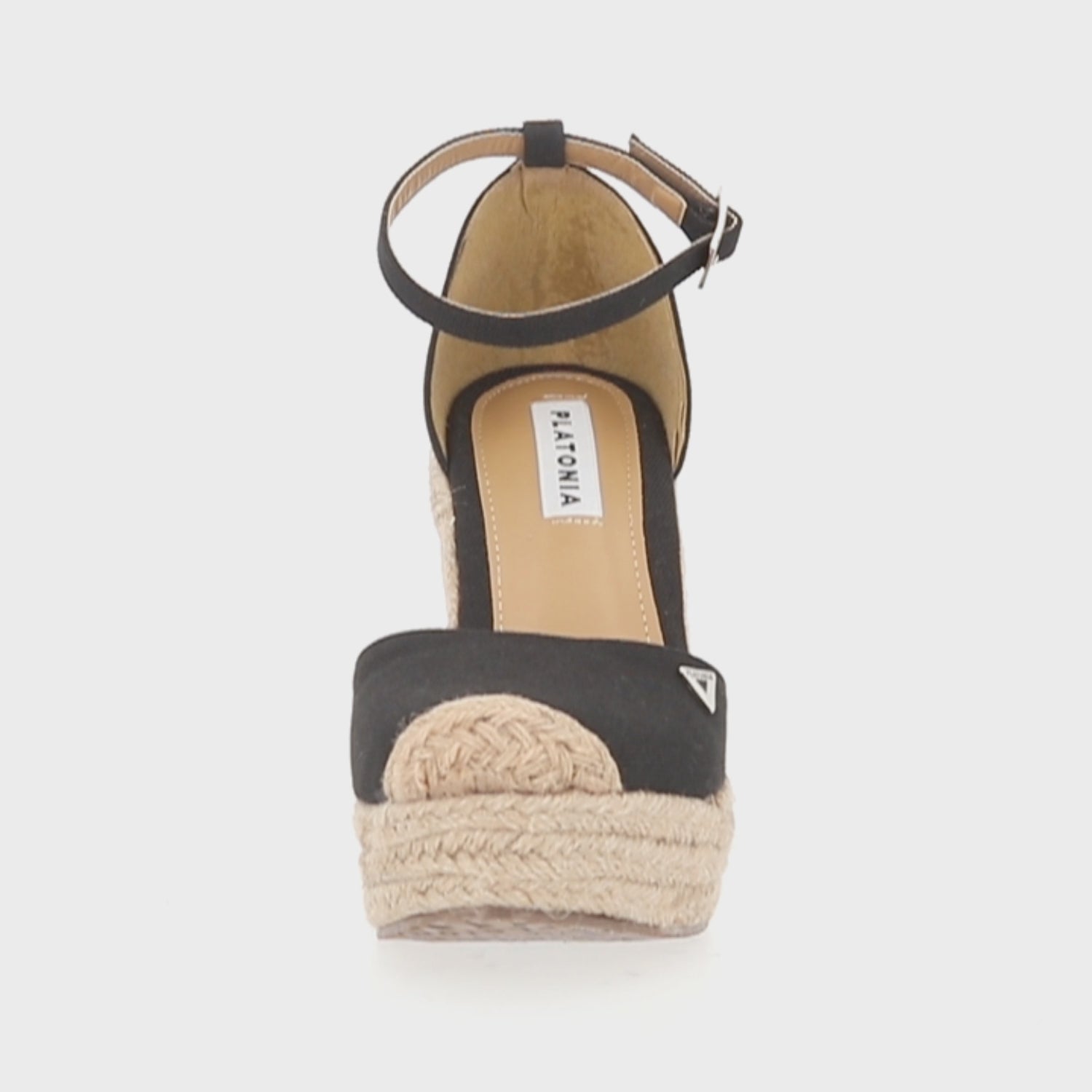 Alpargata de plataforma con yute para mujer color negro con látigo ajustable.