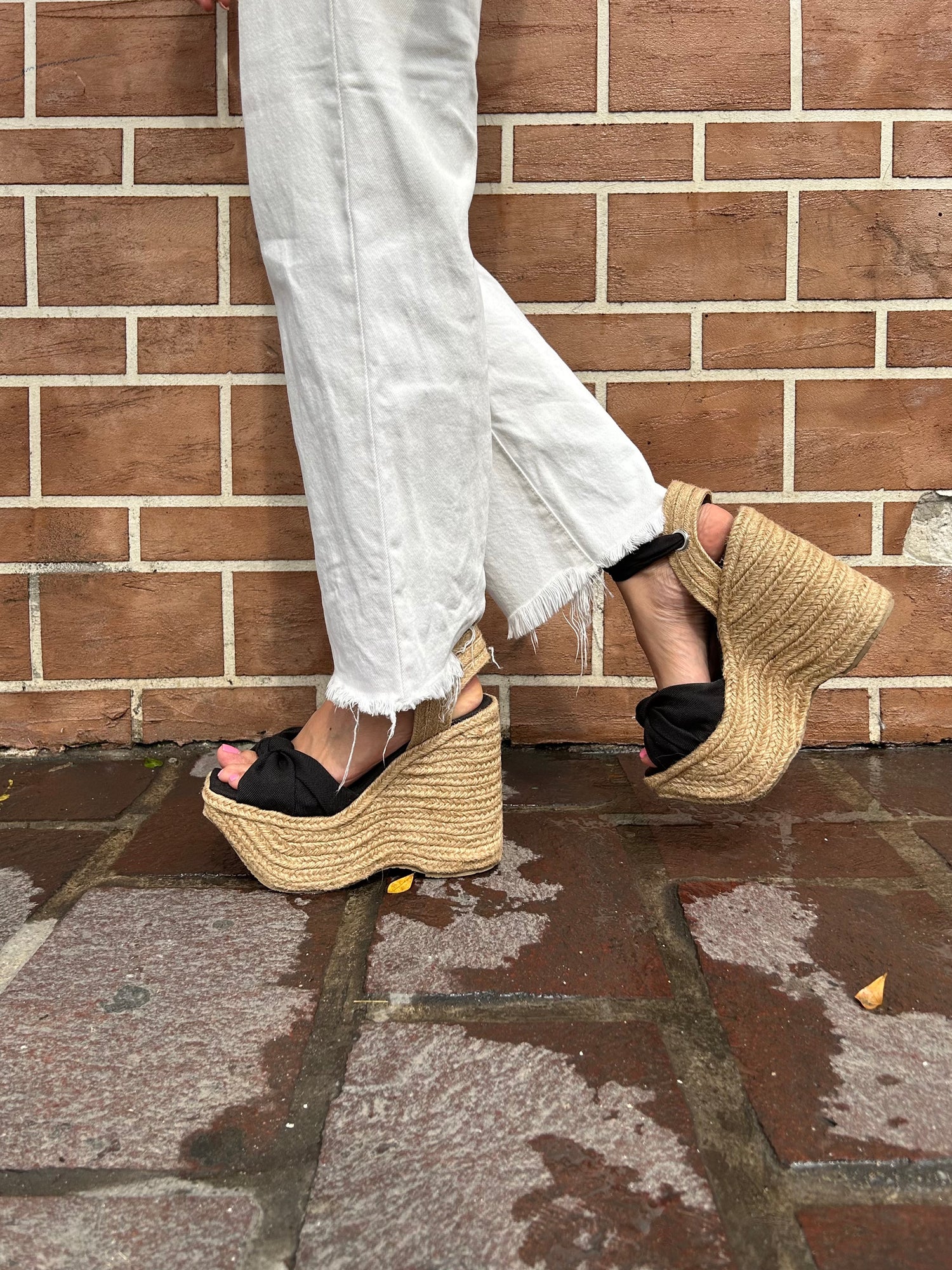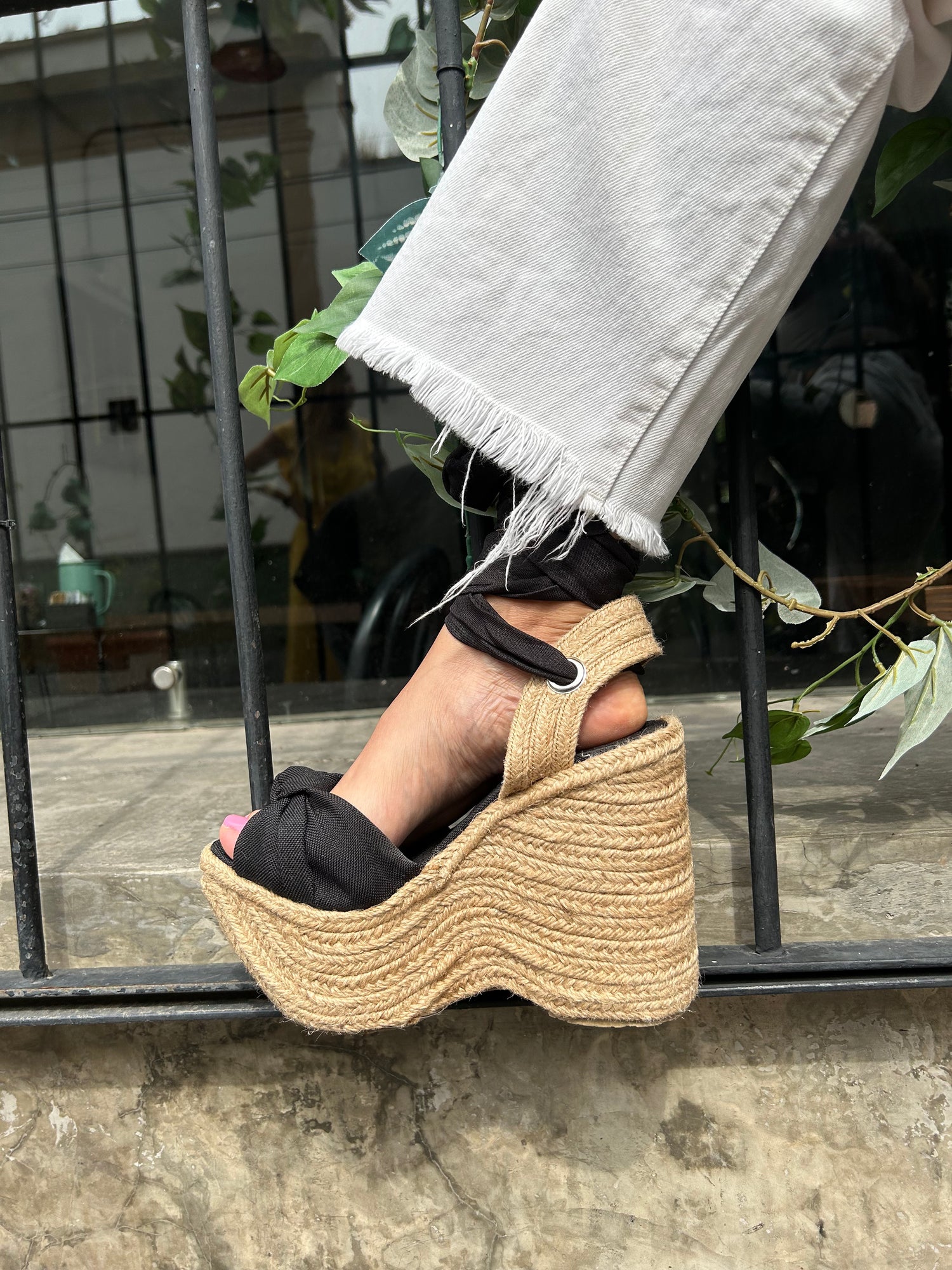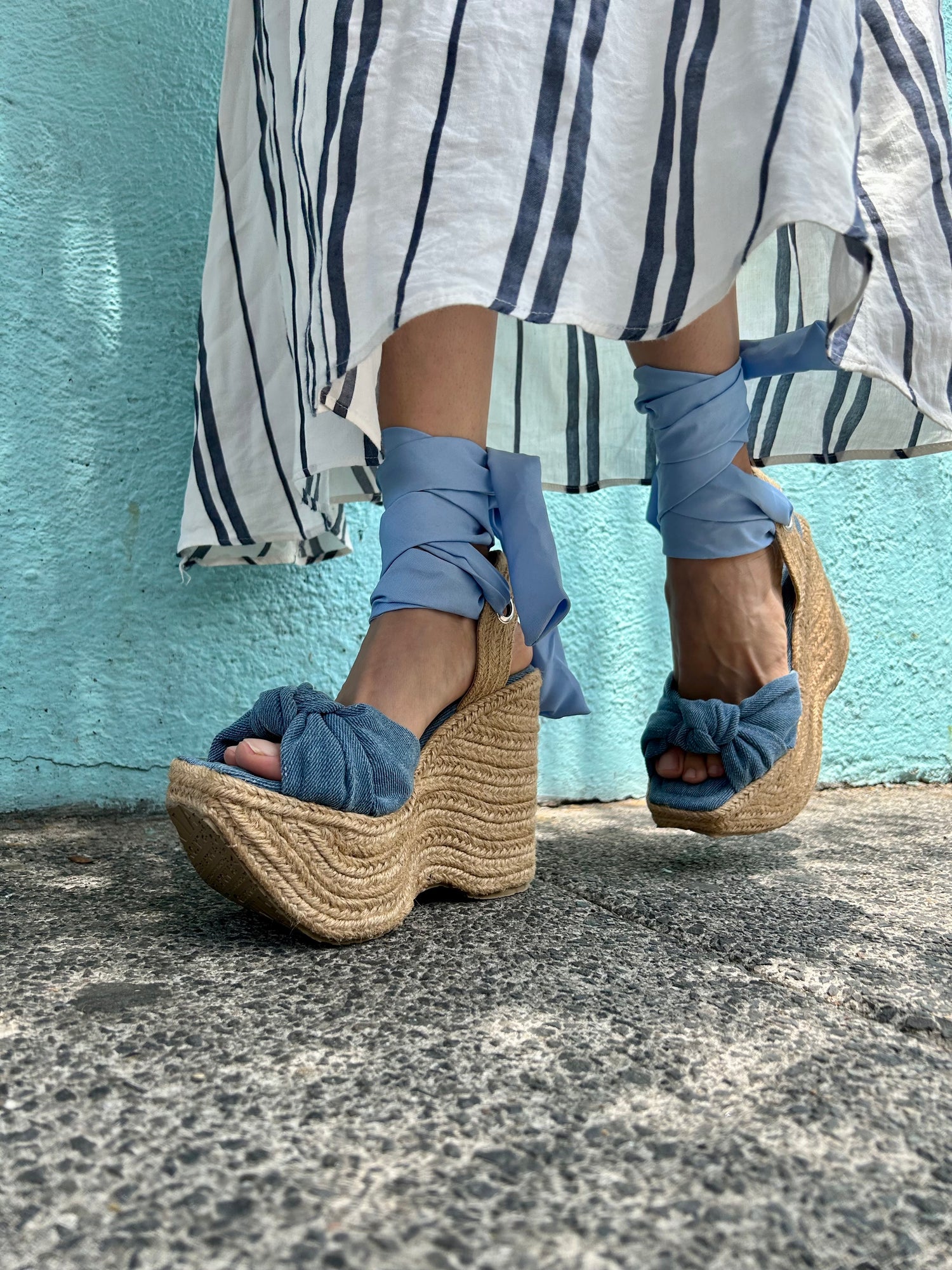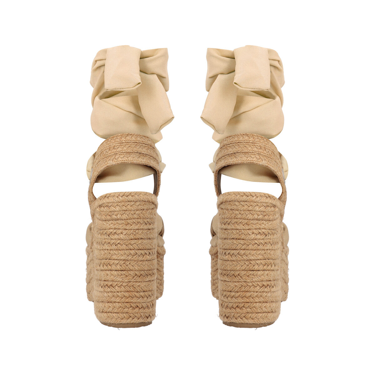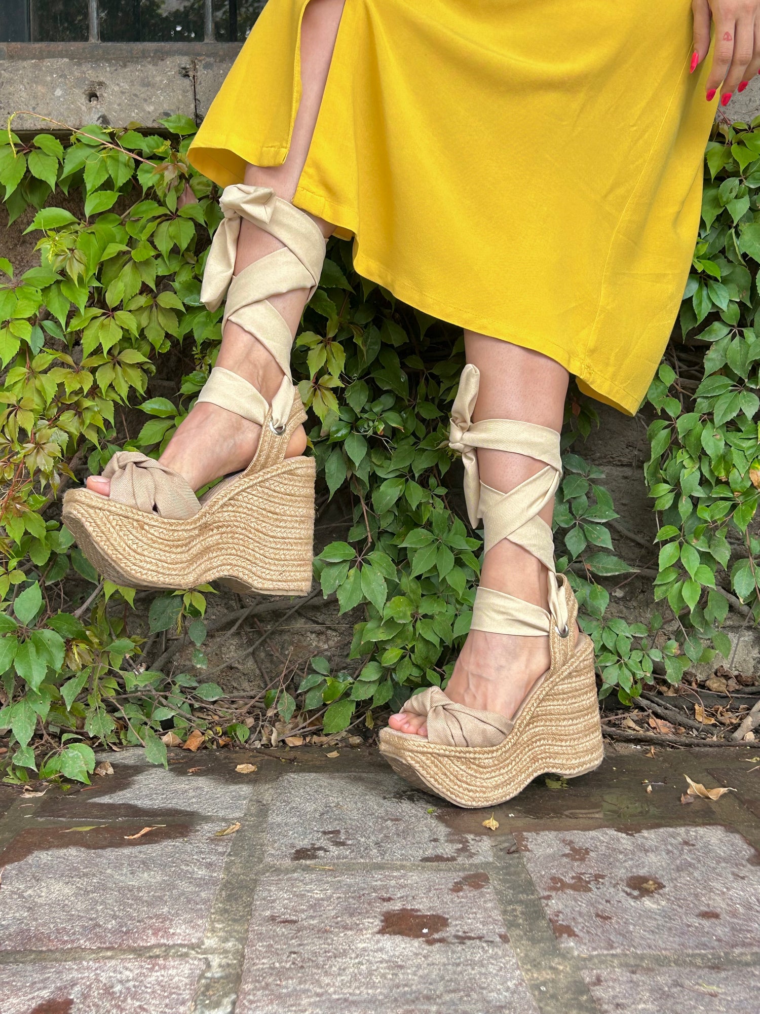 Alpargata de plataforma aesthetic con yute natural para mujer con listón estilizado de textura delgada y lona premium.
