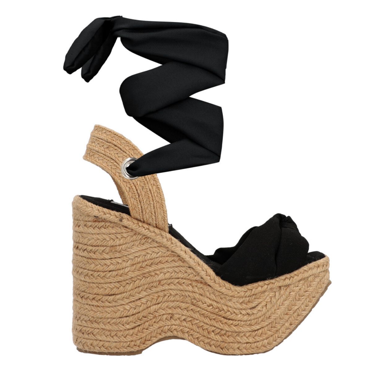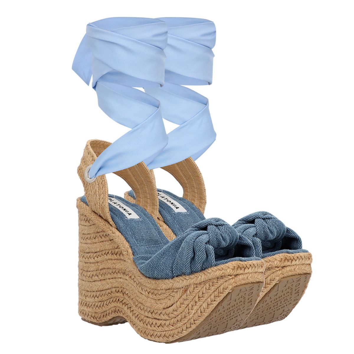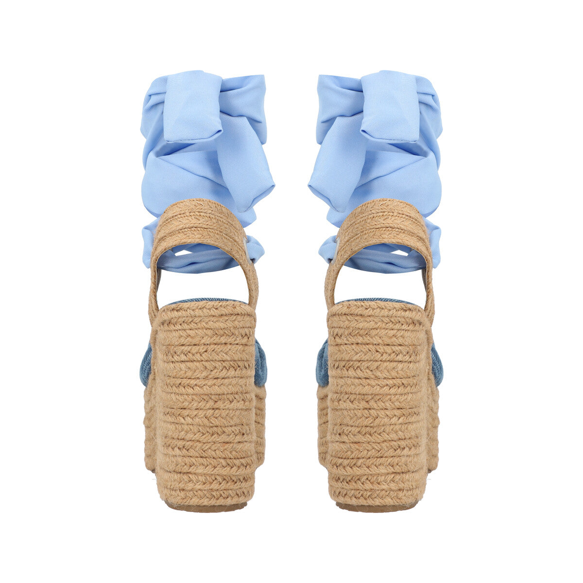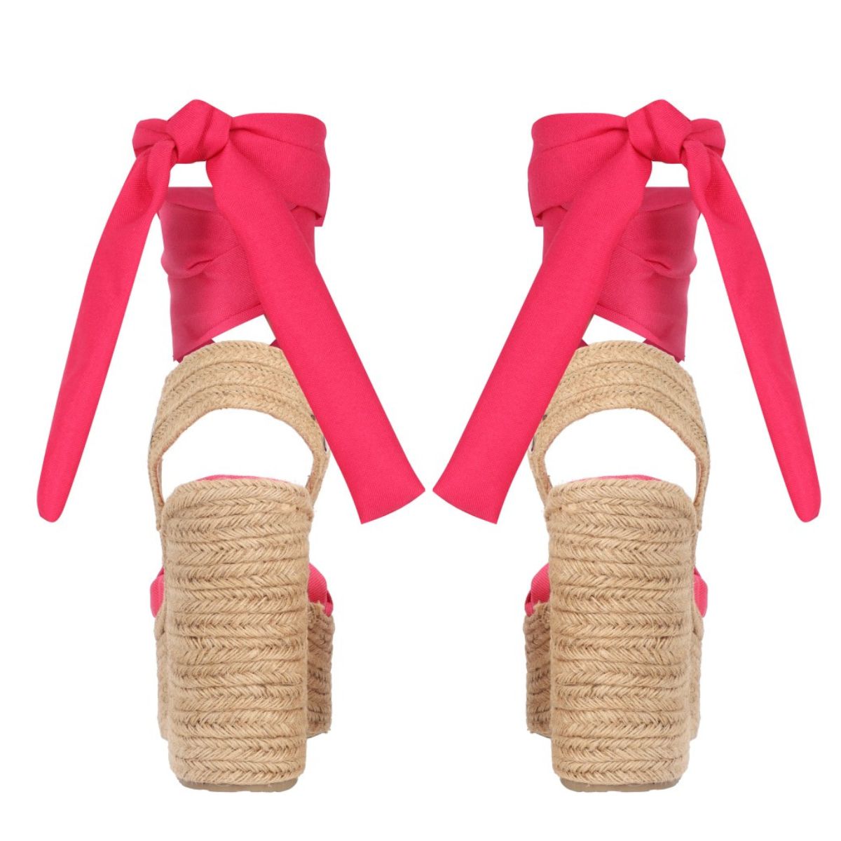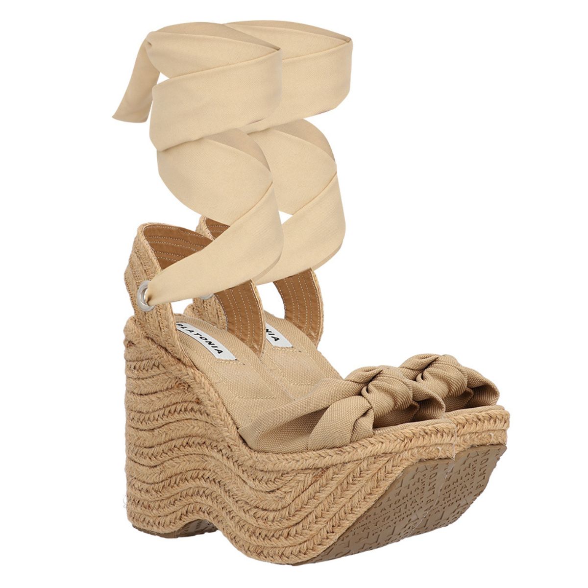 Alpargata de plataforma aesthetic con yute natural para mujer con listón estilizado de textura delgada y lona premium.