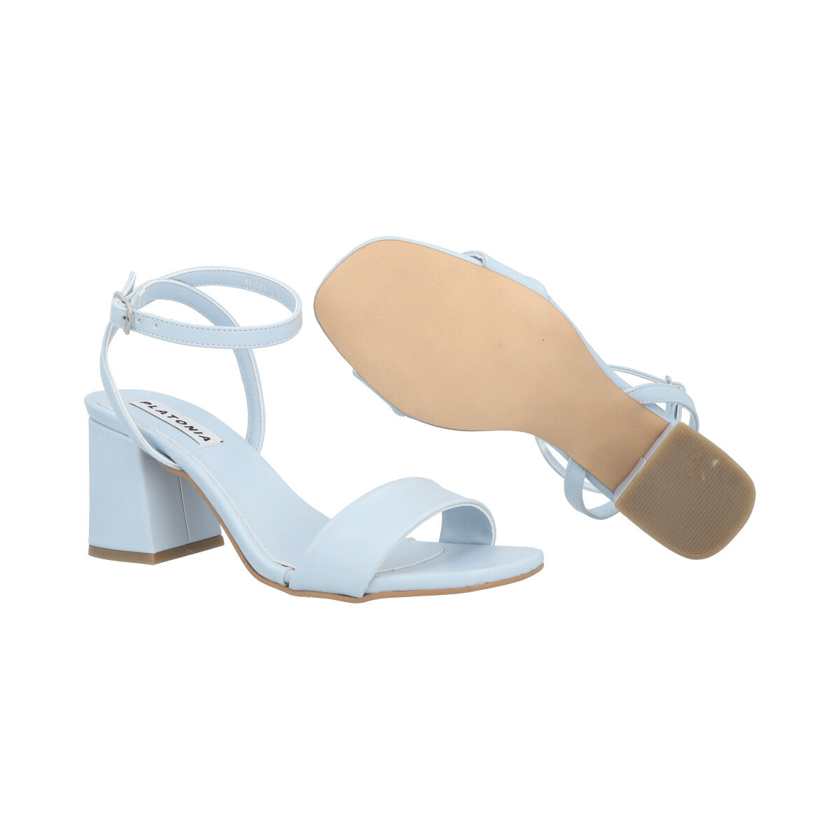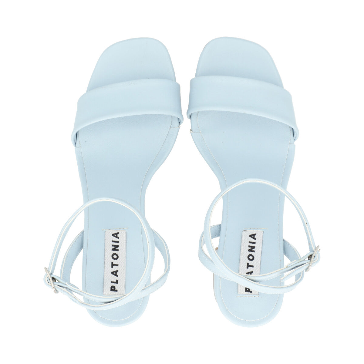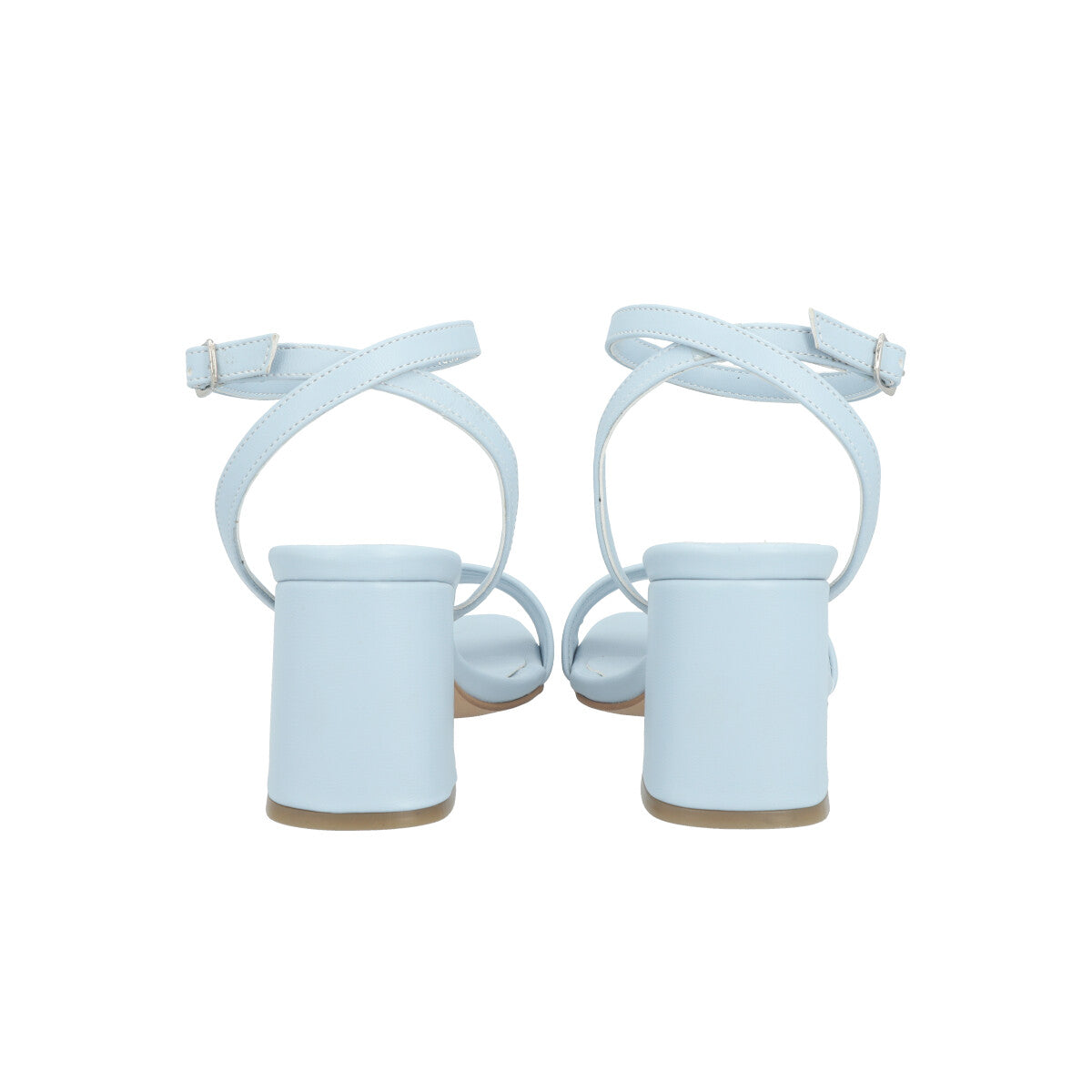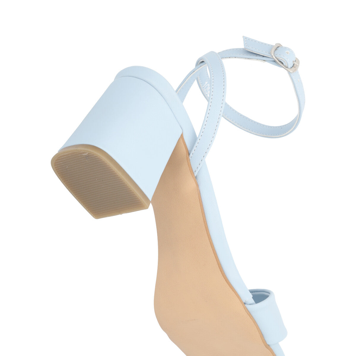 Zapatilla de tacón cuadrado para mujer color cabra azul celeste con látigos ajustables.