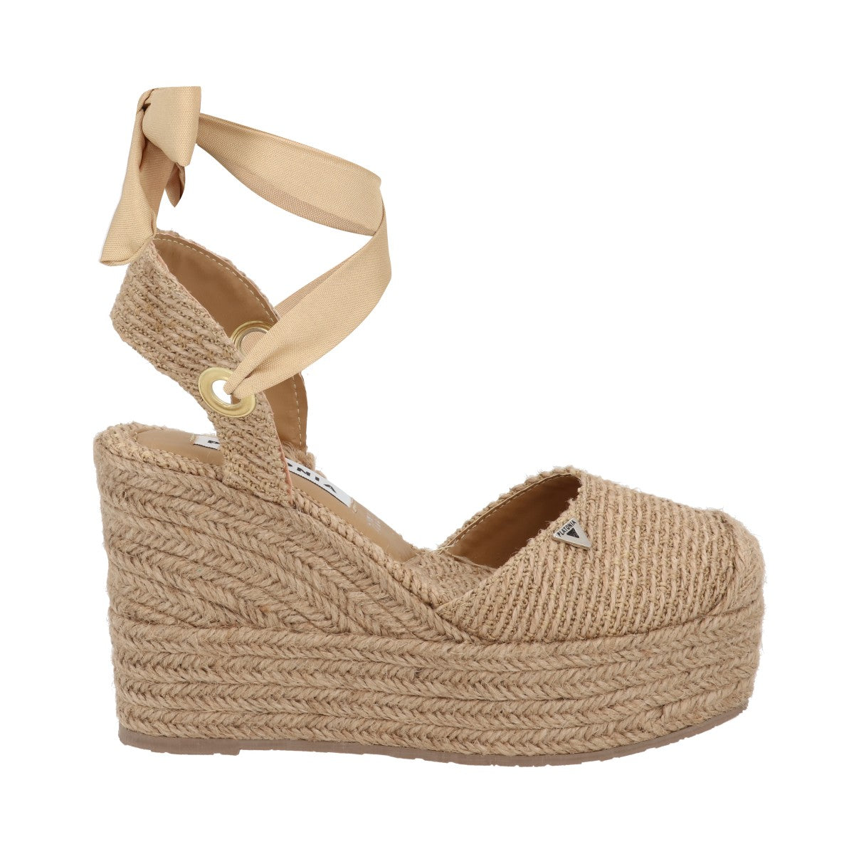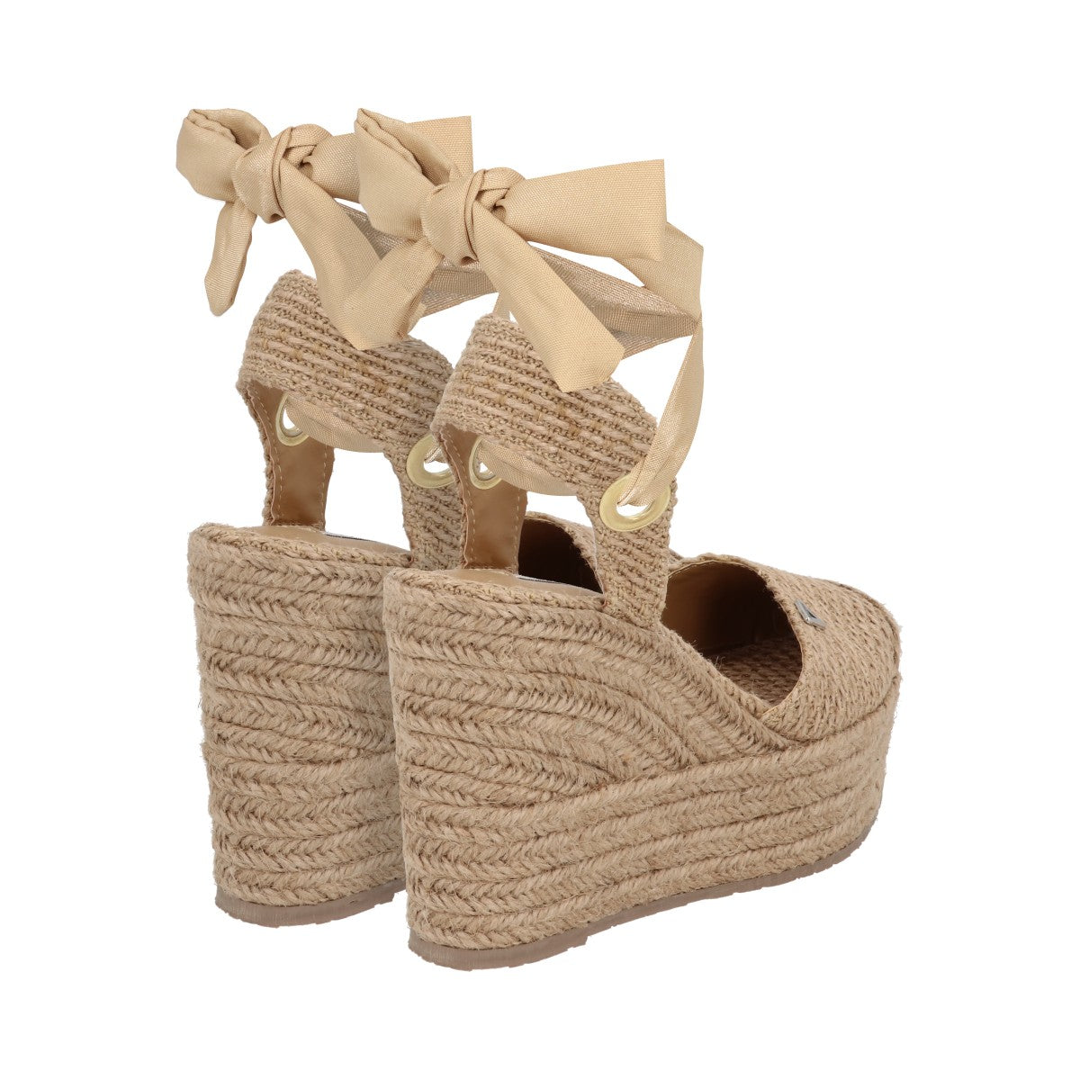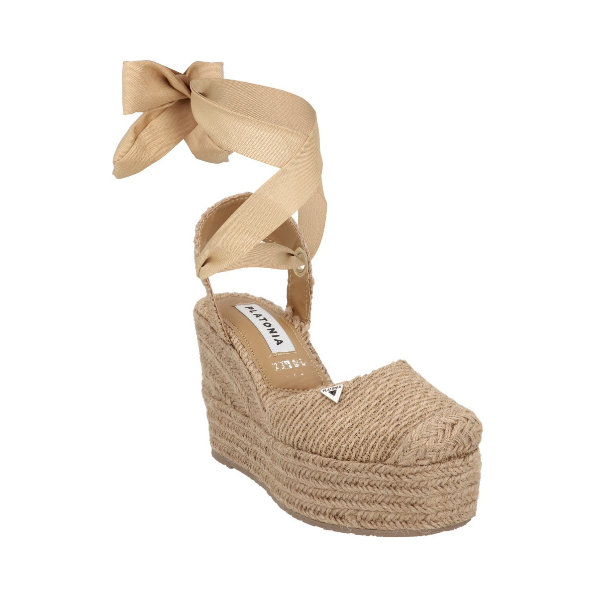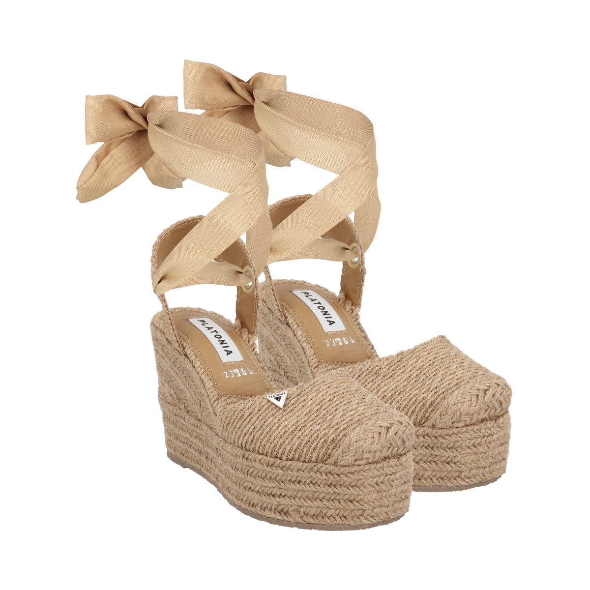Alpargata de plataforma con yute de punta cuadrada yute natural para mujer con listón para un ajuste estilizado en la pierna. Alpargata para mujer.