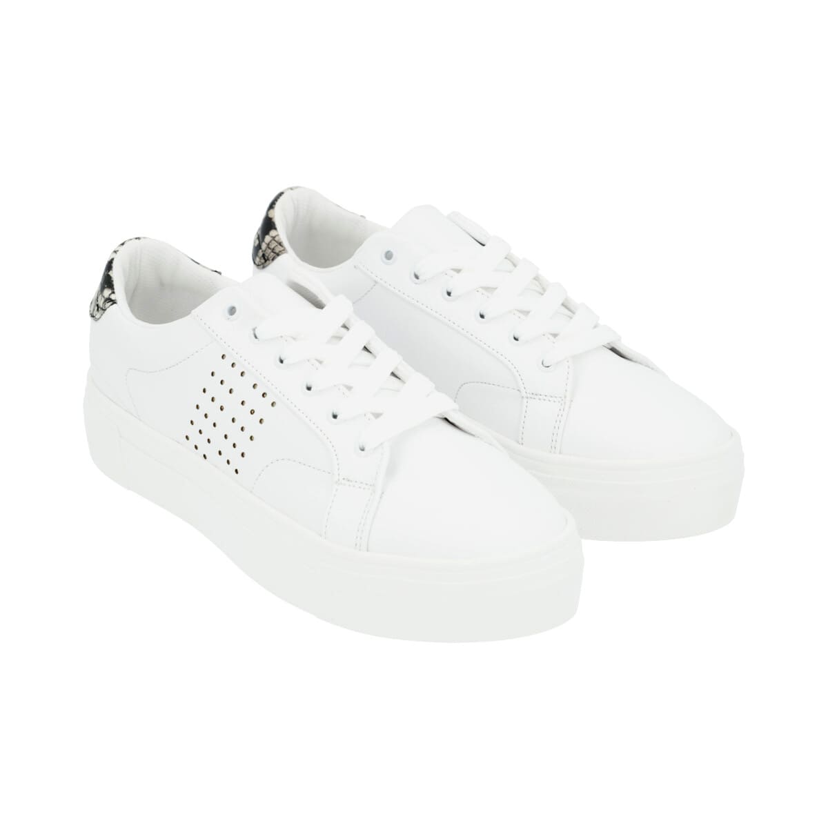 Tenis urbano para mujer color blanco con animal print de plataforma