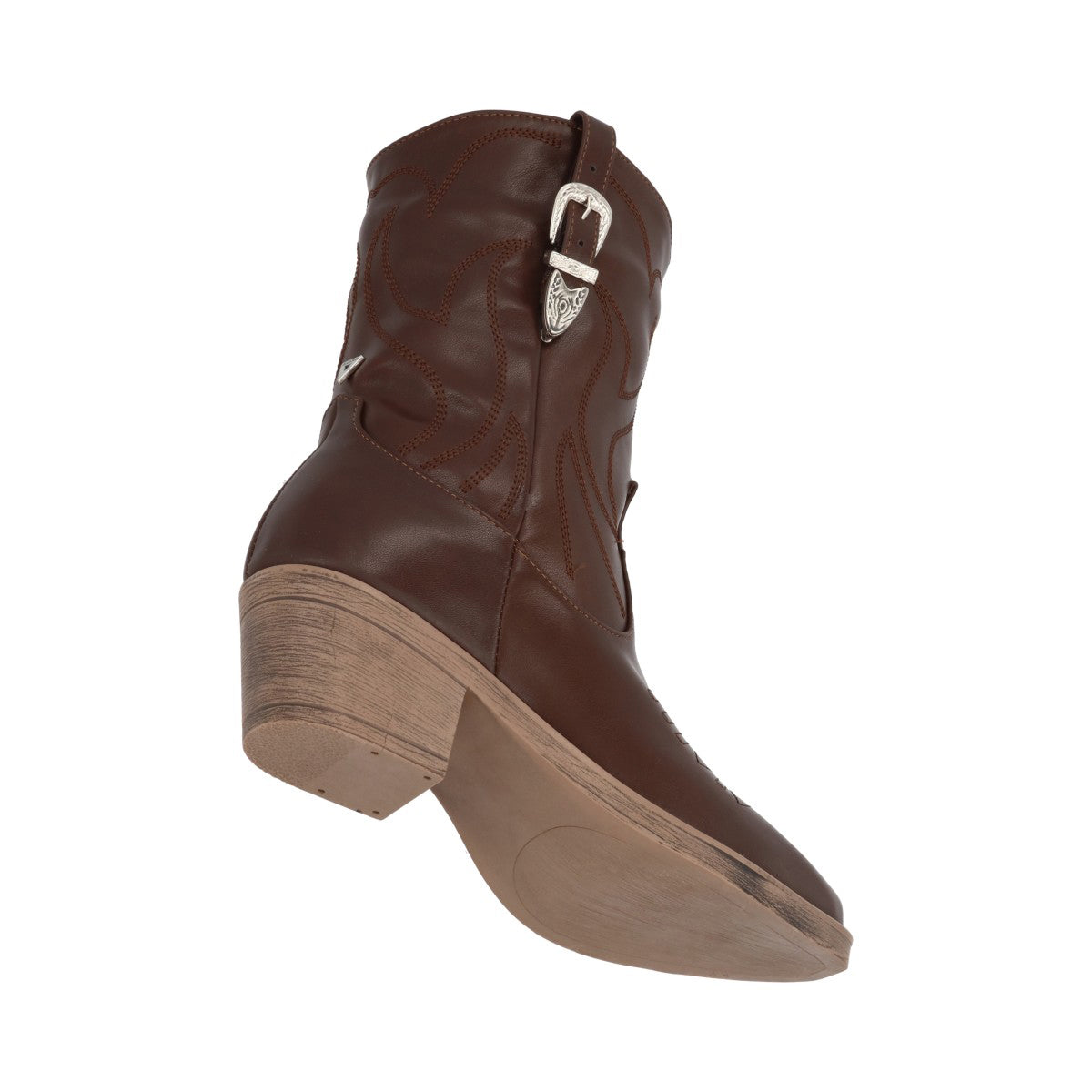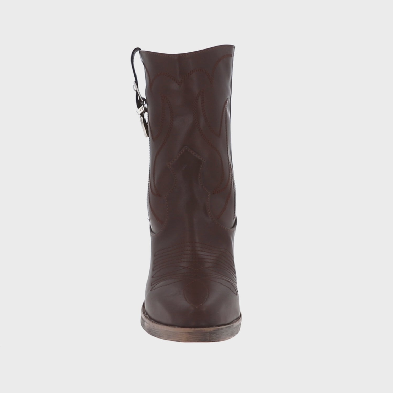 La Bota Puntal de Tacón Vaquera Durango de Platonia es un diseño exclusivo pensado para mujeres que buscan combinar elegancia, modernidad y un toque vaquero sofisticado en cada paso. Confeccionada en Cabra Piel Sintético color Chocolate.