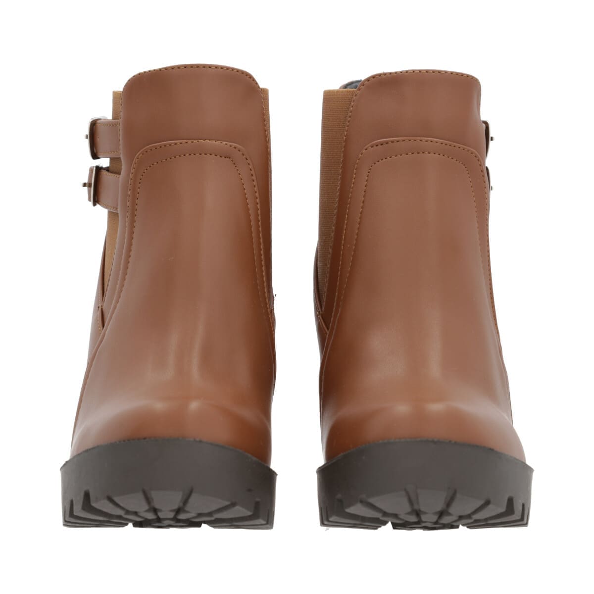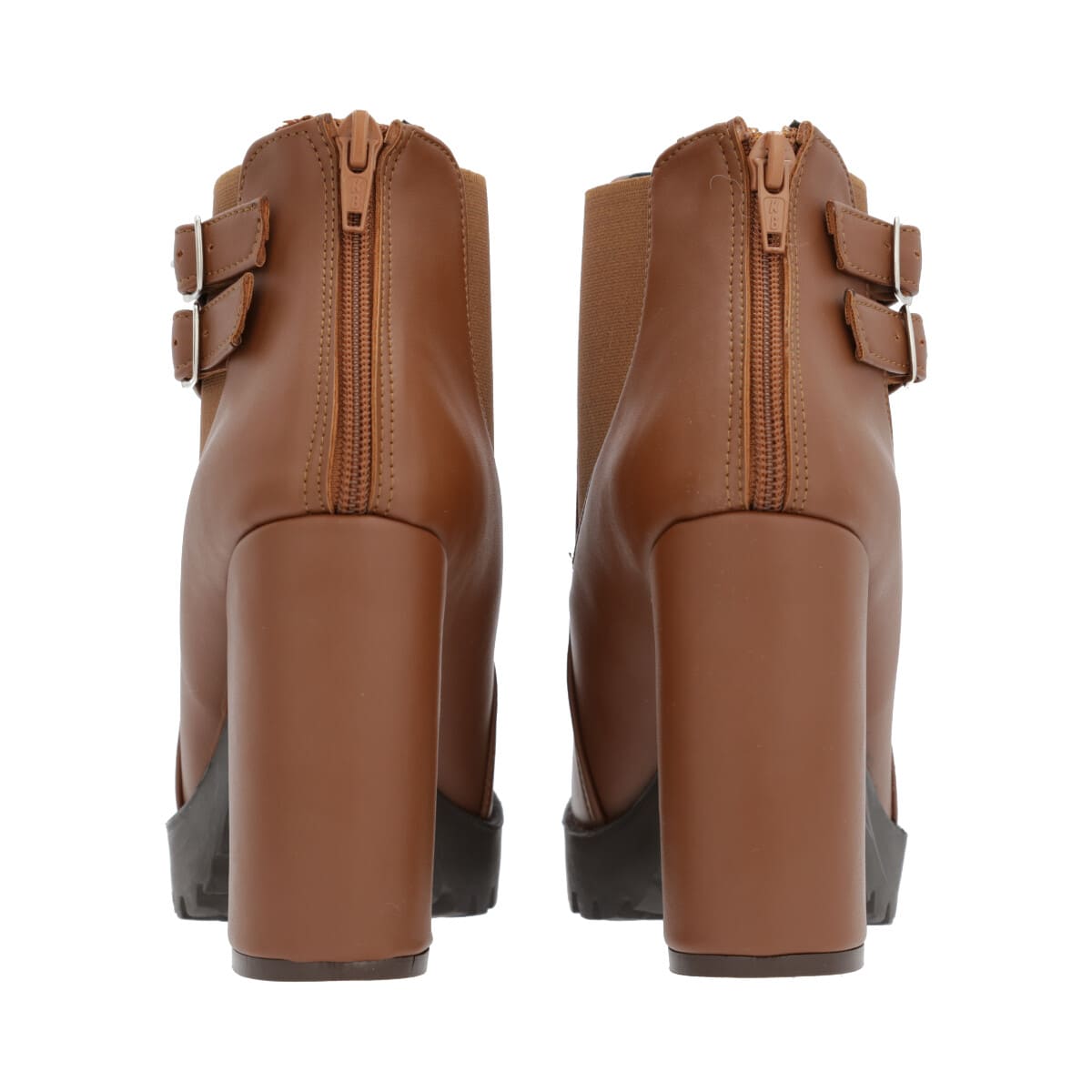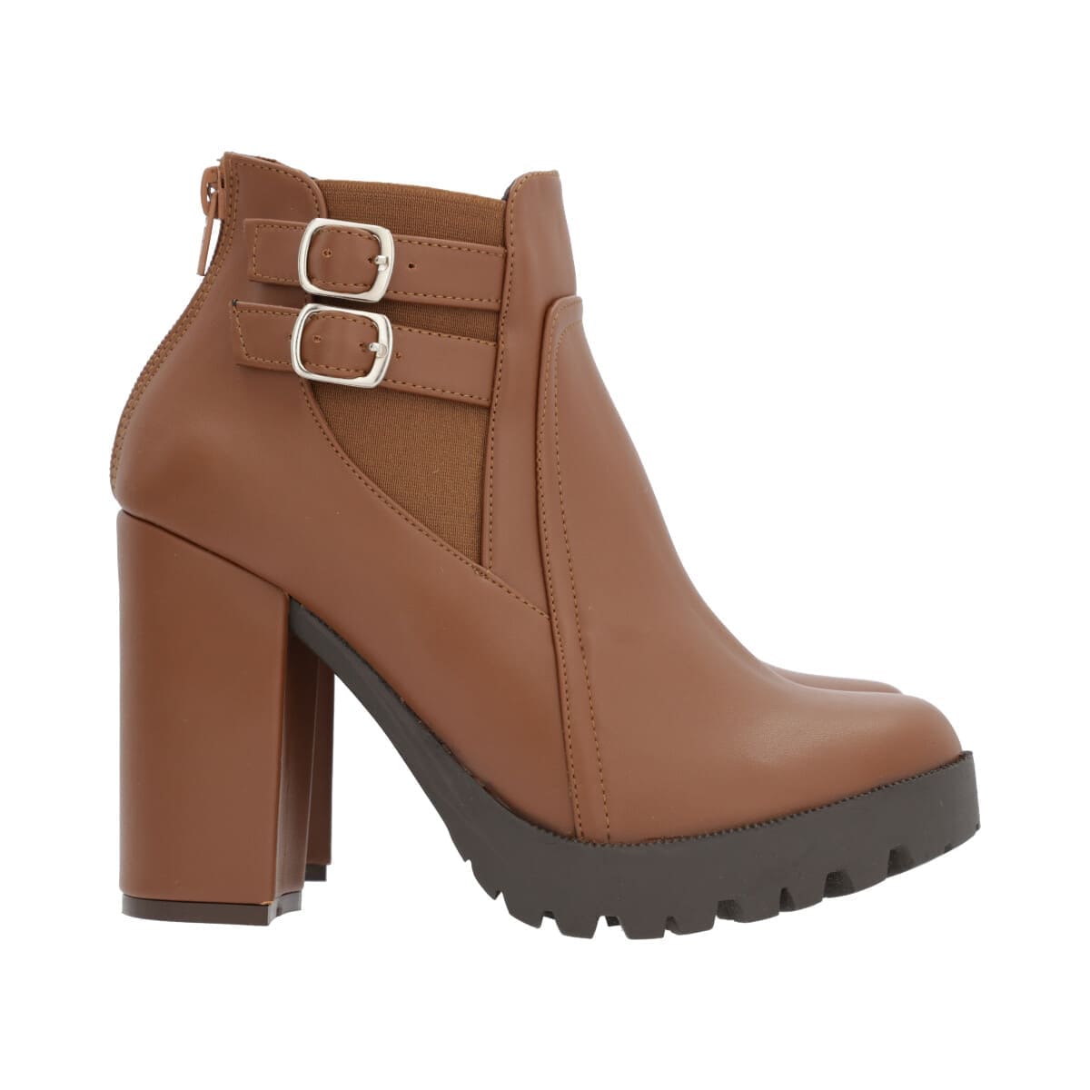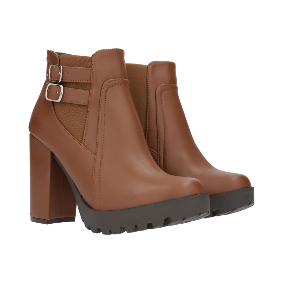 Botín de plataforma para mujer color tan con látigos y resorte lateral tipo piel
