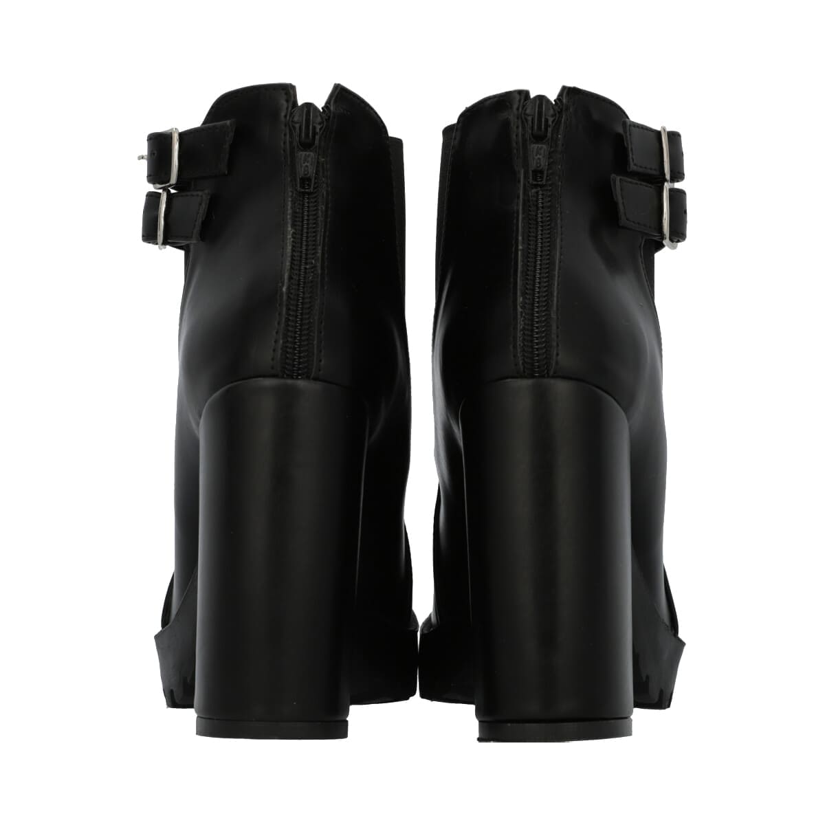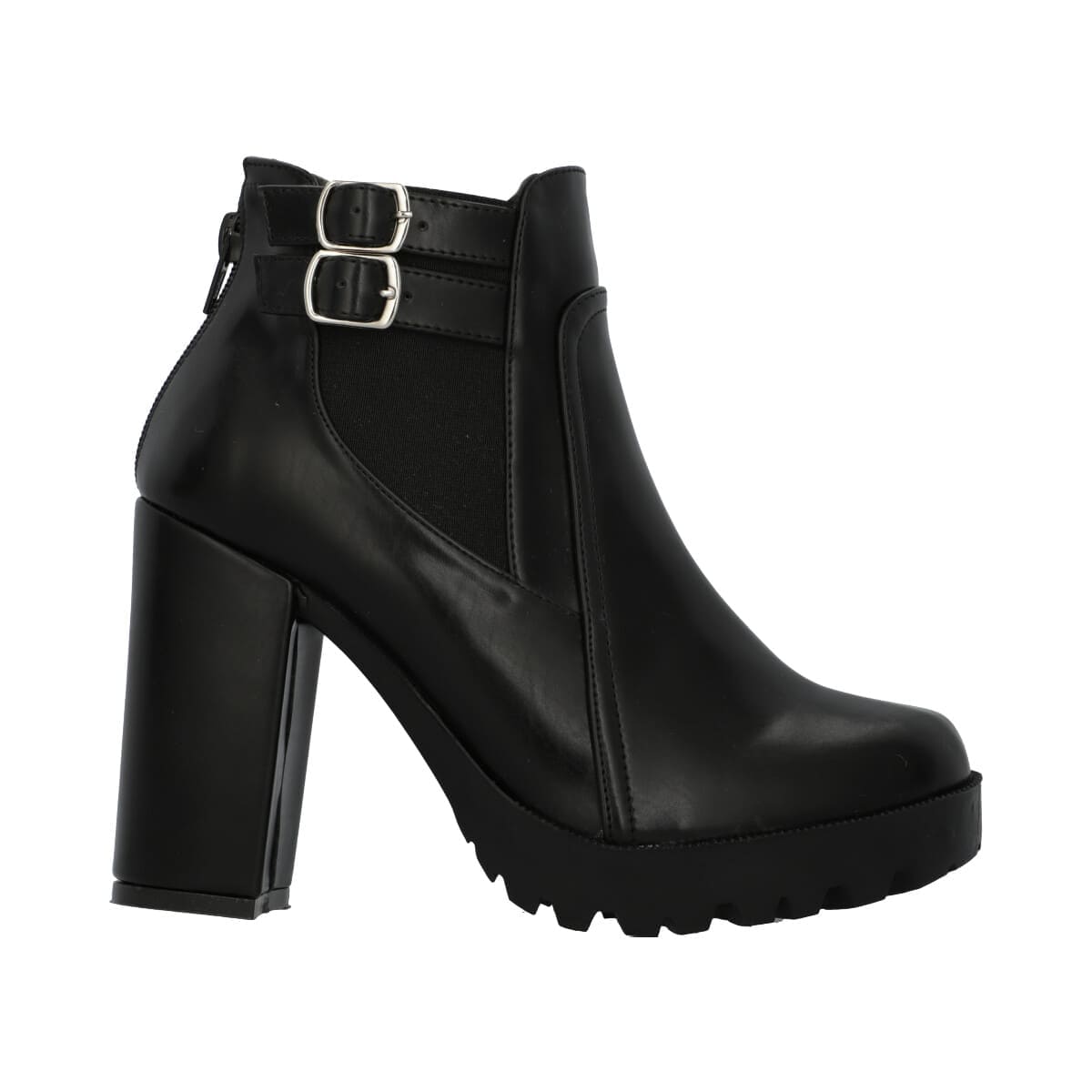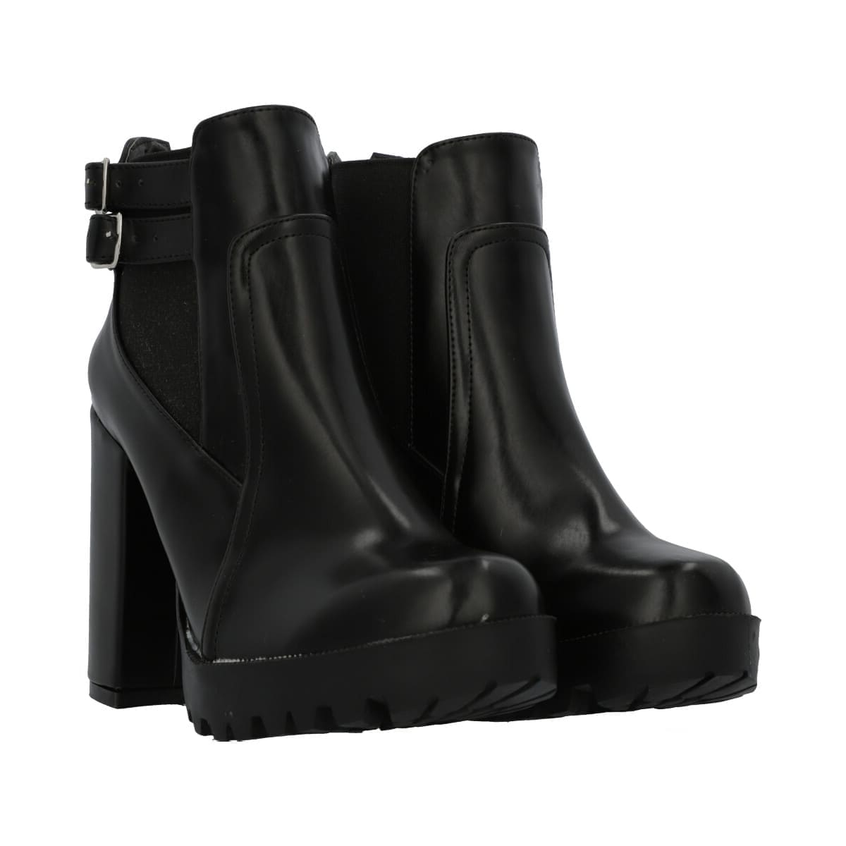 Botín de plataforma para mujer color negro con látigos ajustables y resorte elástico.
