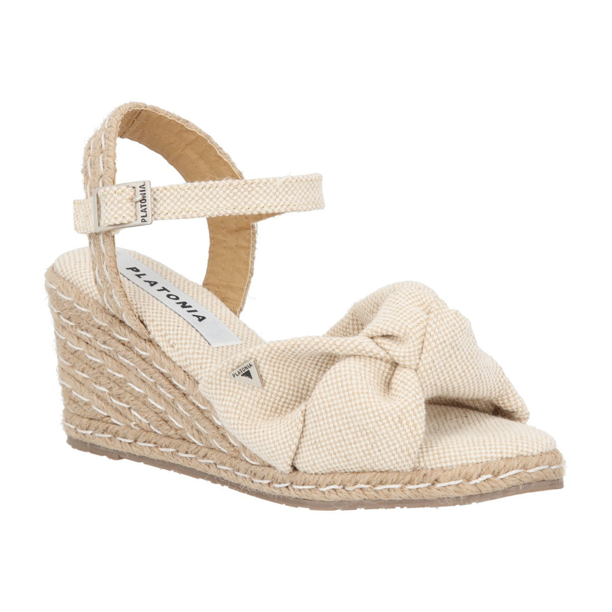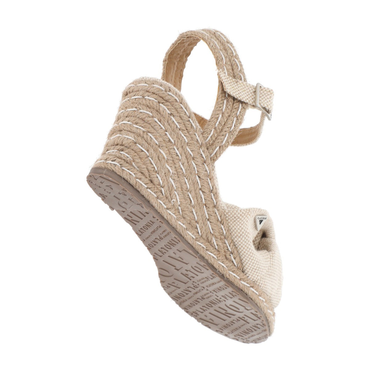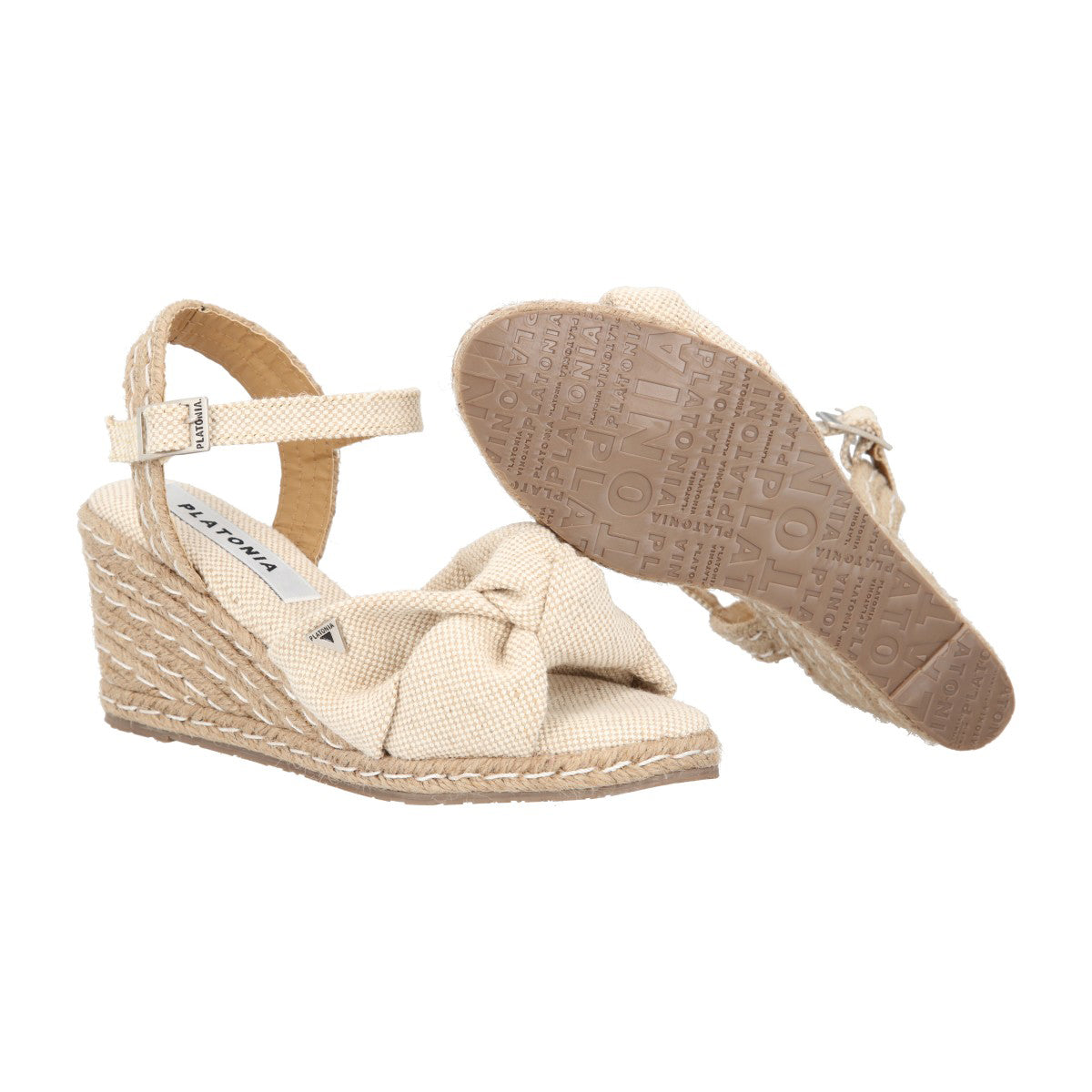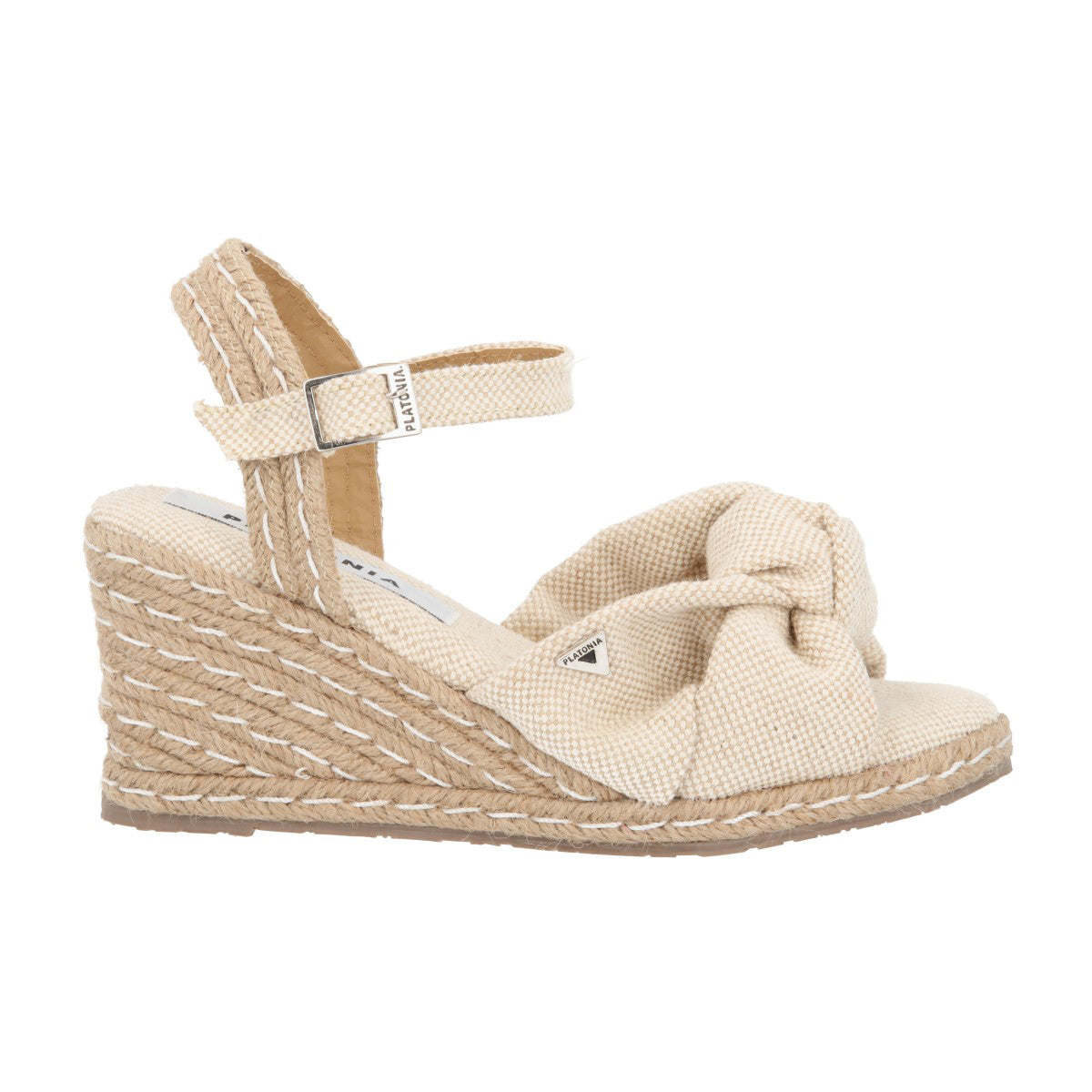 Sandalia de plataforma ultra confort Finlandia con yute natural lona curry premium natural para mujer con ajuste de látigo.