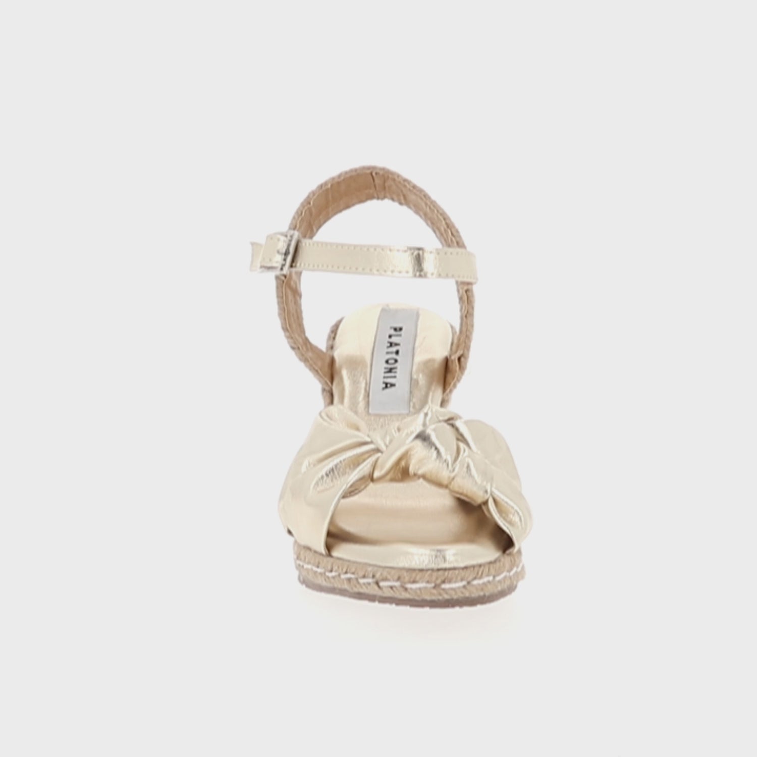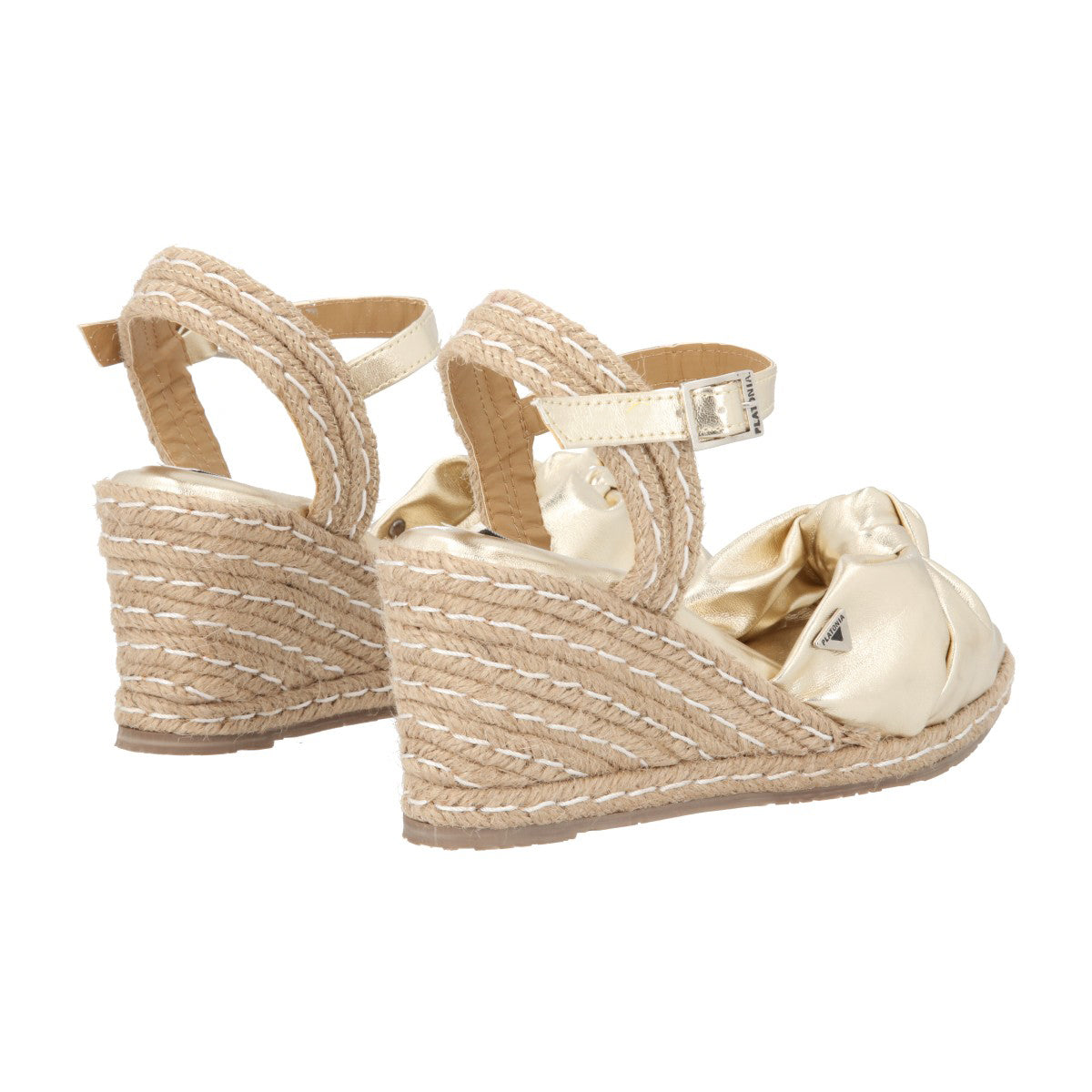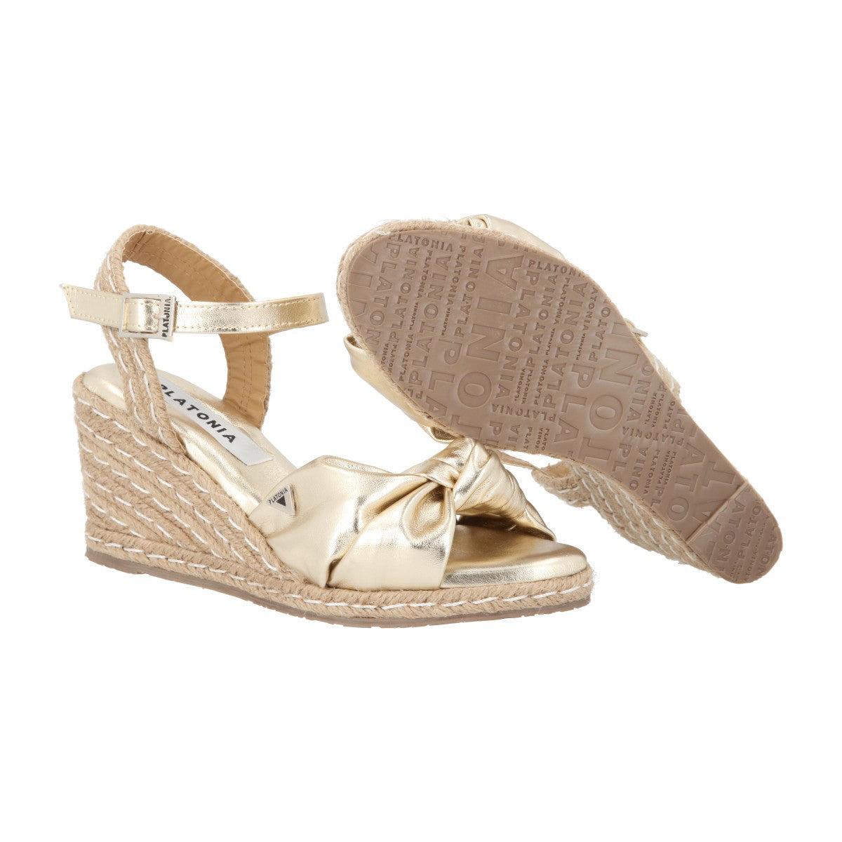 Sandalia de plataforma ultra confort Finlandia con yute natural cabra piel marshella oro para mujer con ajuste de látigo.