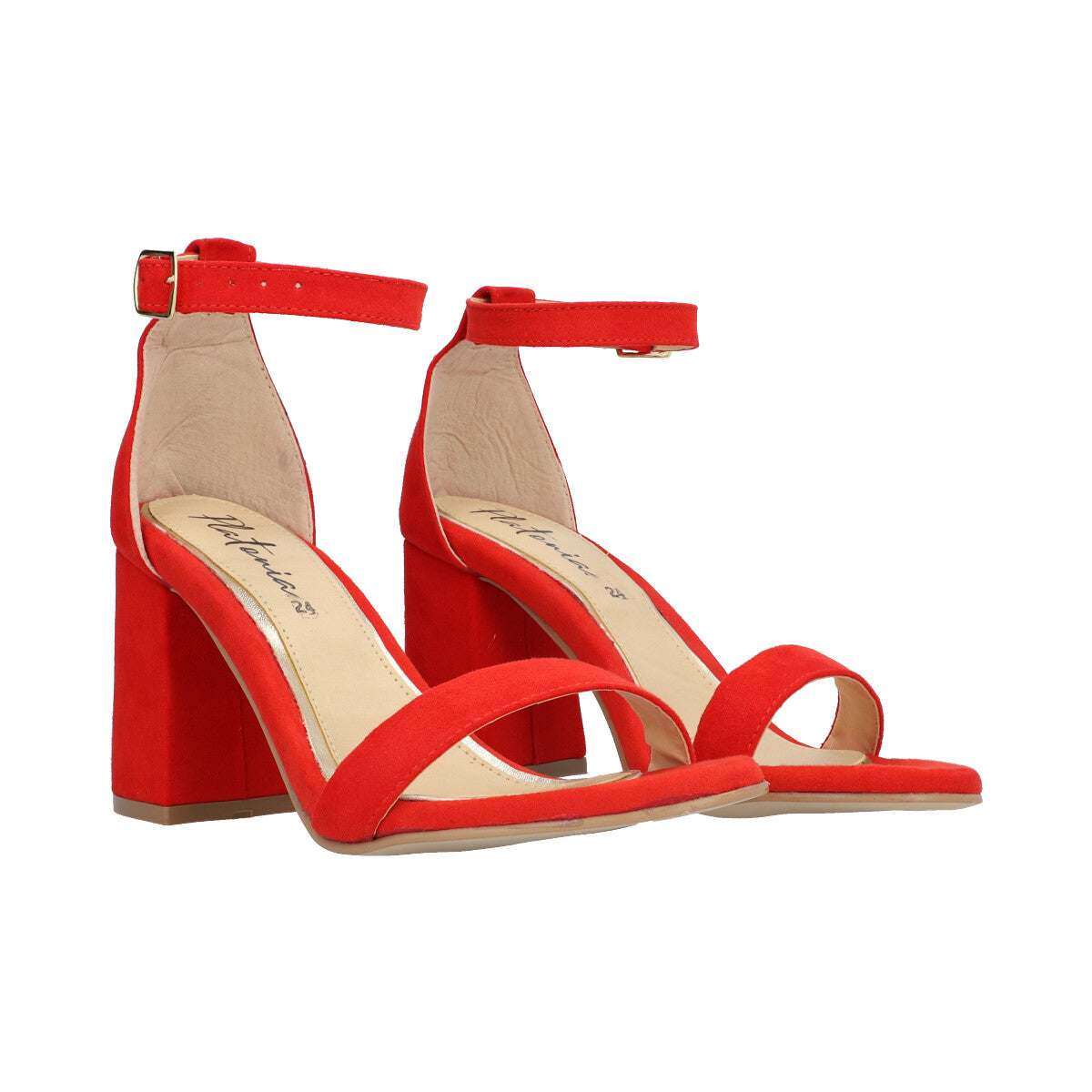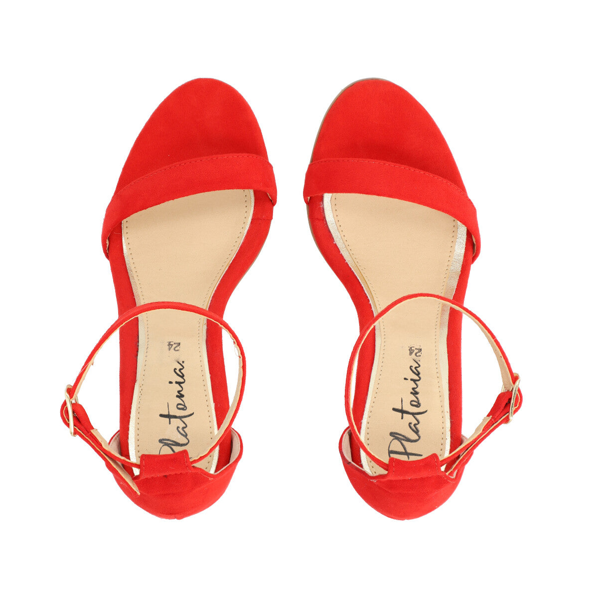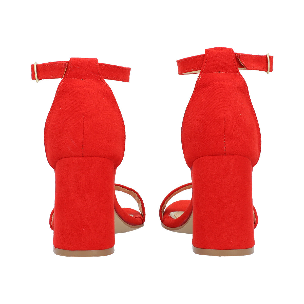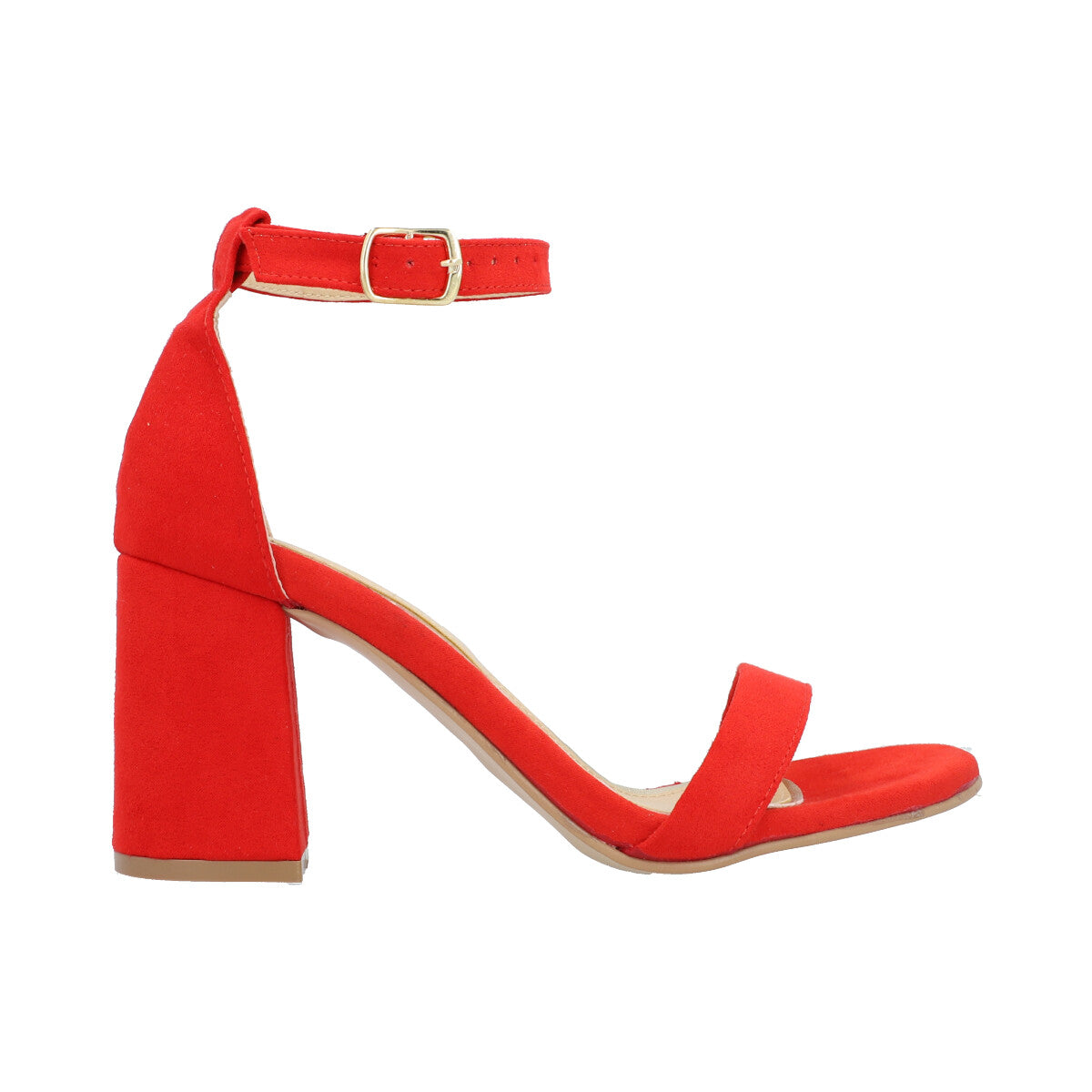 Zapatilla para mujer color rojo con látigo ajustable para el tobillo con hebilla metálica.