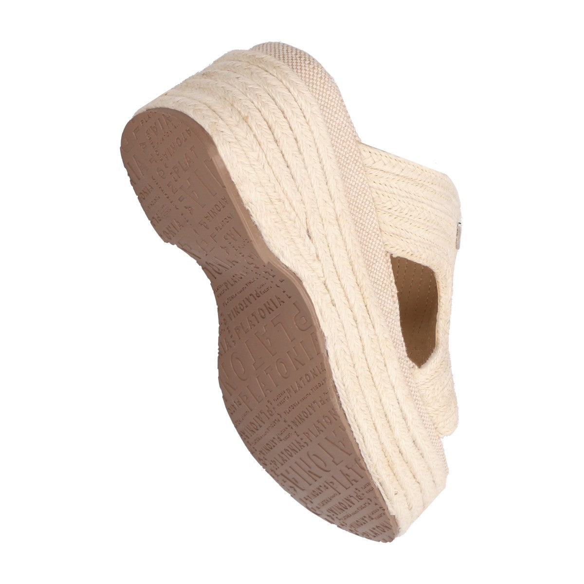 Las Sandalias de Plataforma Grecia Slip On de Platonia. Con una altura de 7 centímetros, estas sandalias te ofrecen el impulso perfecto para destacar entre la multitud. El material de yute natural no solo añade un toque orgánico y eco-chic a tu look, sino que también te conecta con la esencia de la naturaleza, permitiendo que tus pies respiren y se sientan libres mientras conquistas el mundo a cada paso. Además, el estilo slip on te brinda la máxima practicidad, permitiéndote deslizarte en estas maravillas en cuestión de segundos.
