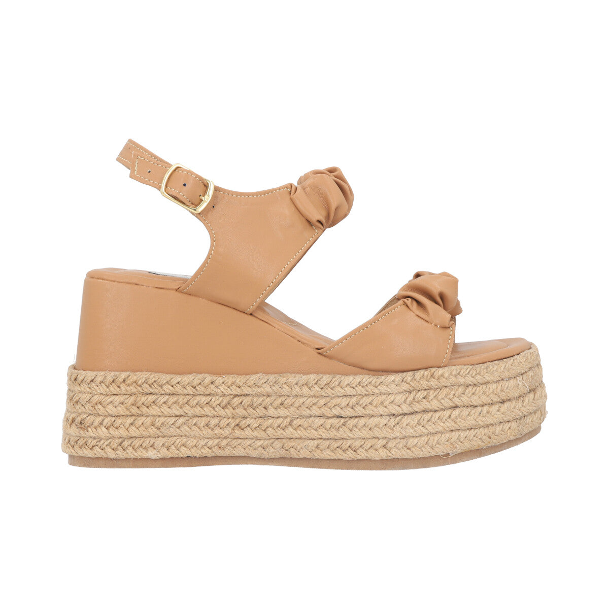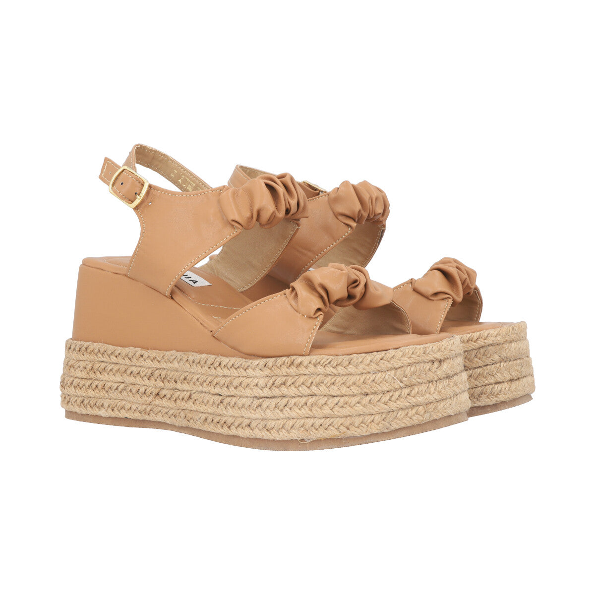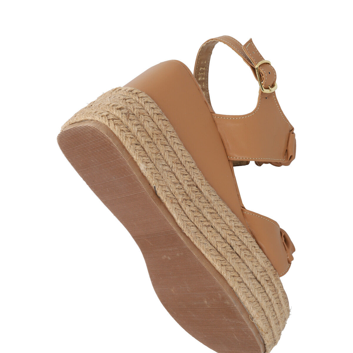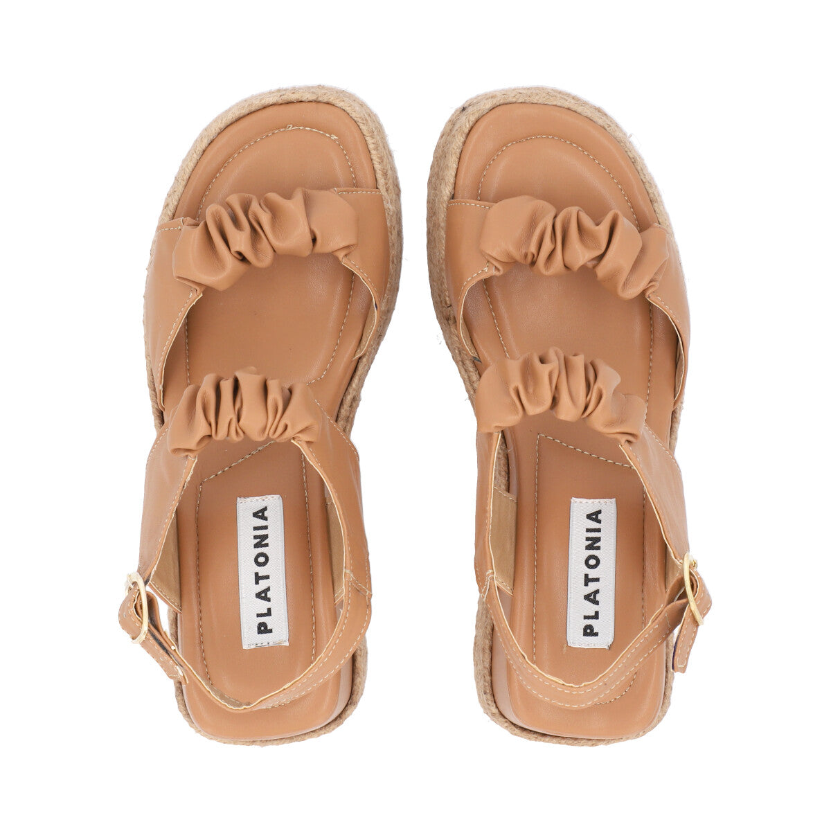 Sandalia de plataforma con ajuste de elástico corrugado fiorela piel sintético camel para mujer.