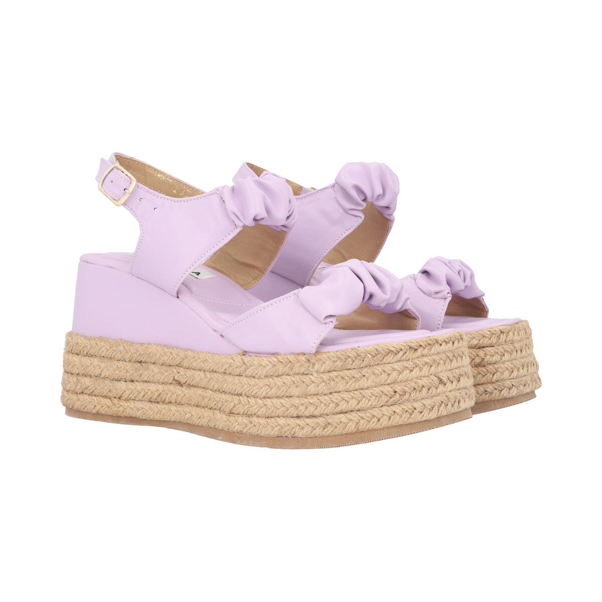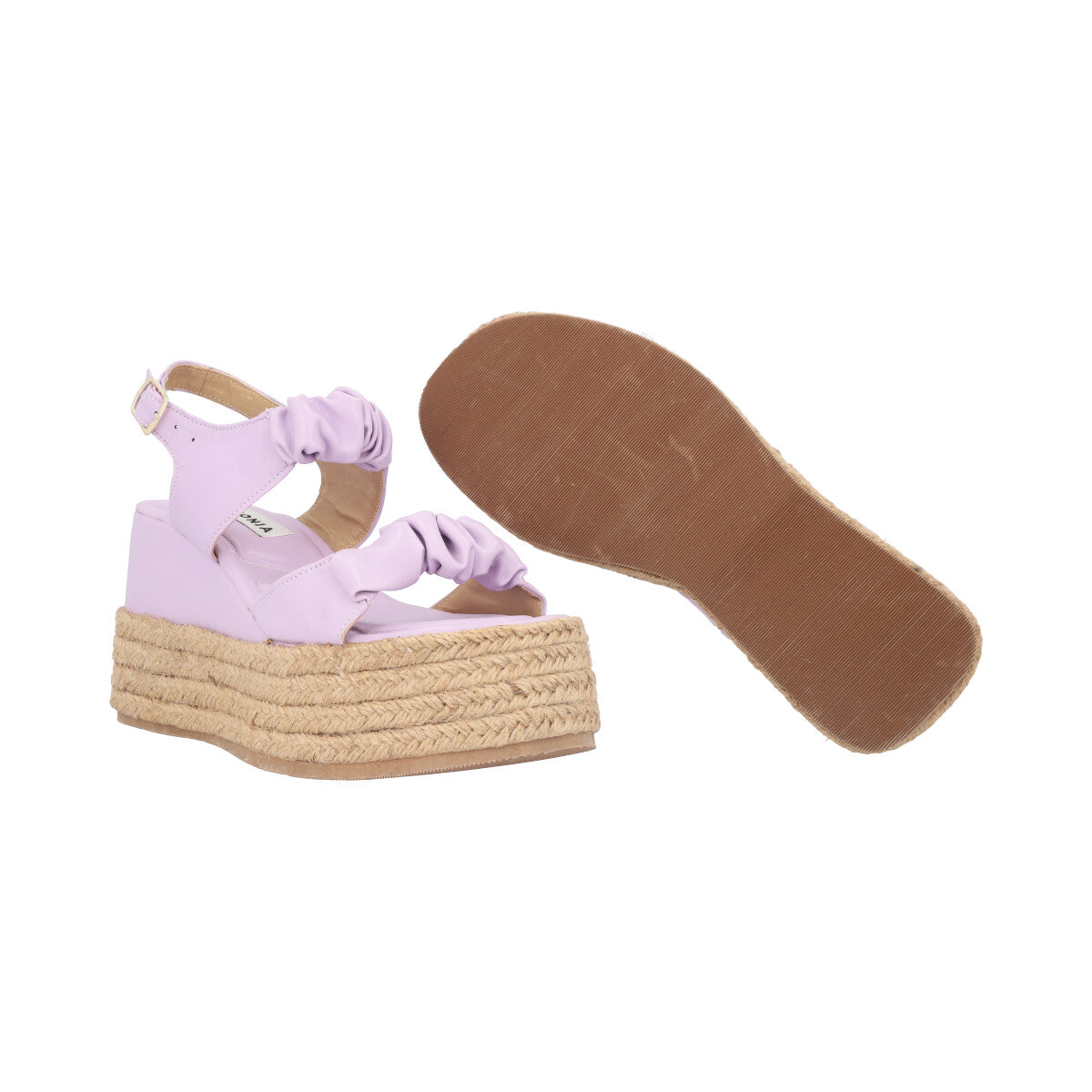 Sandalia de plataforma con ajuste de elástico corrugado fiorela piel sintético lila para mujer.