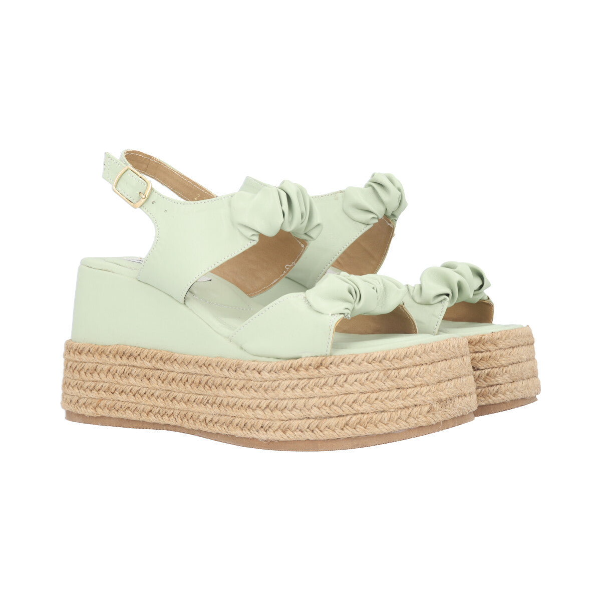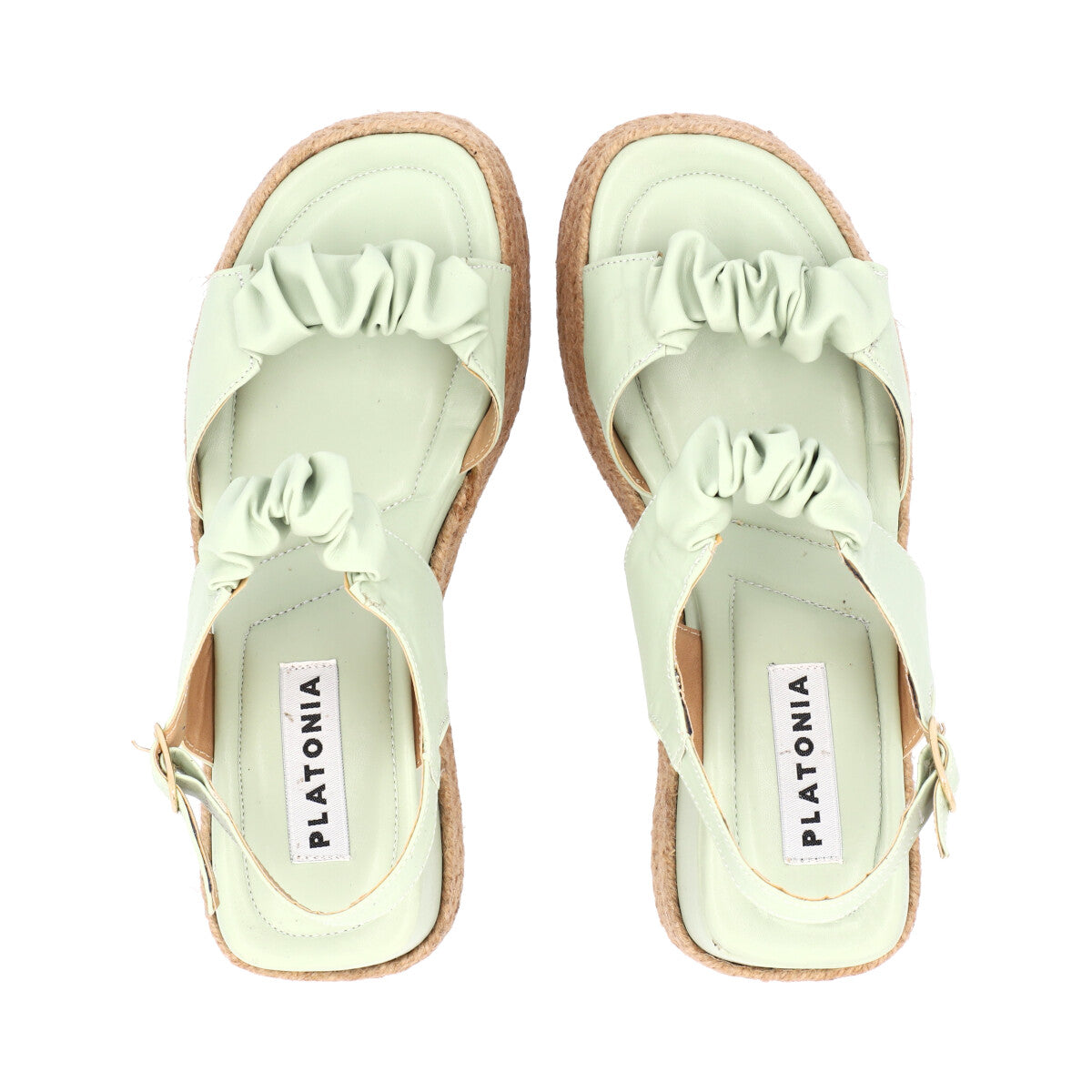 Sandalia de plataforma con ajuste de elástico corrugado fiorela piel sintético verde psitache para mujer.