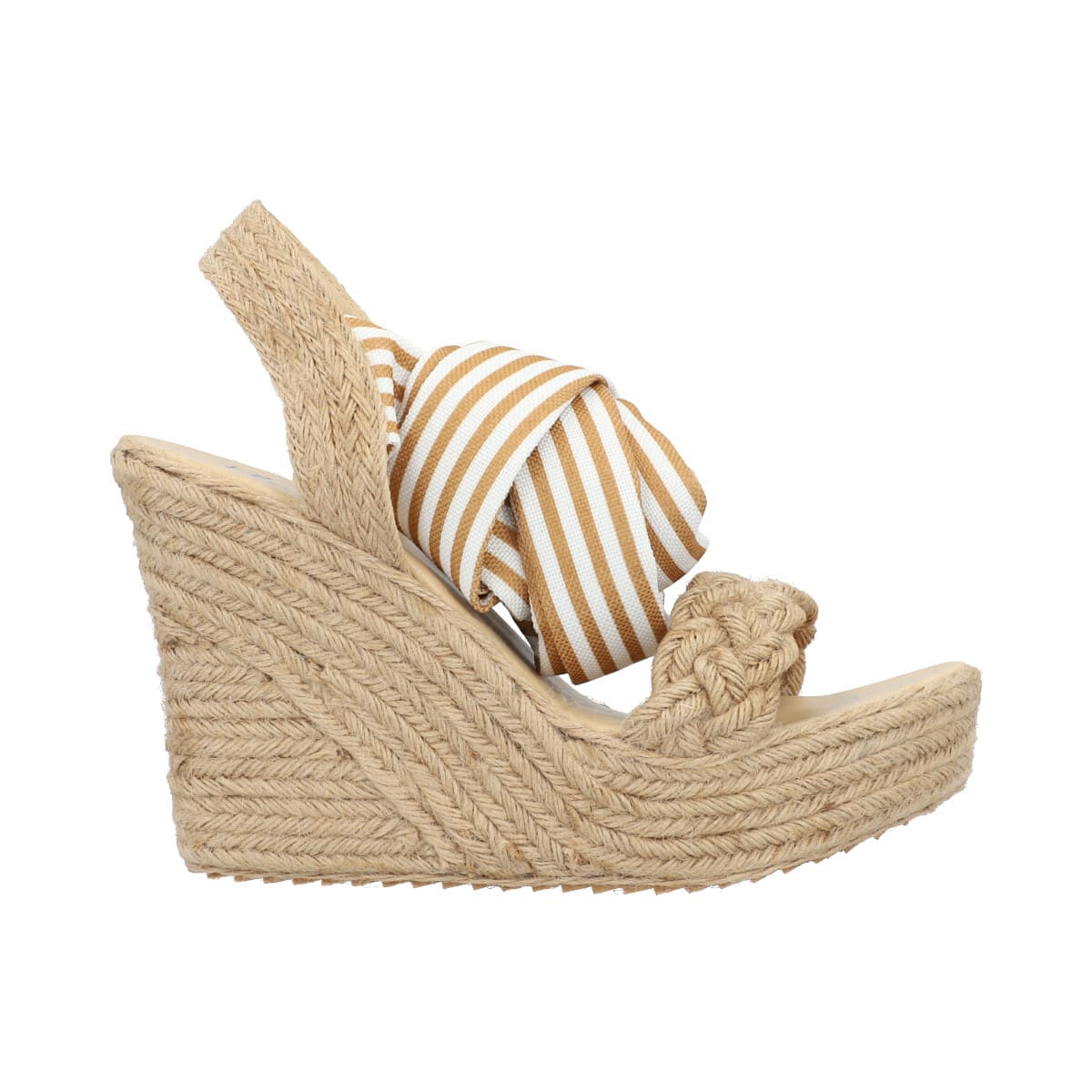Alpargata sandalia de plataforma con yute natural para mujer color beige con ajuste de listones estilizados.