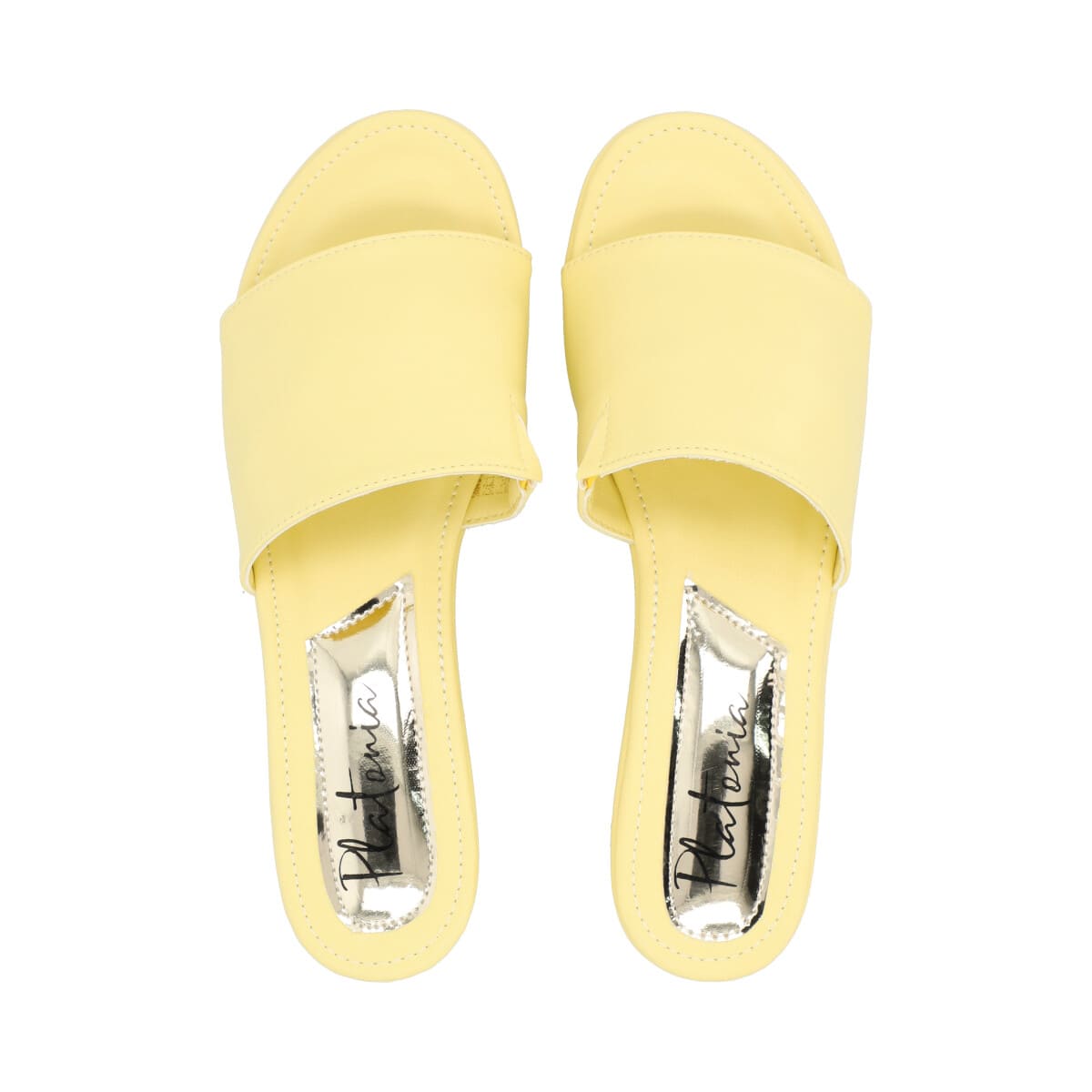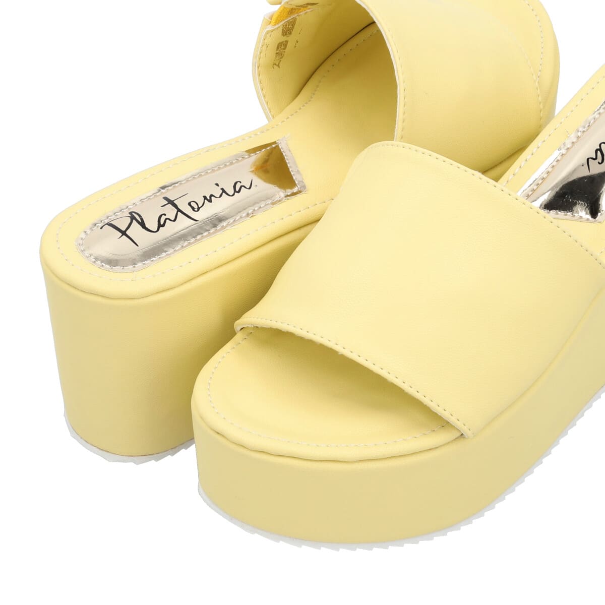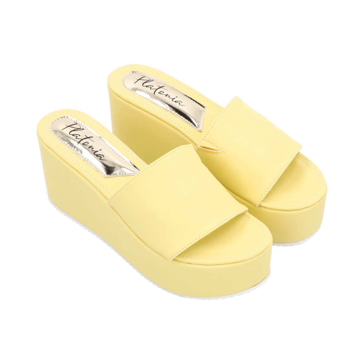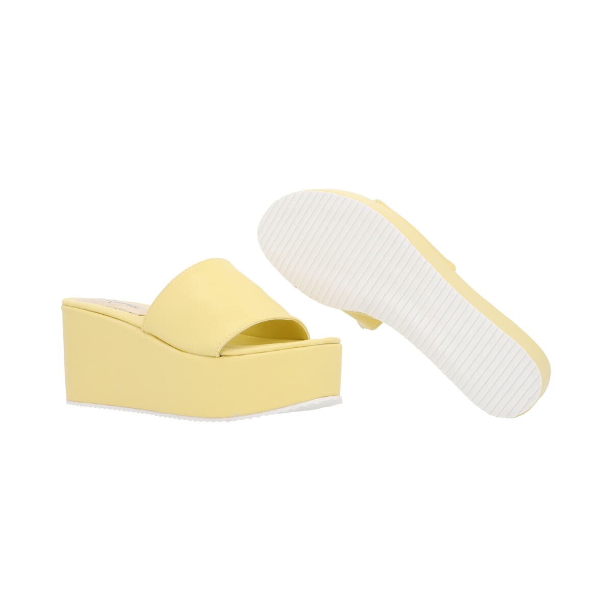 Sandalia de plataforma trendy con memory foam para mujer color amarillo betún.