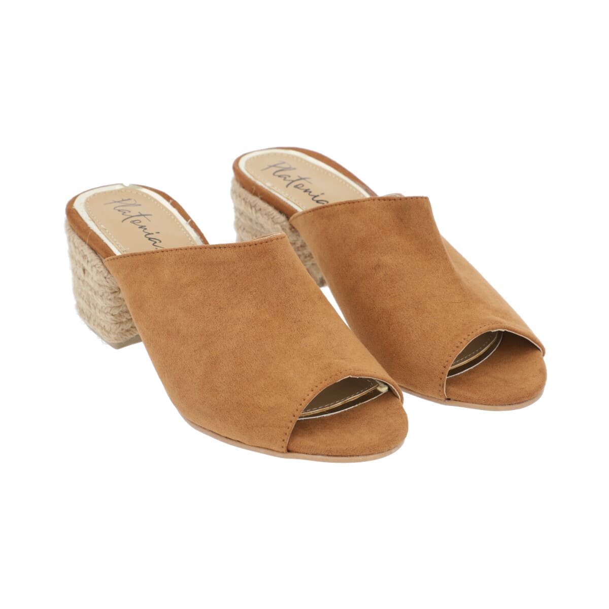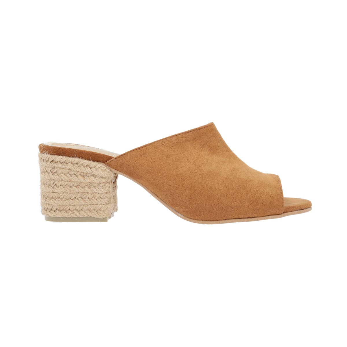 Sandalia de tacón yute tipo mule para mujer color camel