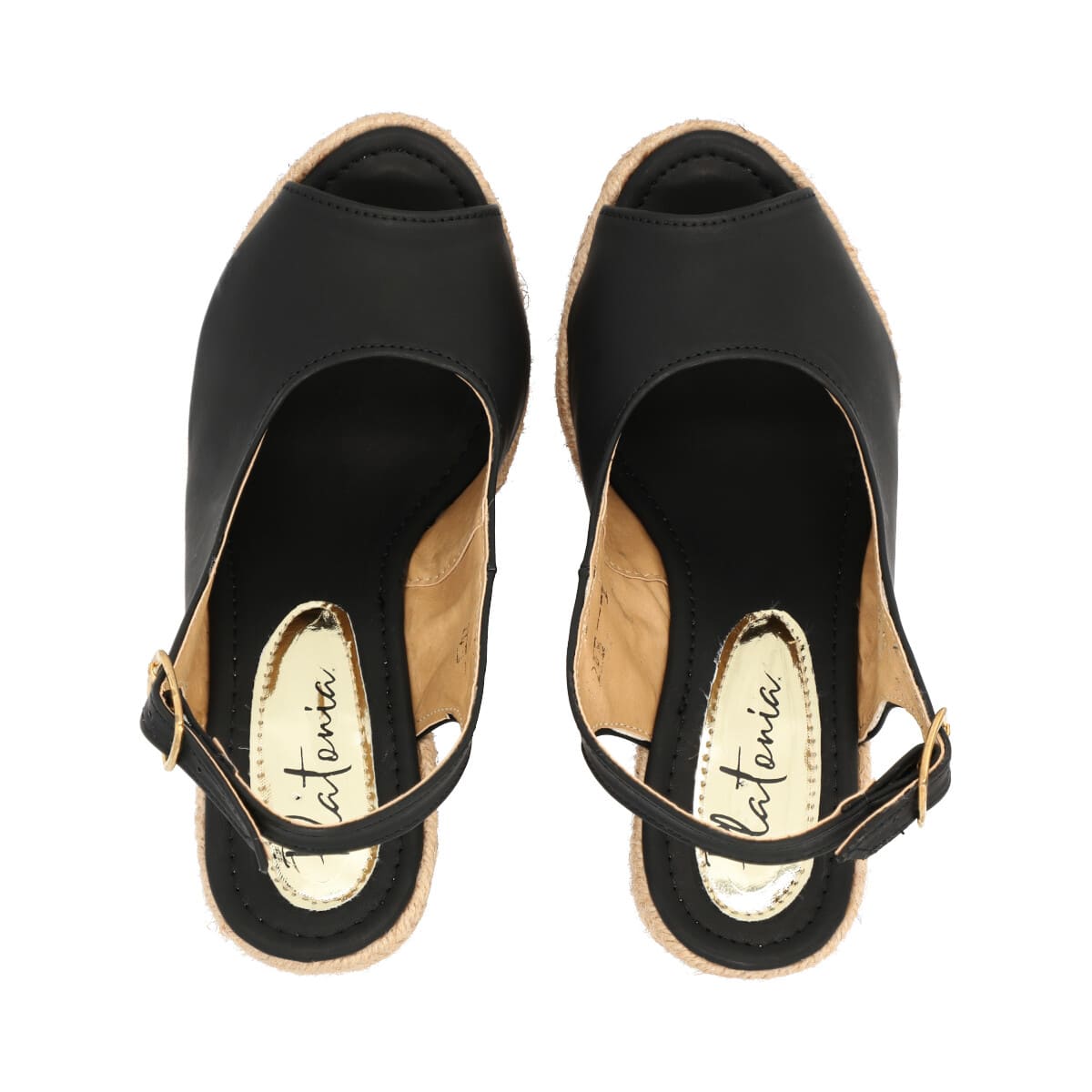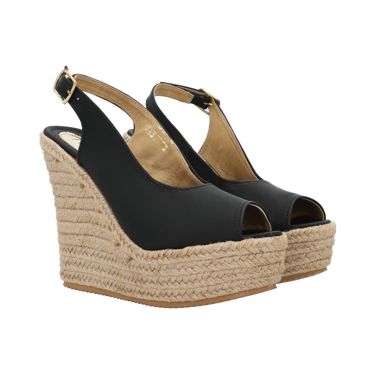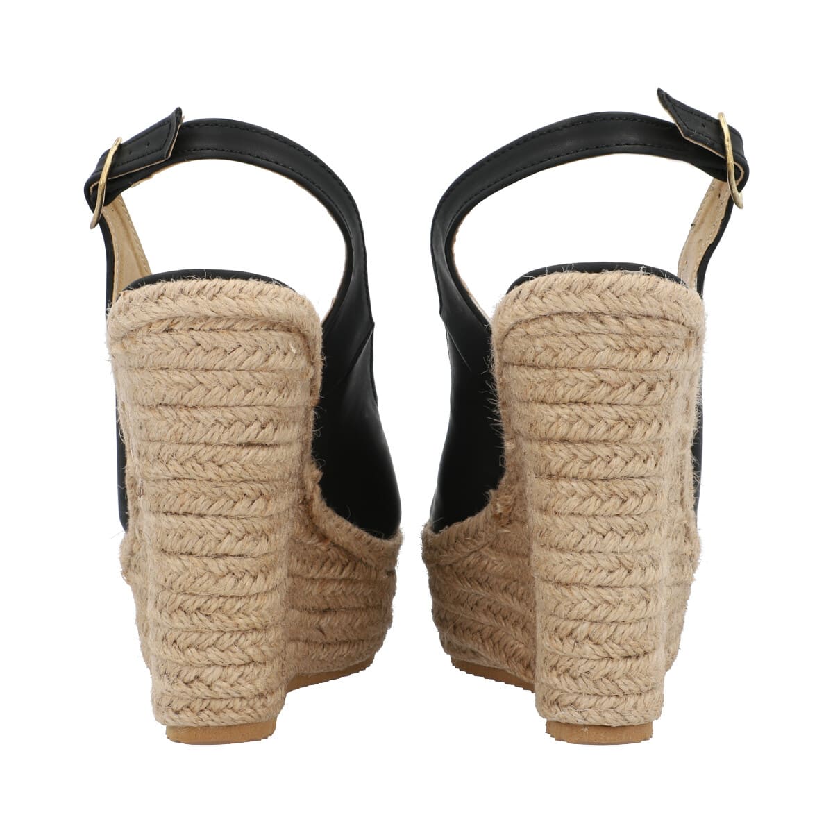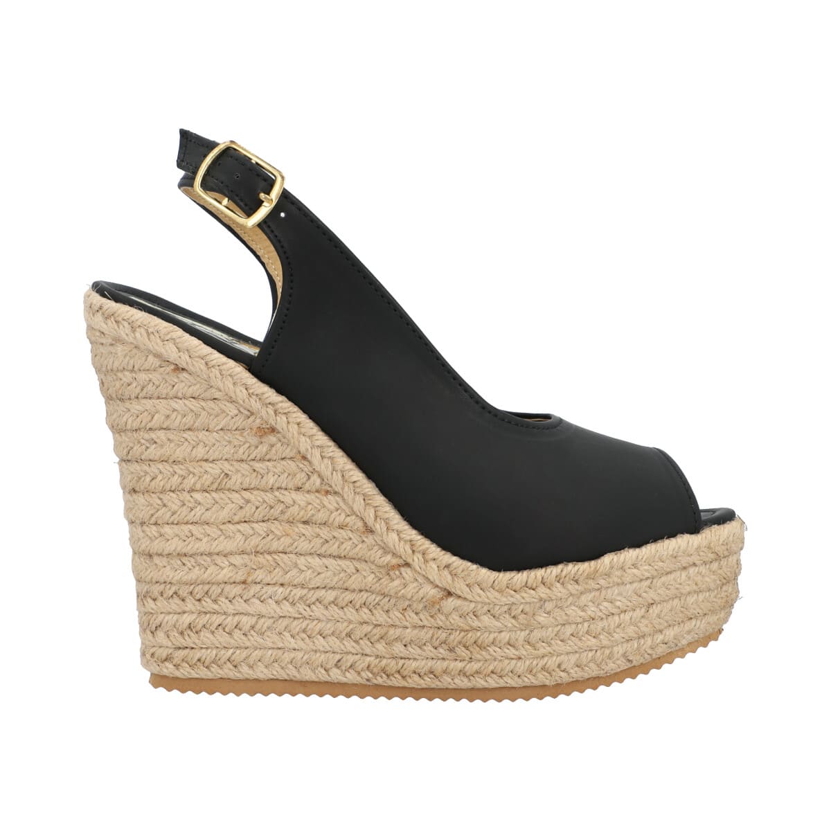 Sandalia de plataforma con yute para mujer color negro con látigo y punta abierta