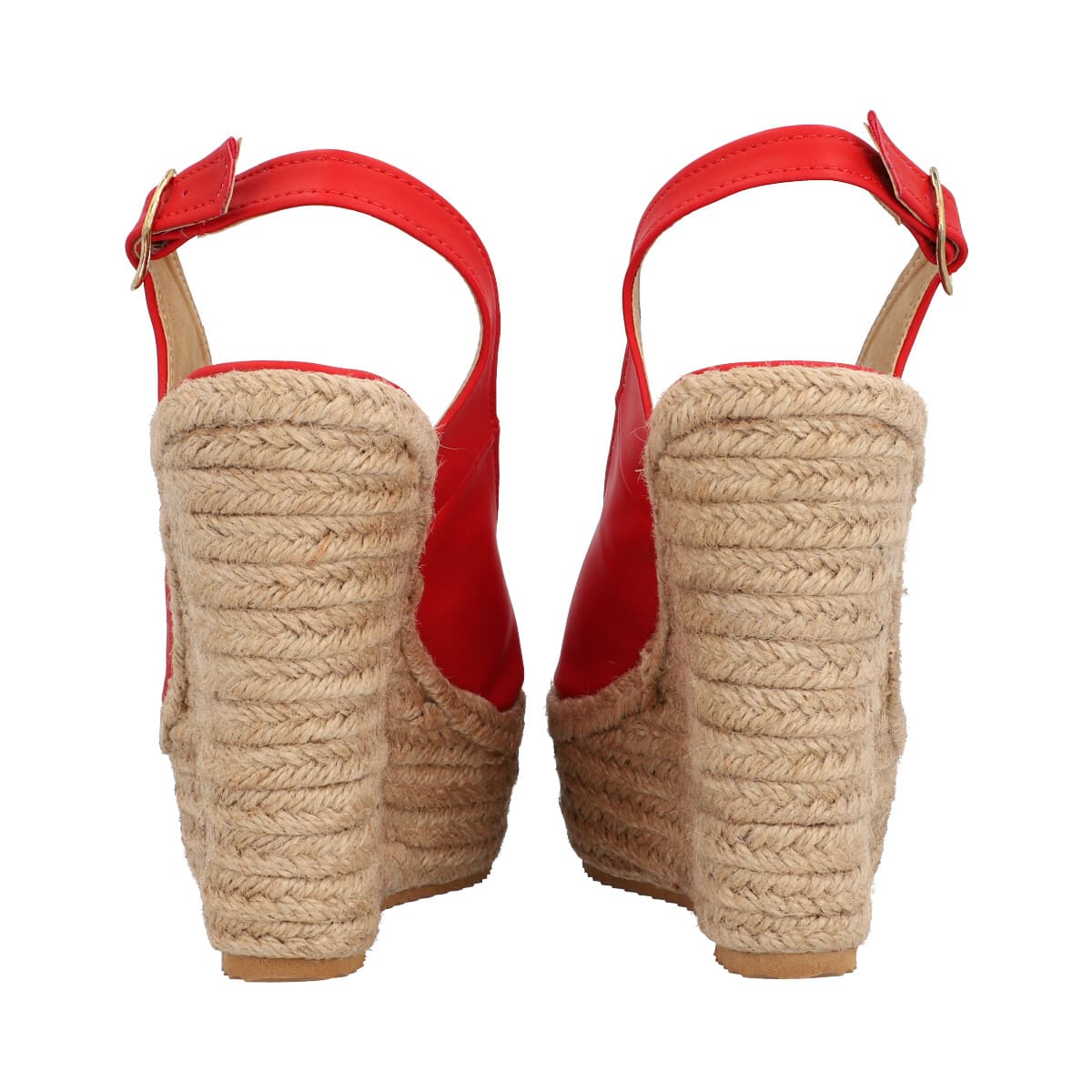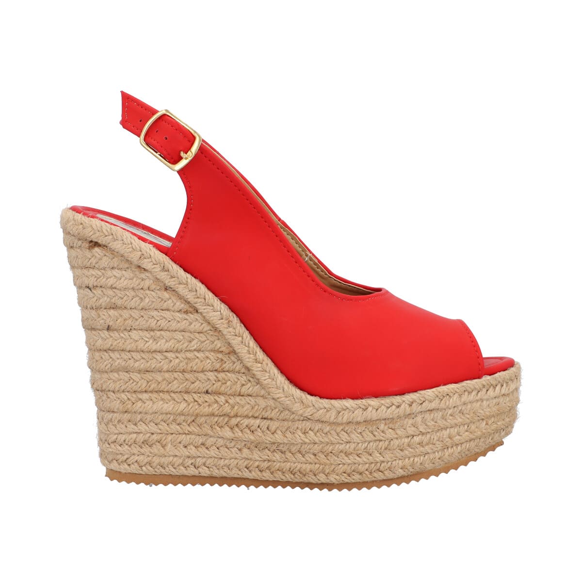 Sandalia de plataforma con yute para mujer color rojo con látigo y punta abierta