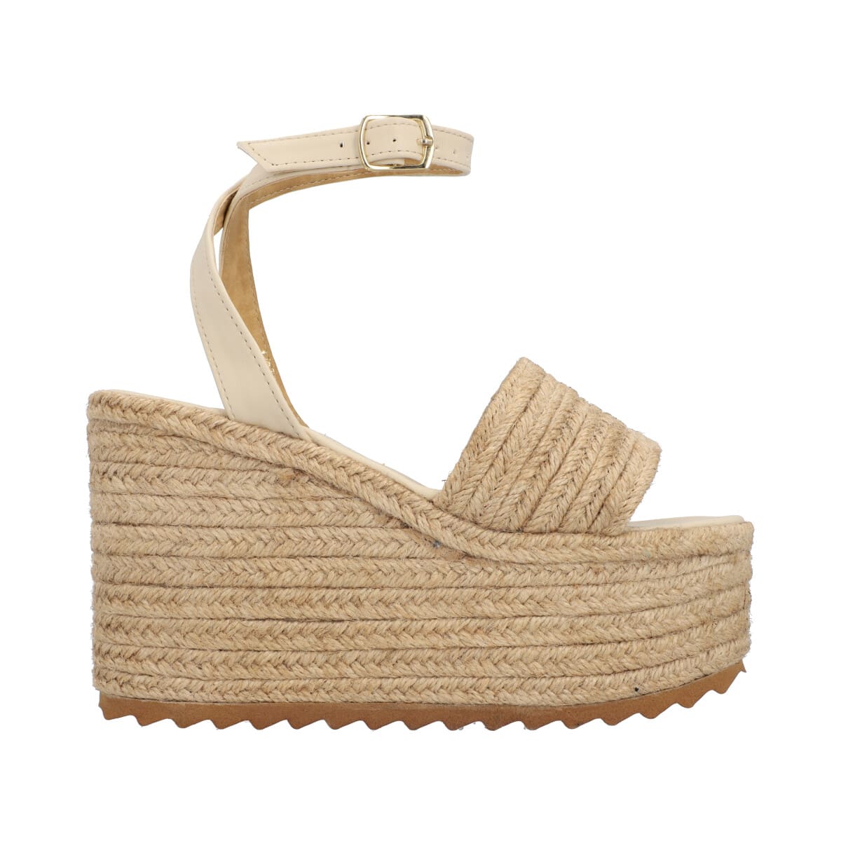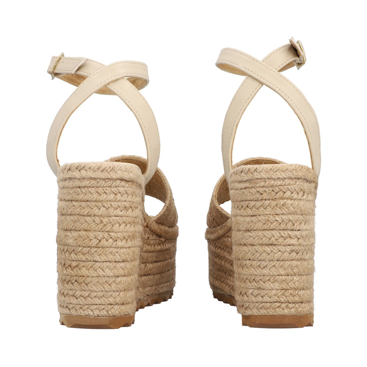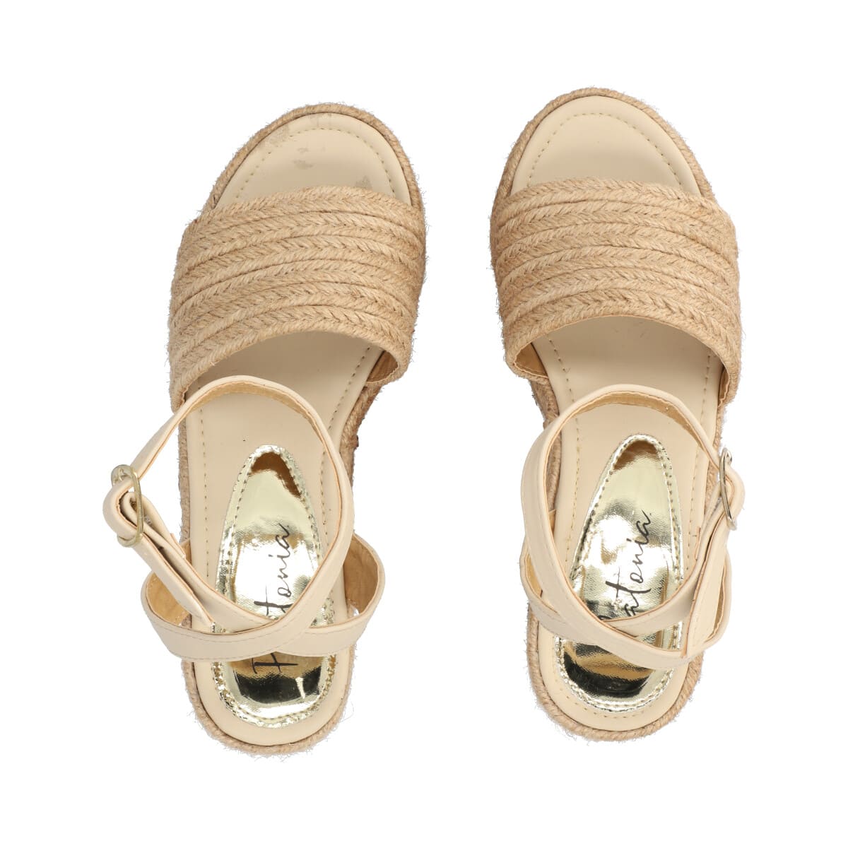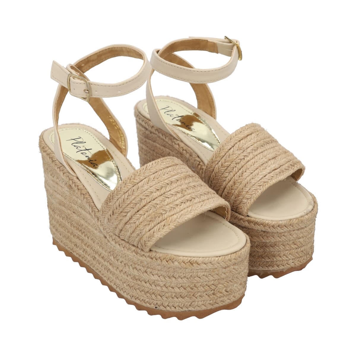 Sandalia de plataforma con yute para mujer color yute natural con látigo color nude.