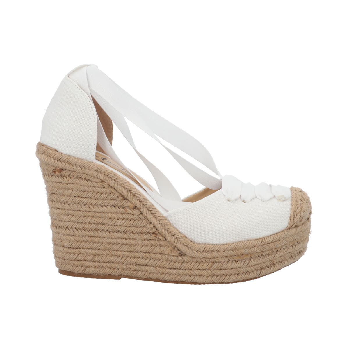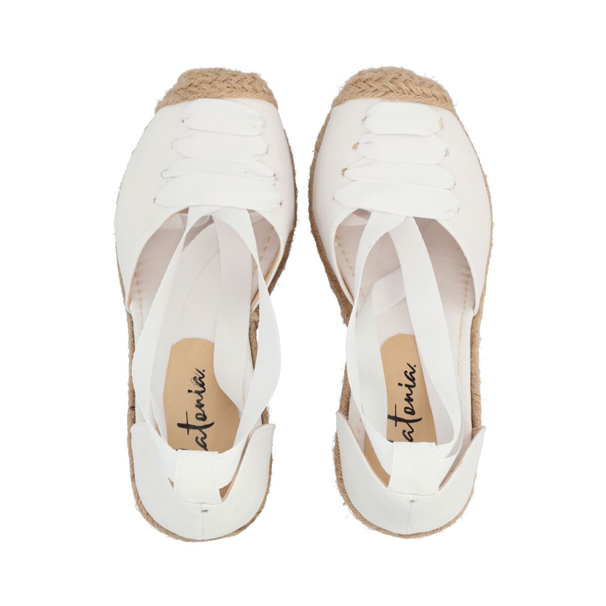 Alpargata de plataforma con yute para mujer color blanco con listón para ajuste en la pierna.