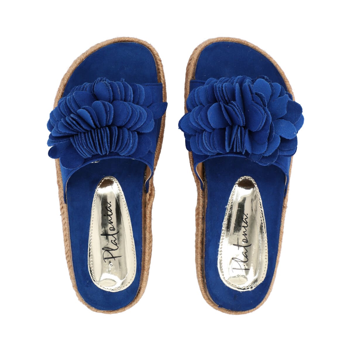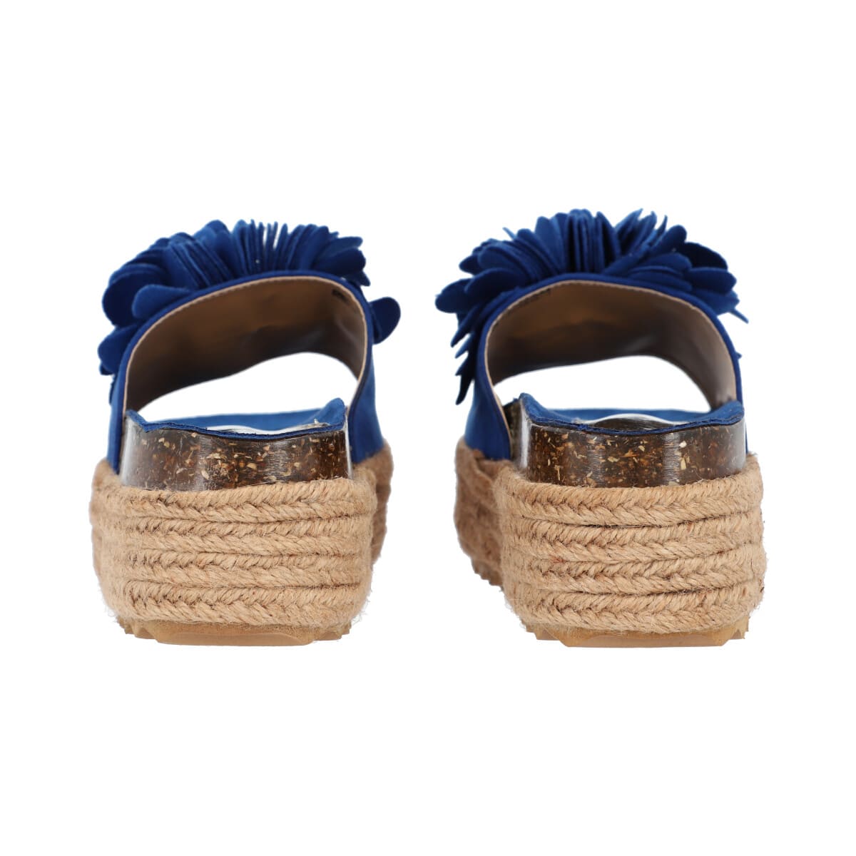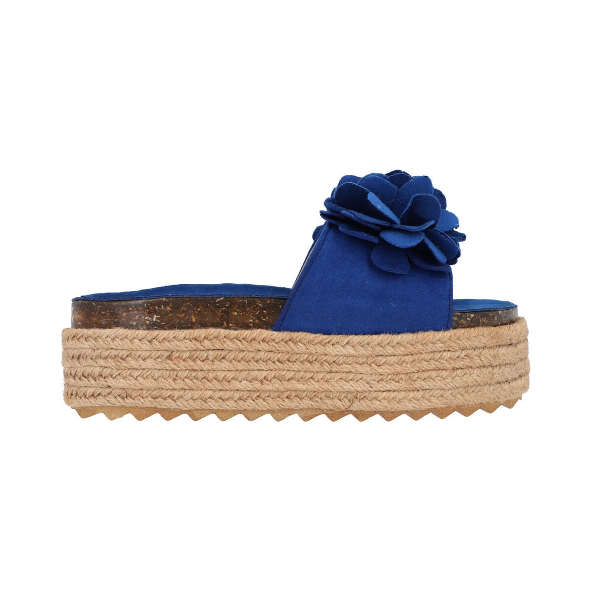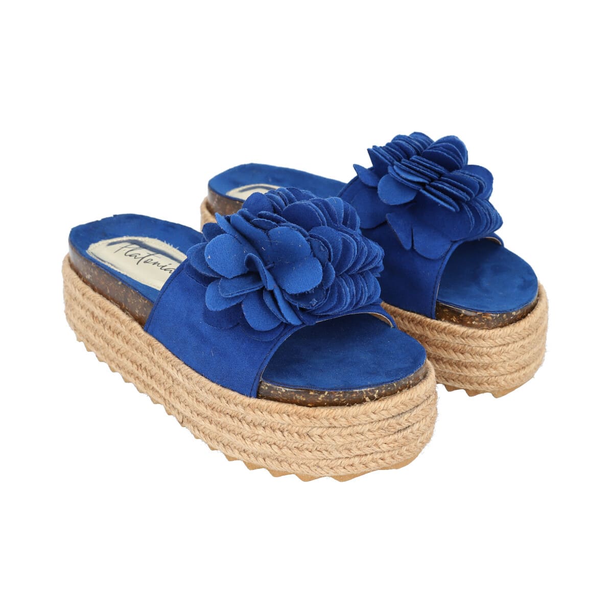 Sandalia de plataforma con yute para mujer color azul rey con aplicación de flor