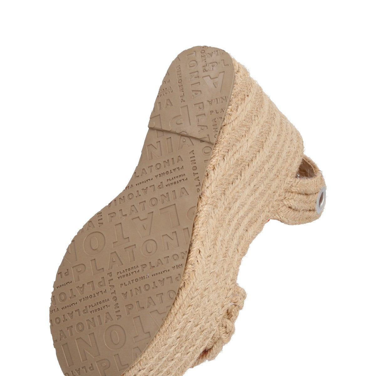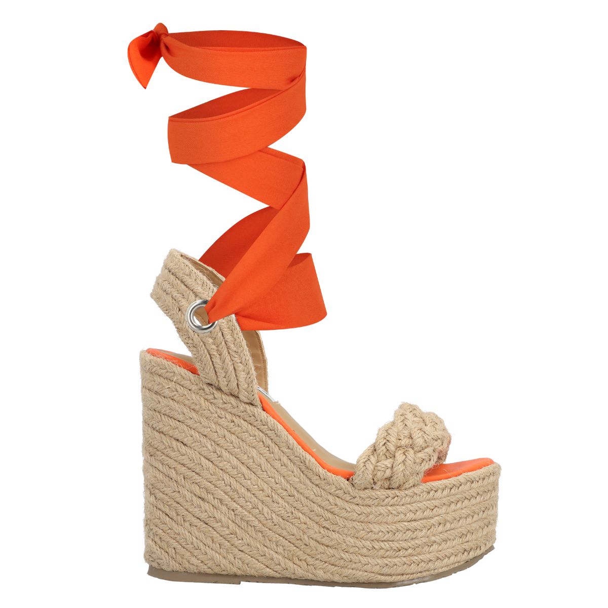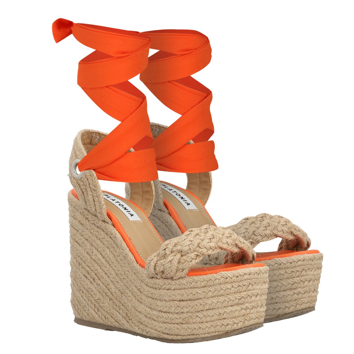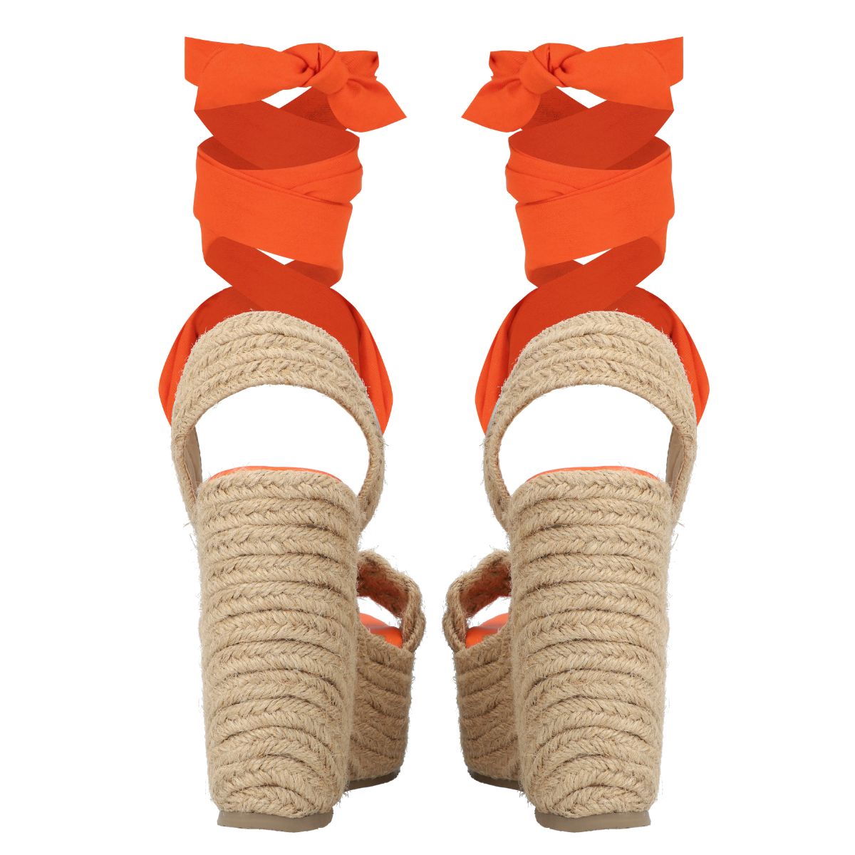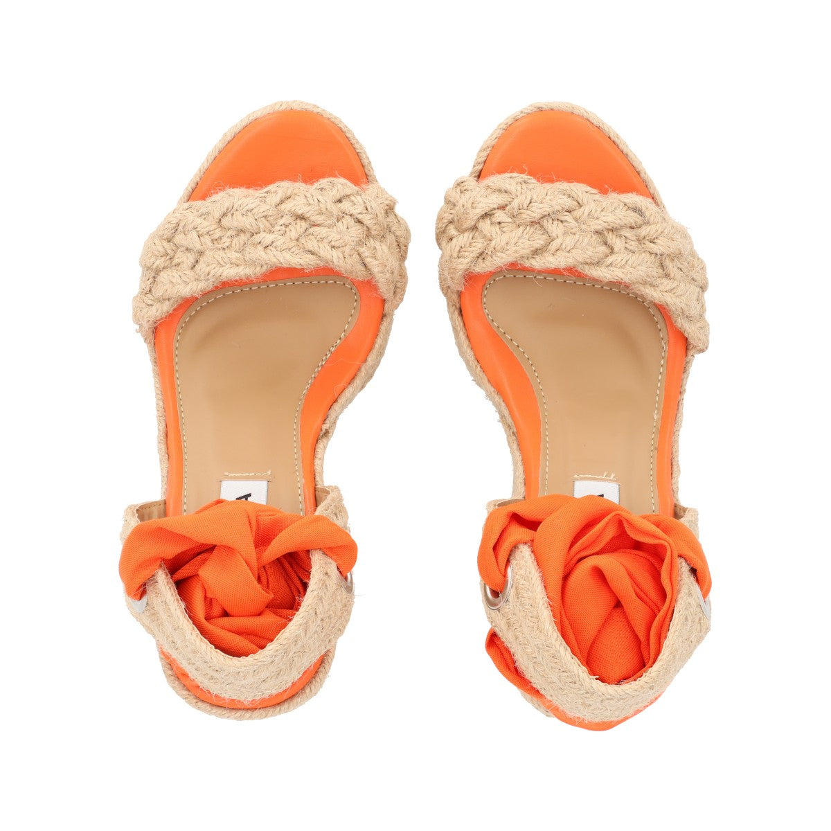 Alpargata sandalia de plataforma con yute natural para mujer mirella color naranja con ajuste de listón estilizado.