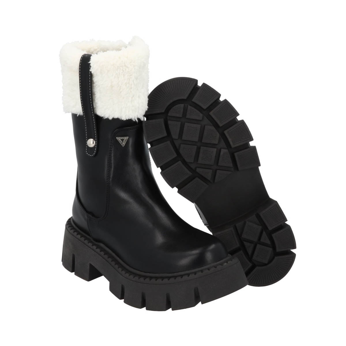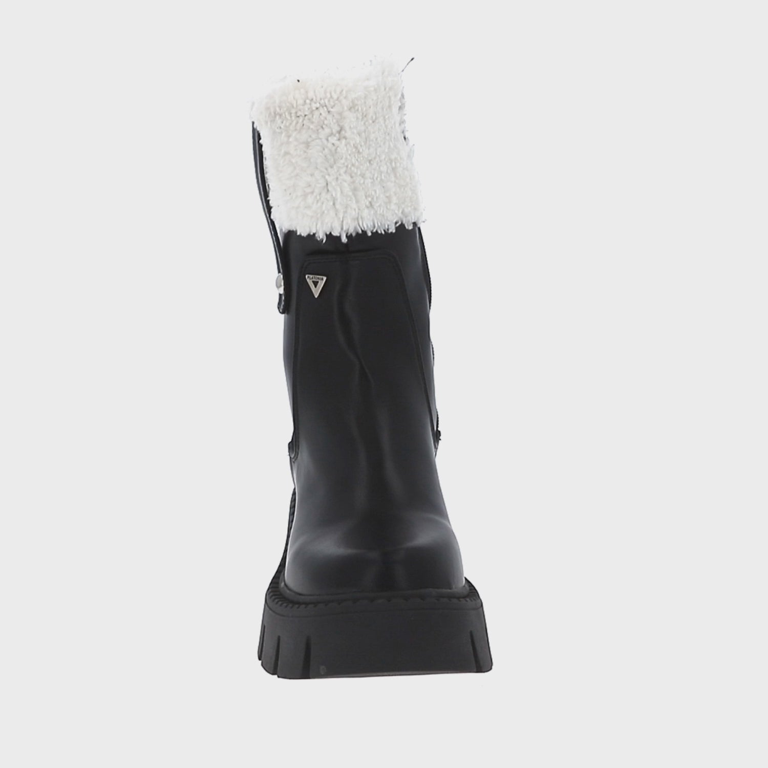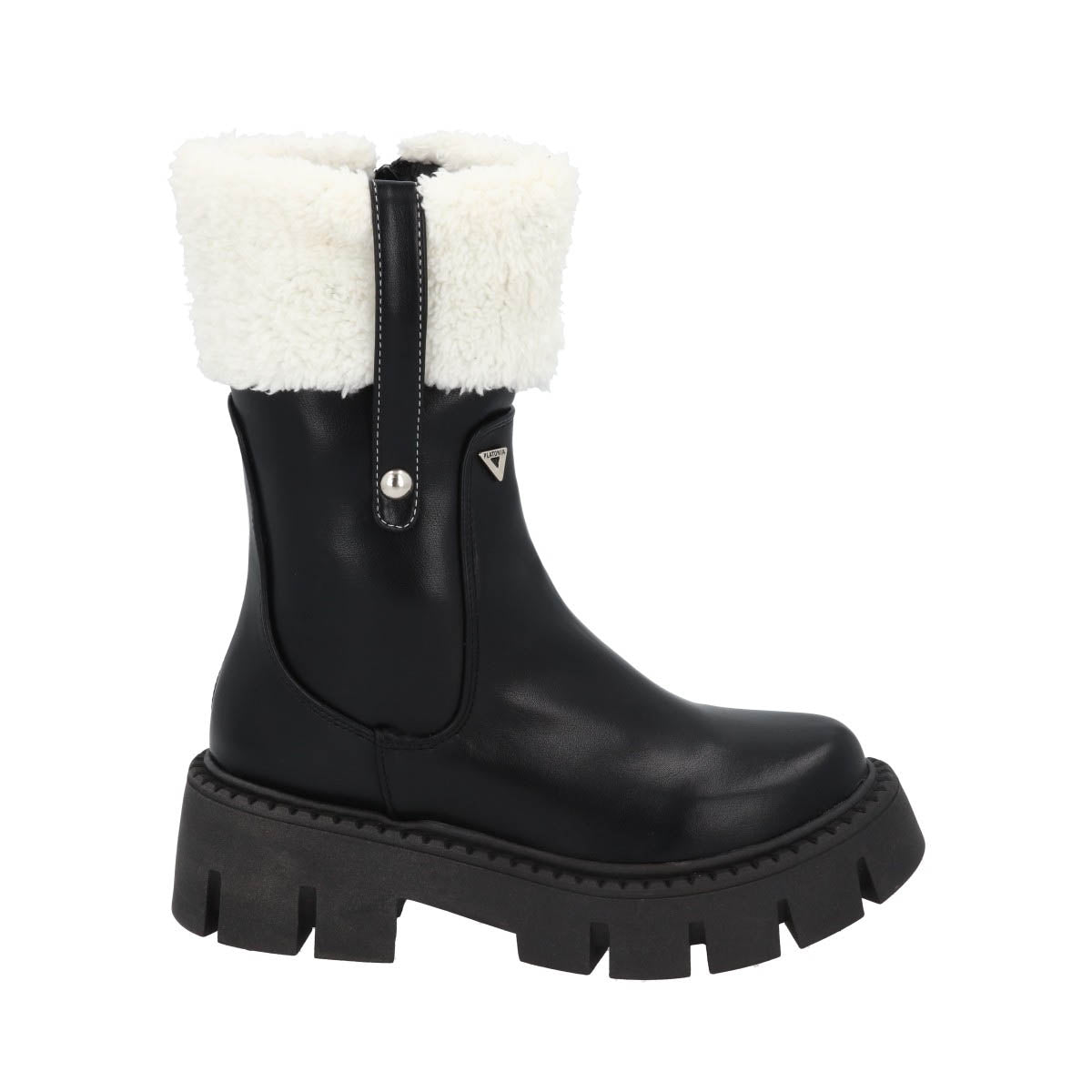 La Bota Combat Moscú con Suela Gruesa Track y Peluche de Platonia es un diseño exclusivo que refleja fuerza, modernidad y estilo en cada detalle.