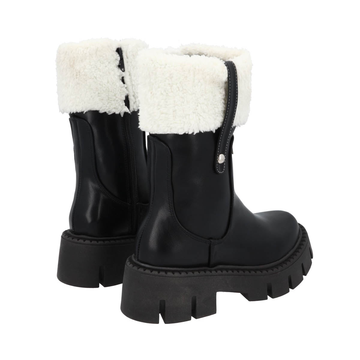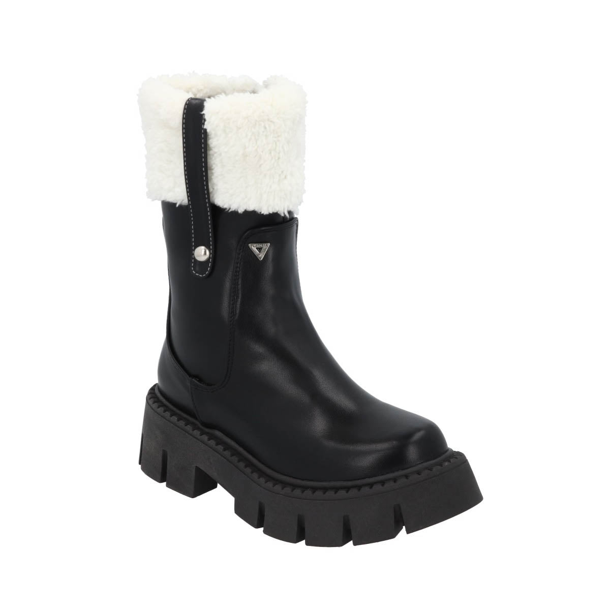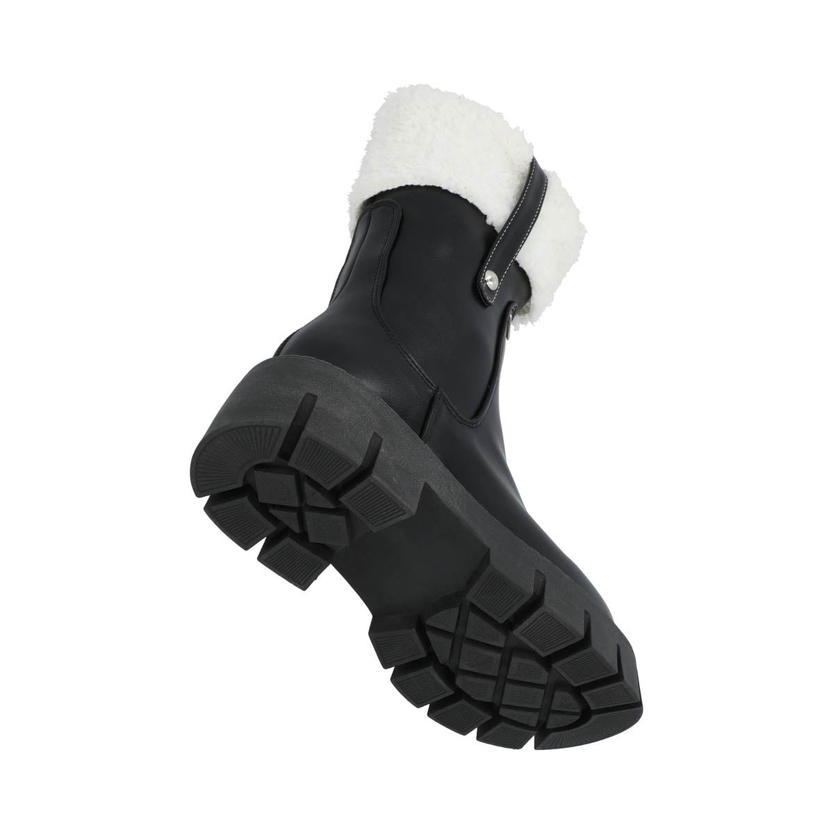 Bota Combat Moscu Suela Gruesa Track Para Mujer Negro Con Peluche