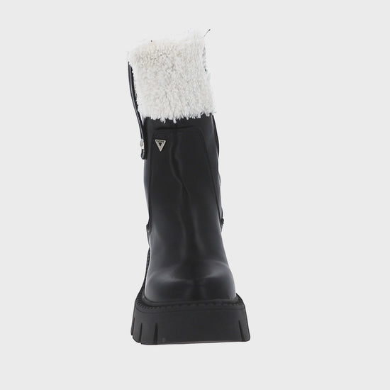Confeccionada en Cabra Piel Sintético de alta calidad, luce un acabado en negro elegante y versátil, fácil de combinar con cualquier outfit. Su diseño con detalles de peluche agrega un toque chic y acogedor que la hace única, ideal para acompañar looks urbanos, casuales o sofisticados.