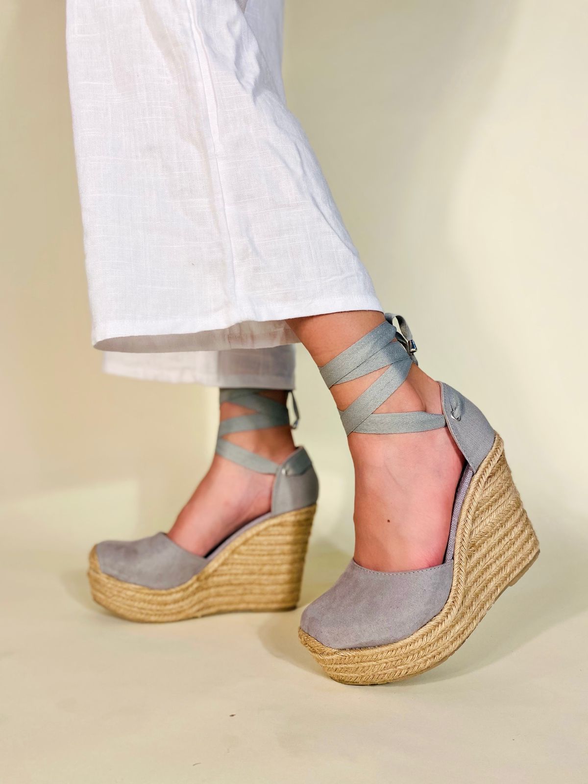 Alpargata de plataforma con yute natural para mujer micro suede durazno rosa, con látigo estilizado y ajustable.