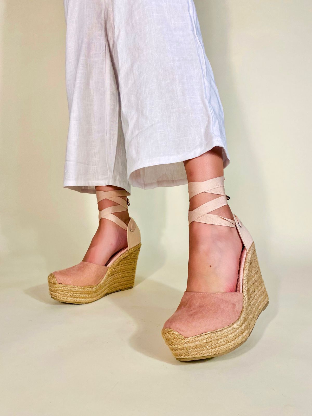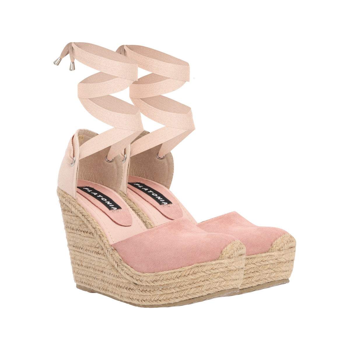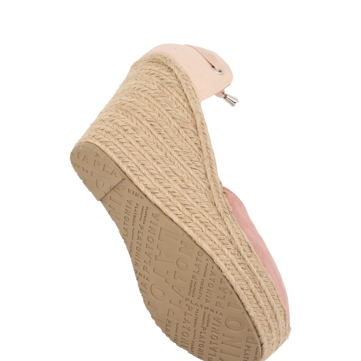 Alpargata de plataforma con yute natural para mujer micro suede durazno rosa, con látigo estilizado y ajustable.