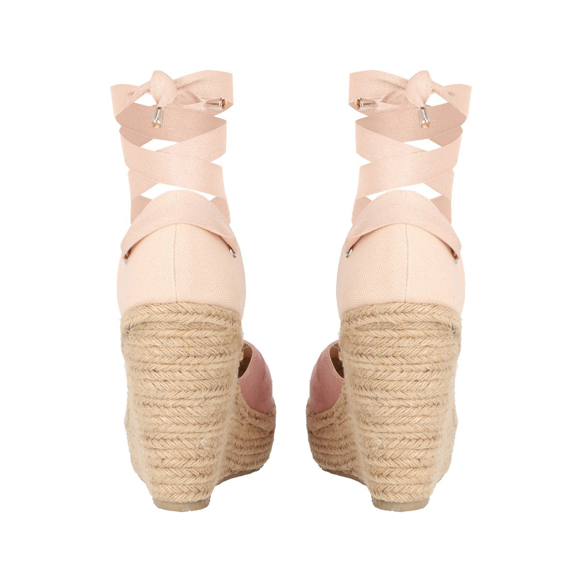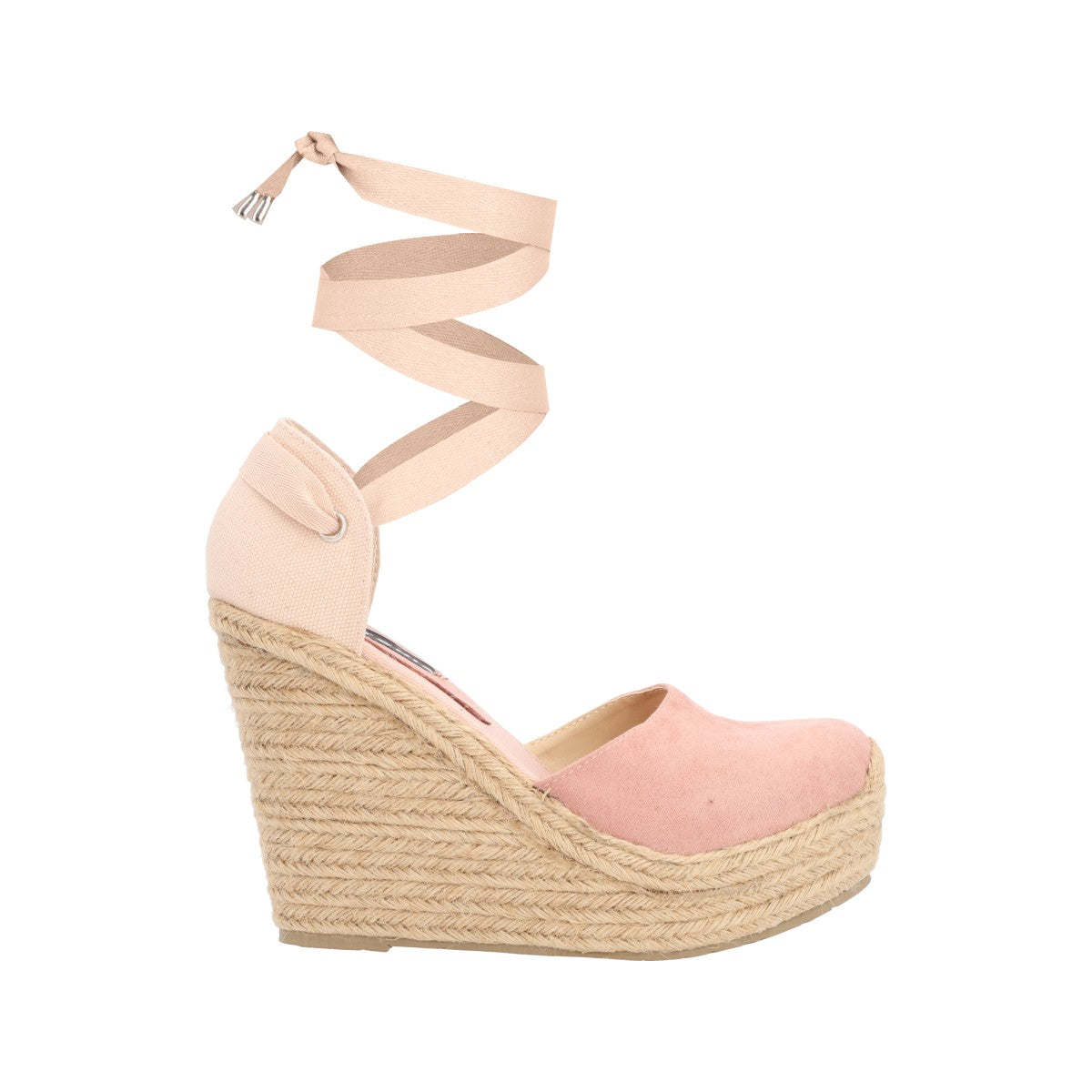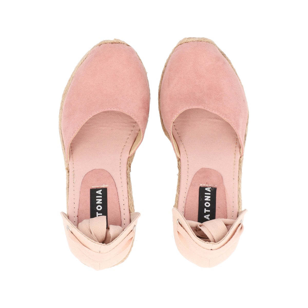 Alpargata de plataforma con yute natural para mujer micro suede durazno rosa, con látigo estilizado y ajustable.