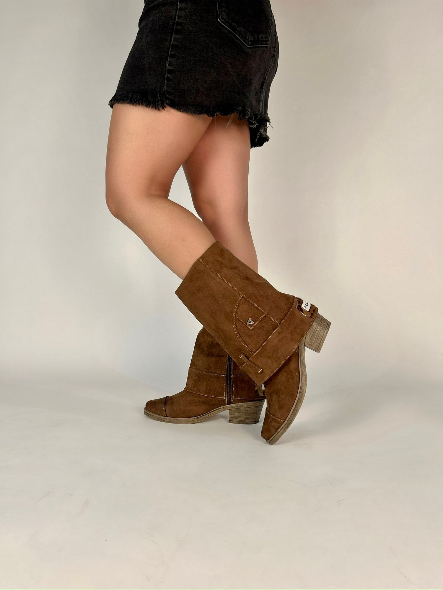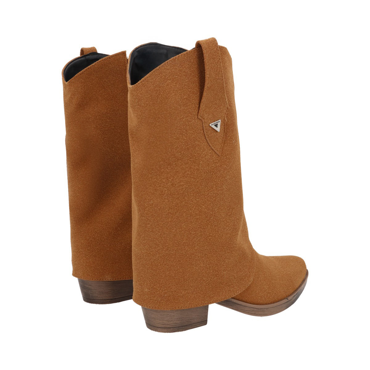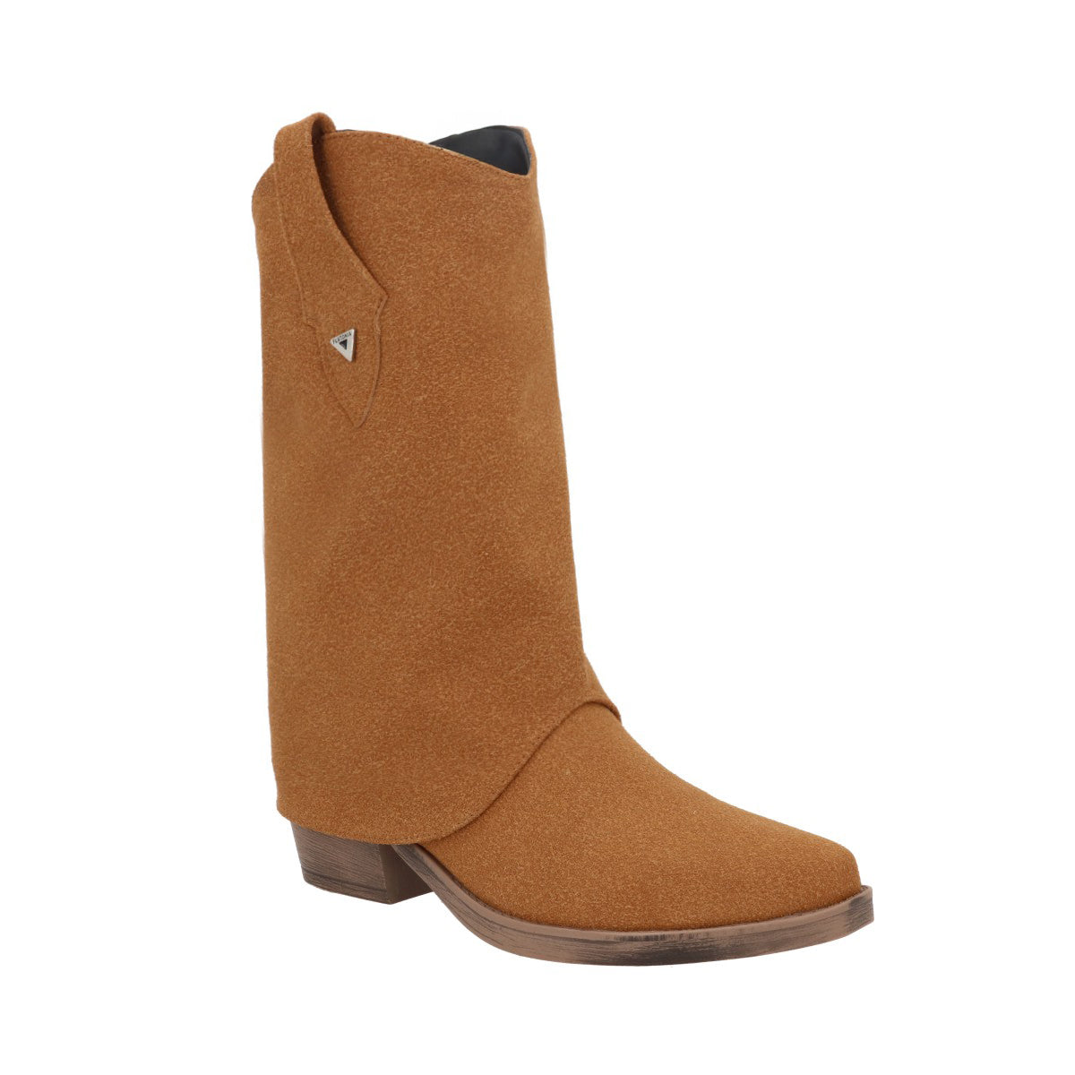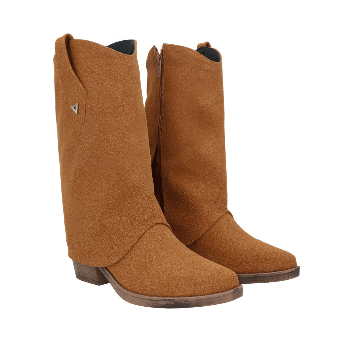 Bota De Tacón Larga Oklahoma Con Capucha Para Mujer Carnaza Camel