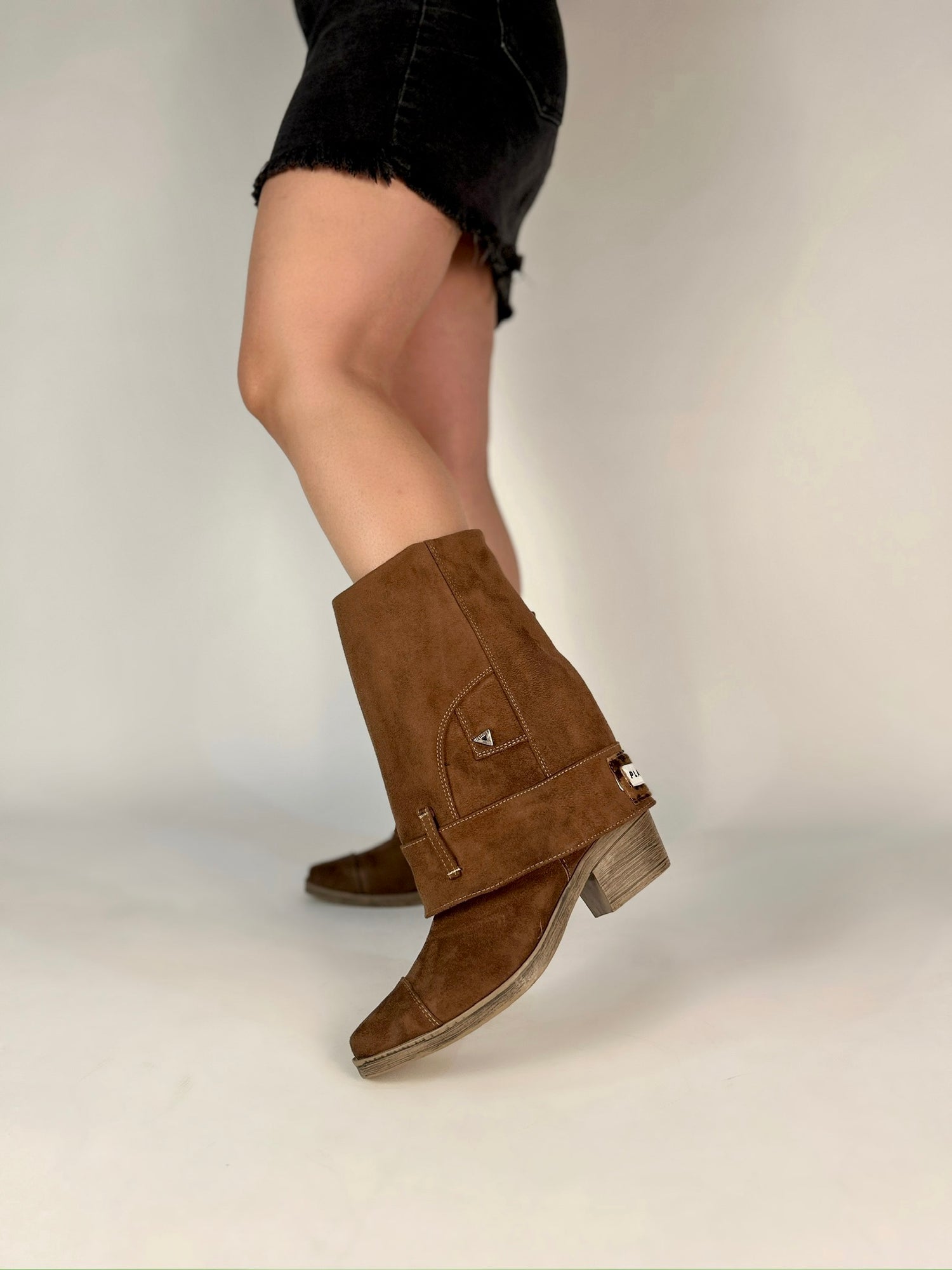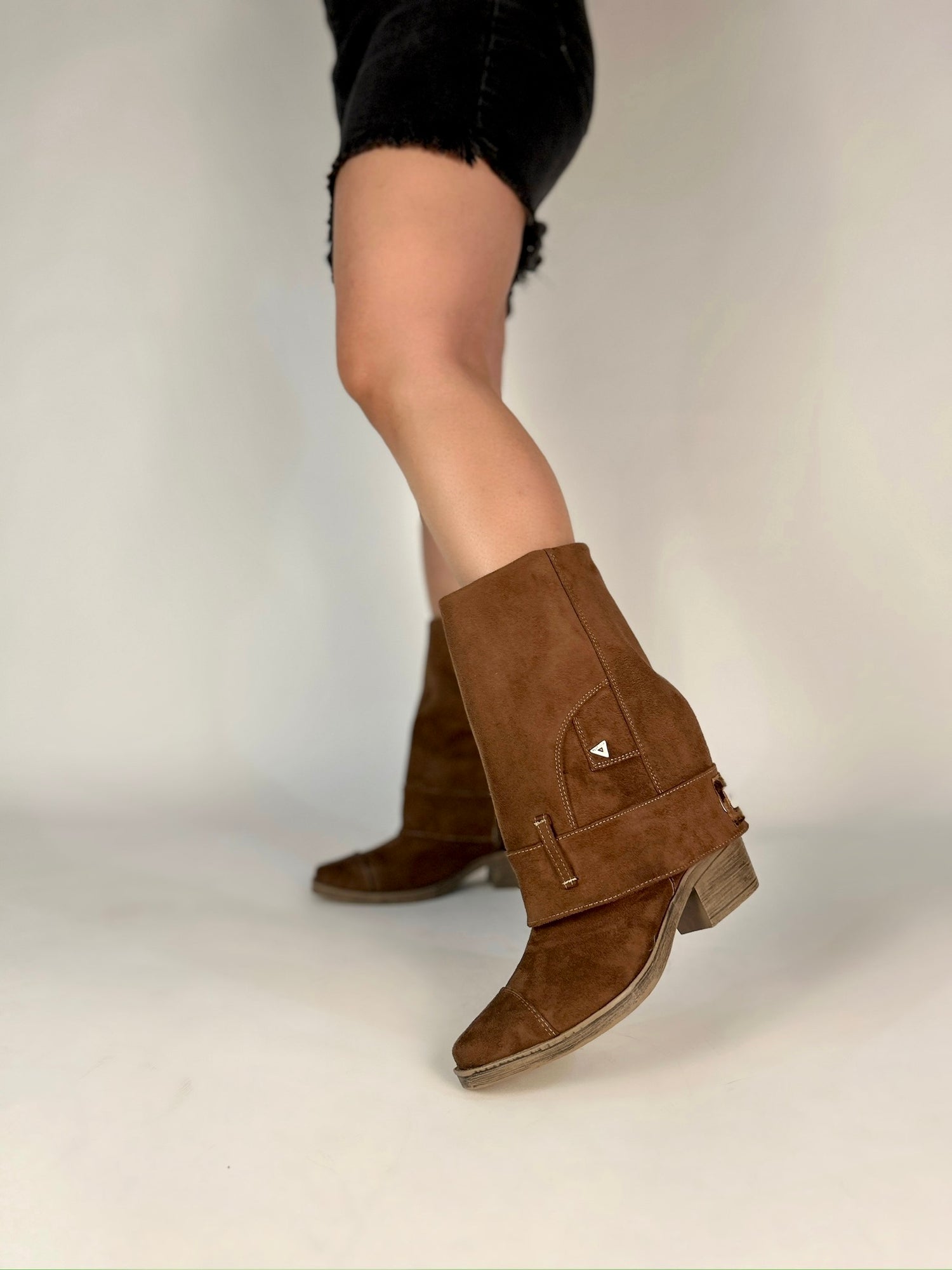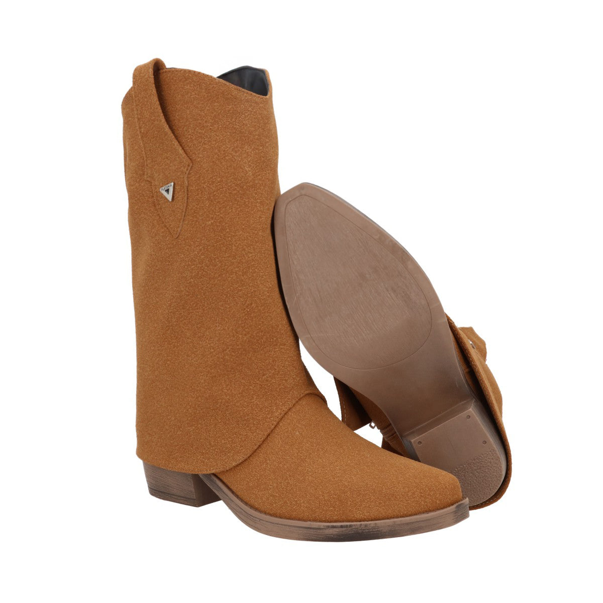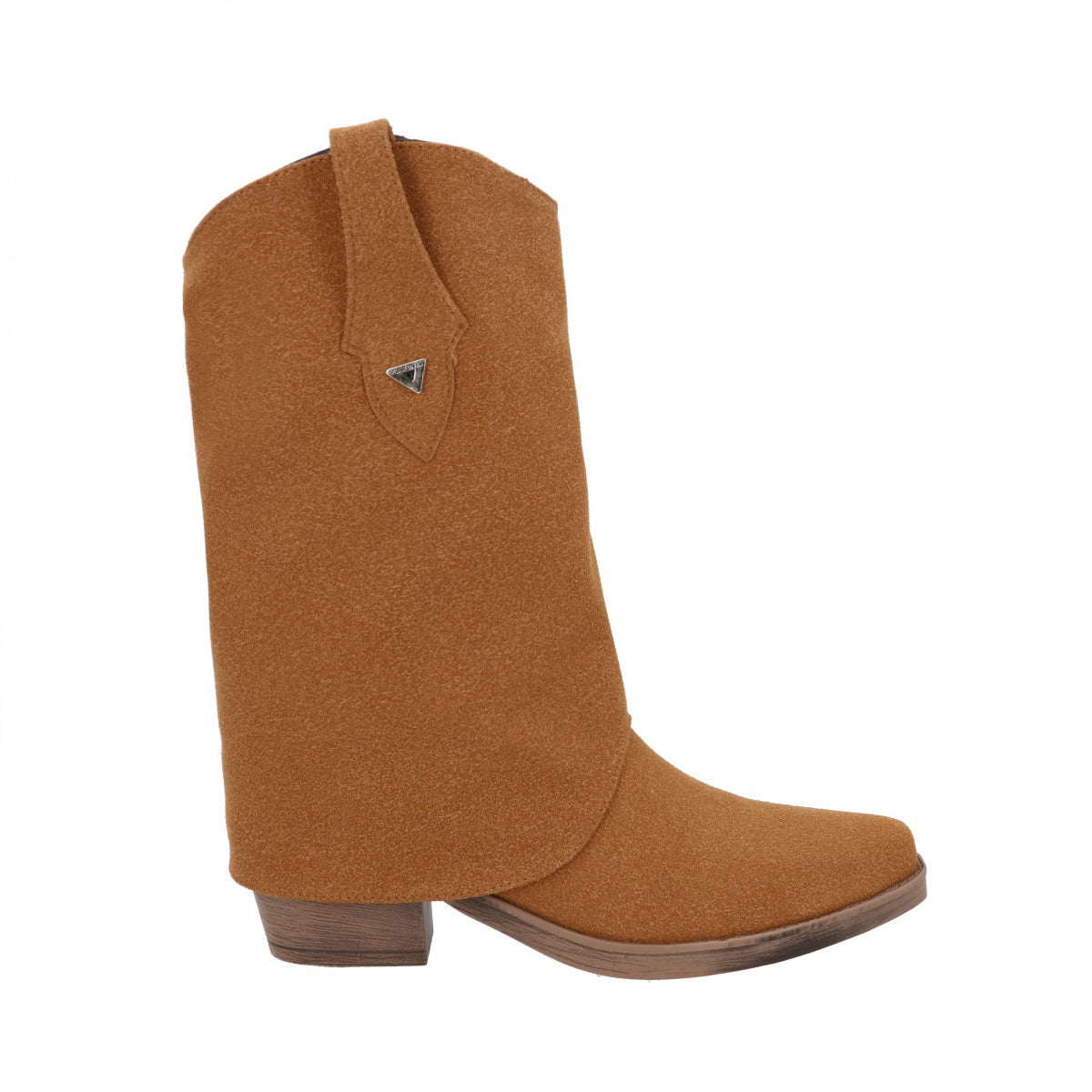 Bota De Tacón Larga Oklahoma Con Capucha Para Mujer Carnaza Camel