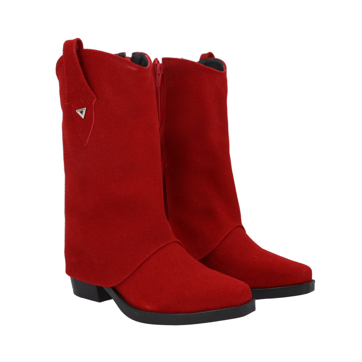 Bota De Tacón Larga Oklahoma Con Capucha Para Mujer Carnaza Rojo