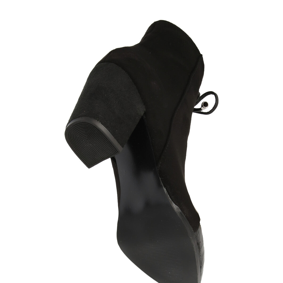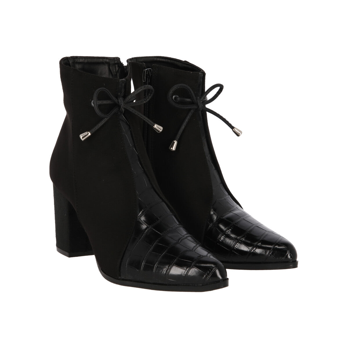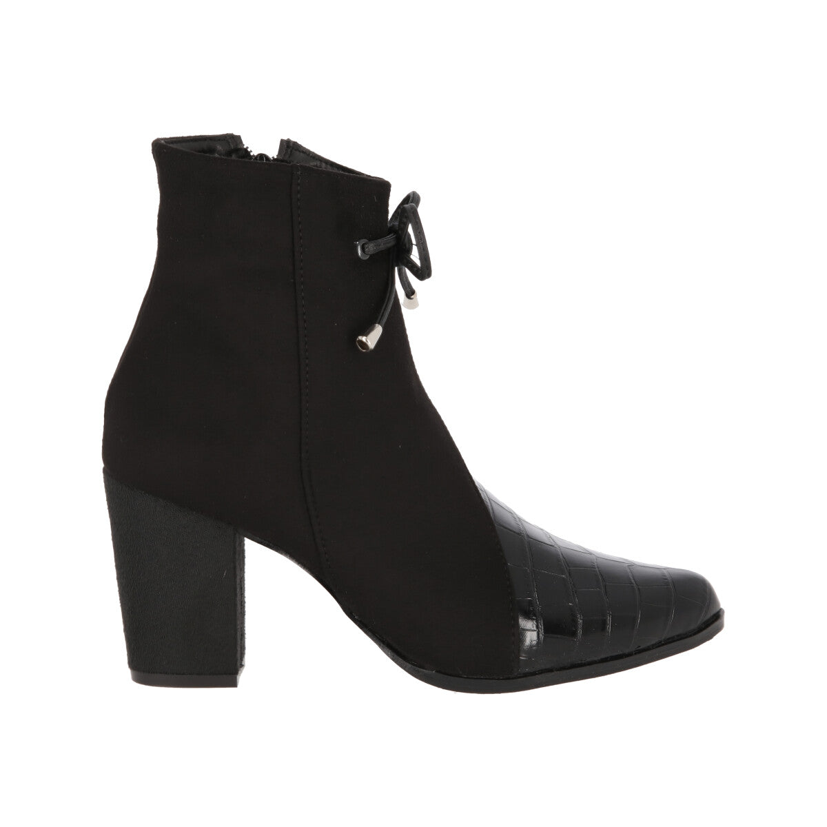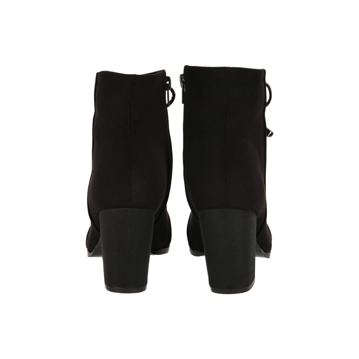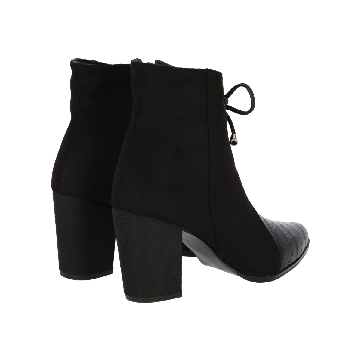 Botín de tacón alto al tobillo para mujer charo drillo con micro suede negro con tira de ajuste estilizado.
