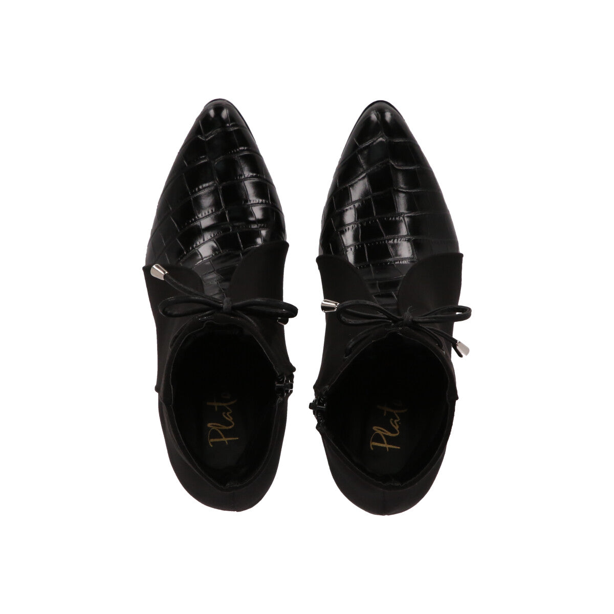 La comodidad y el estilo que buscas en un calzado, lo encuentras en el diseño del Botín Olimpia de Platonia. La parte superior está confeccionada con charol drillo y mezcla de micro suede, lo cual le da una vista difícil de ignorar. El cierre lateral permite ajustarlas suavemente.