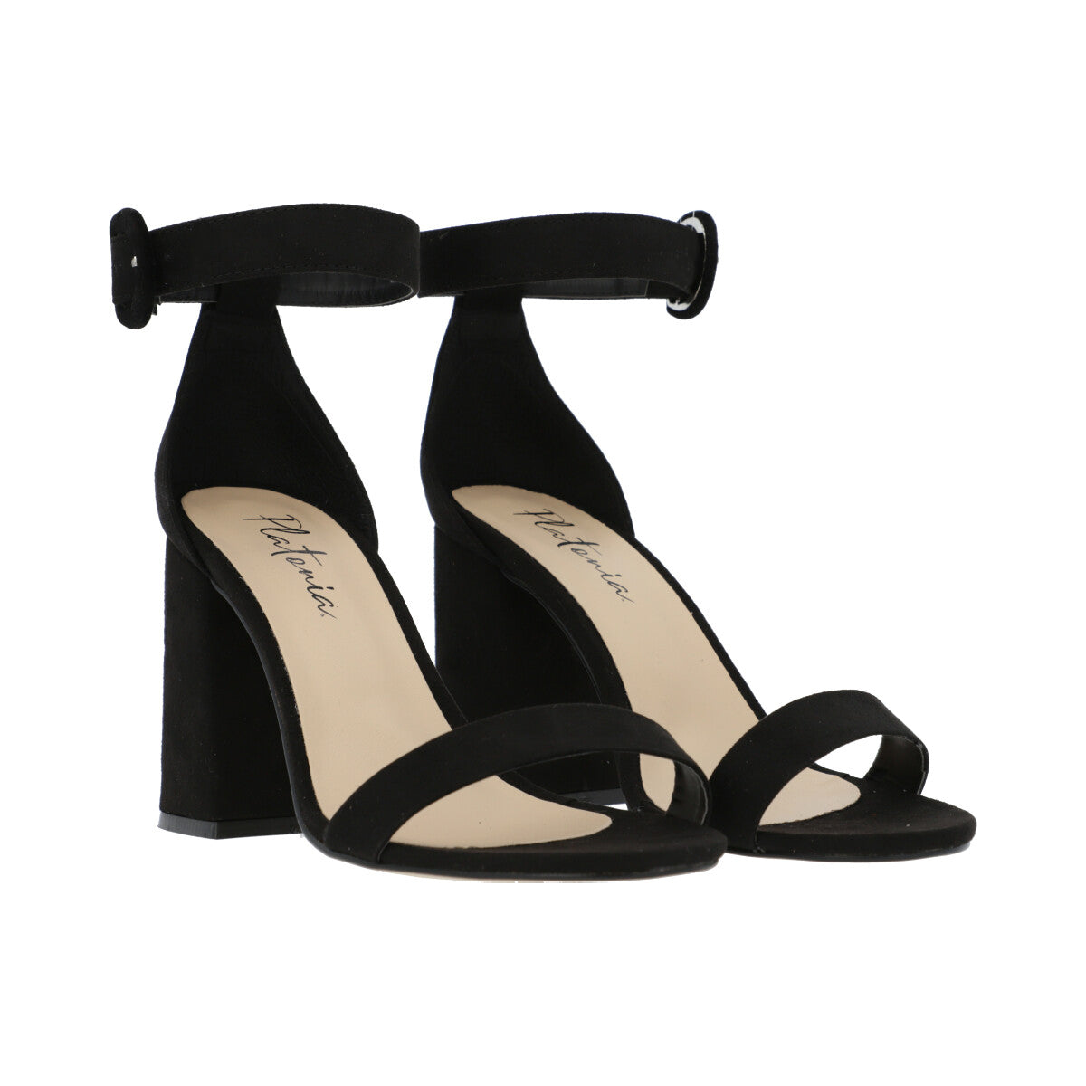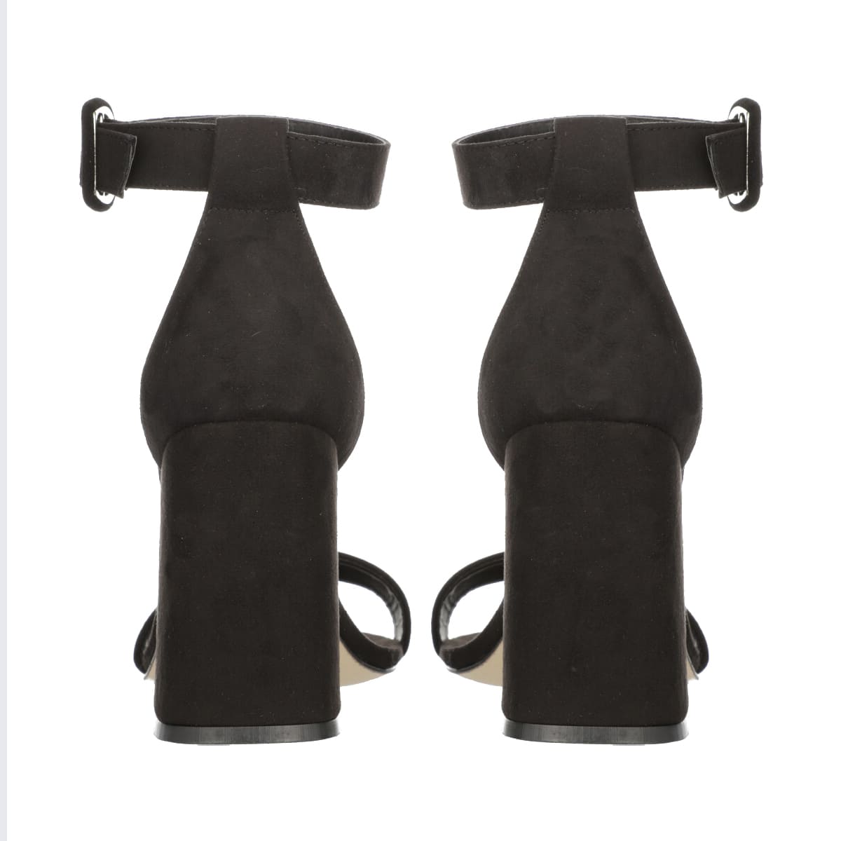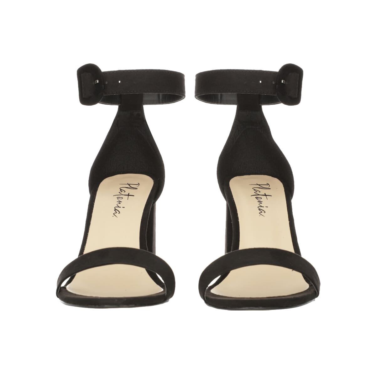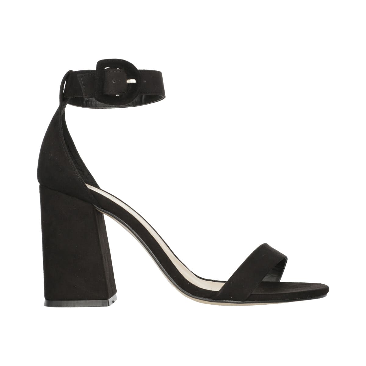 Zapatilla para mujer color negro con látigo ajustable para el tobillo con hebilla circular