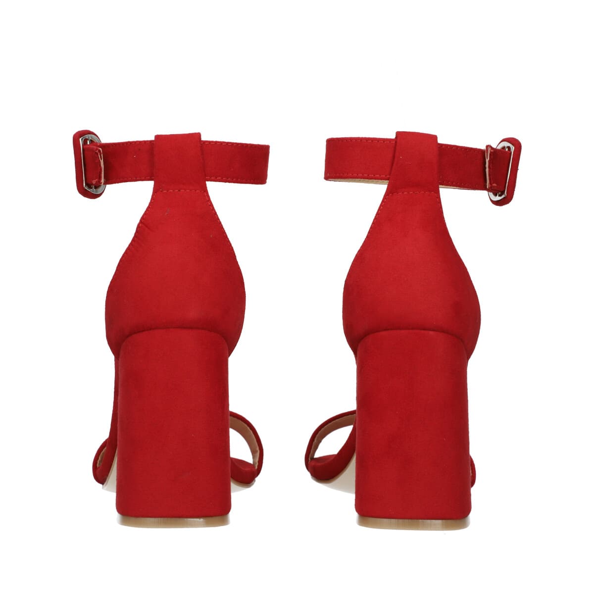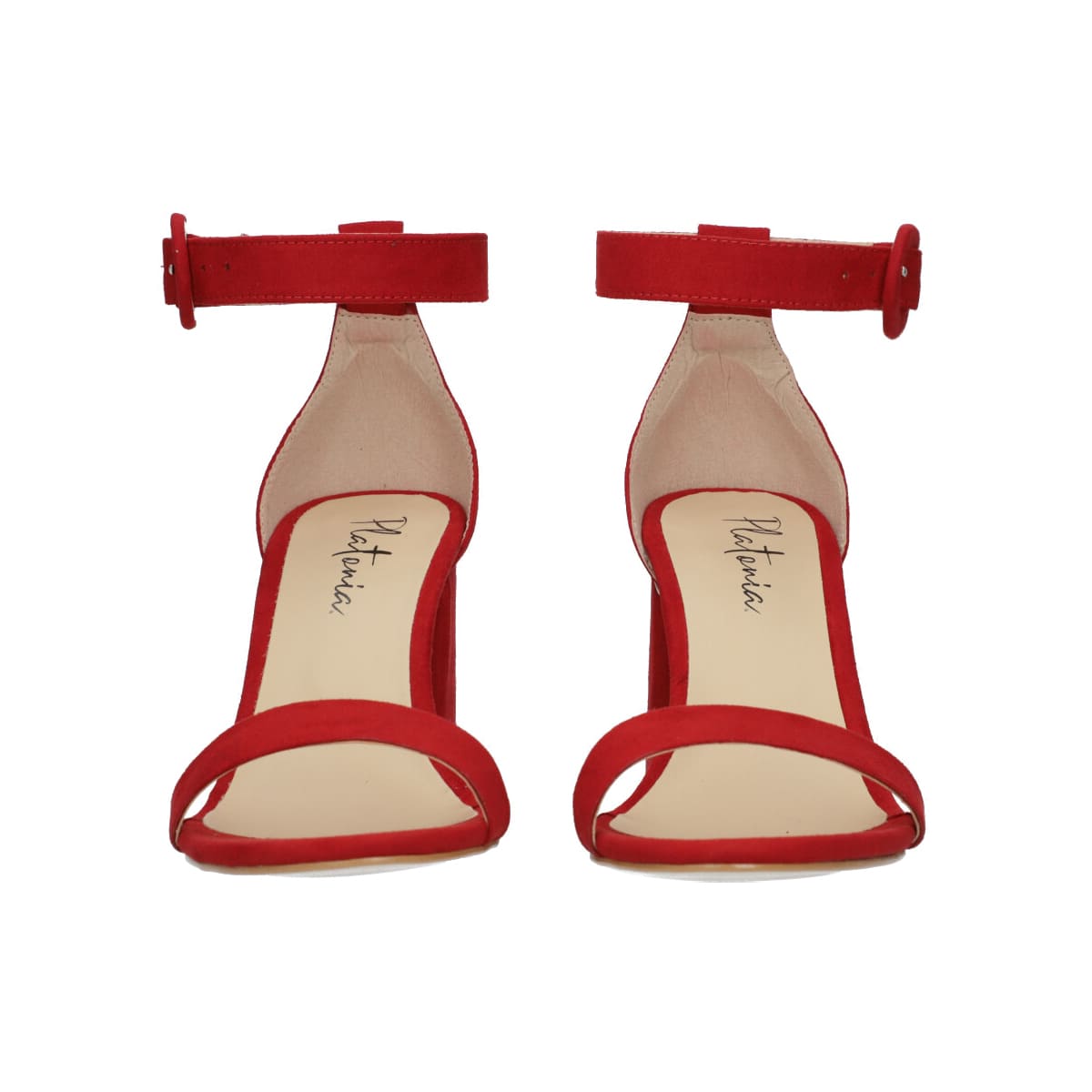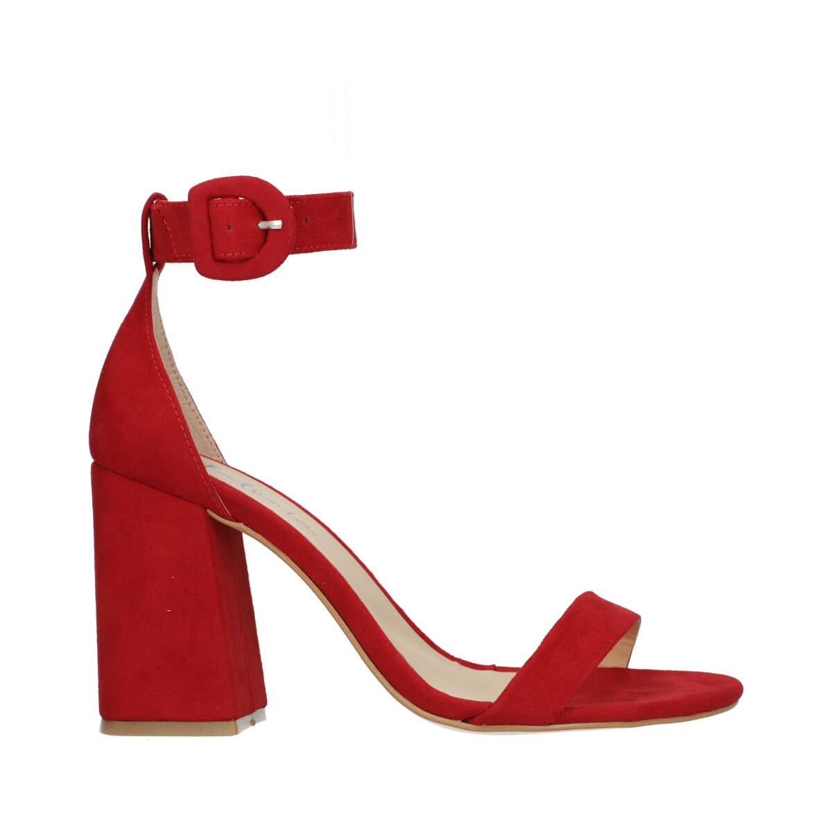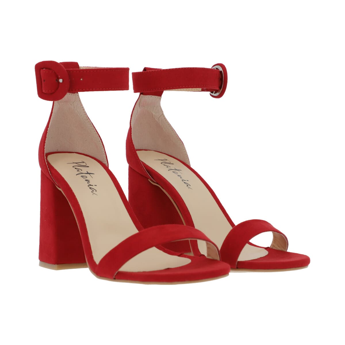 Zapatilla para mujer color rojo con látigo ajustable para el tobillo con hebilla circular