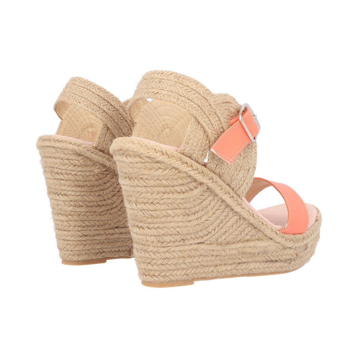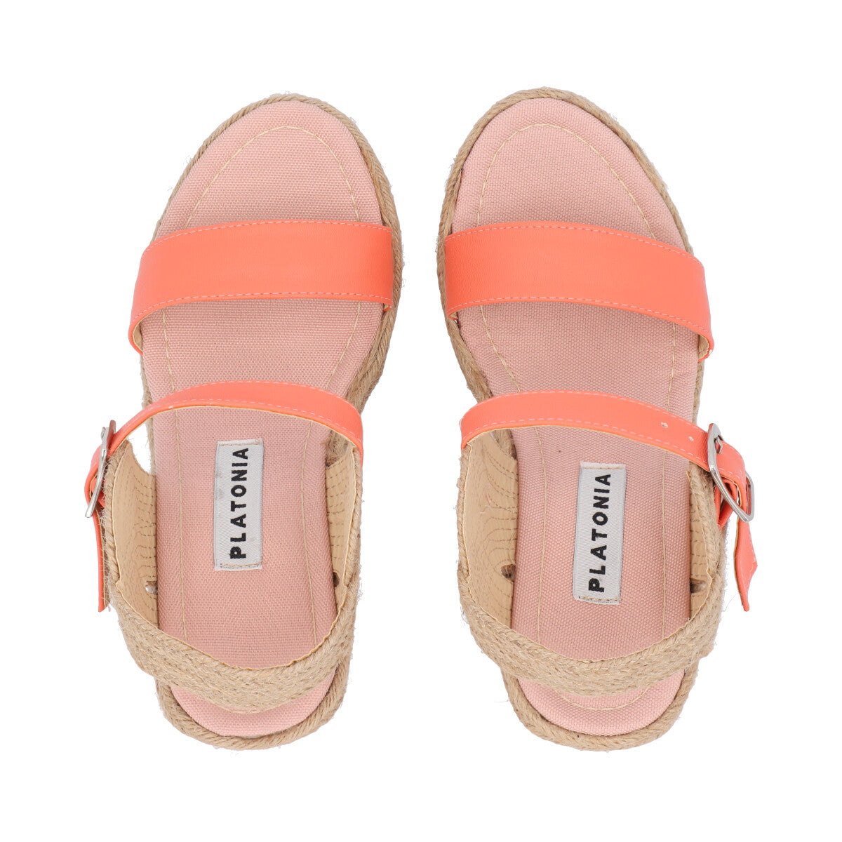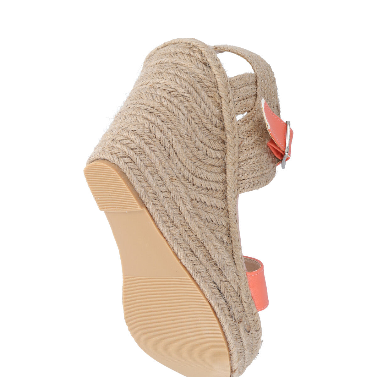 Alpargata sandalia de plataforma con yute natural y látigo ajustable cabra piel sintético coral para mujer.