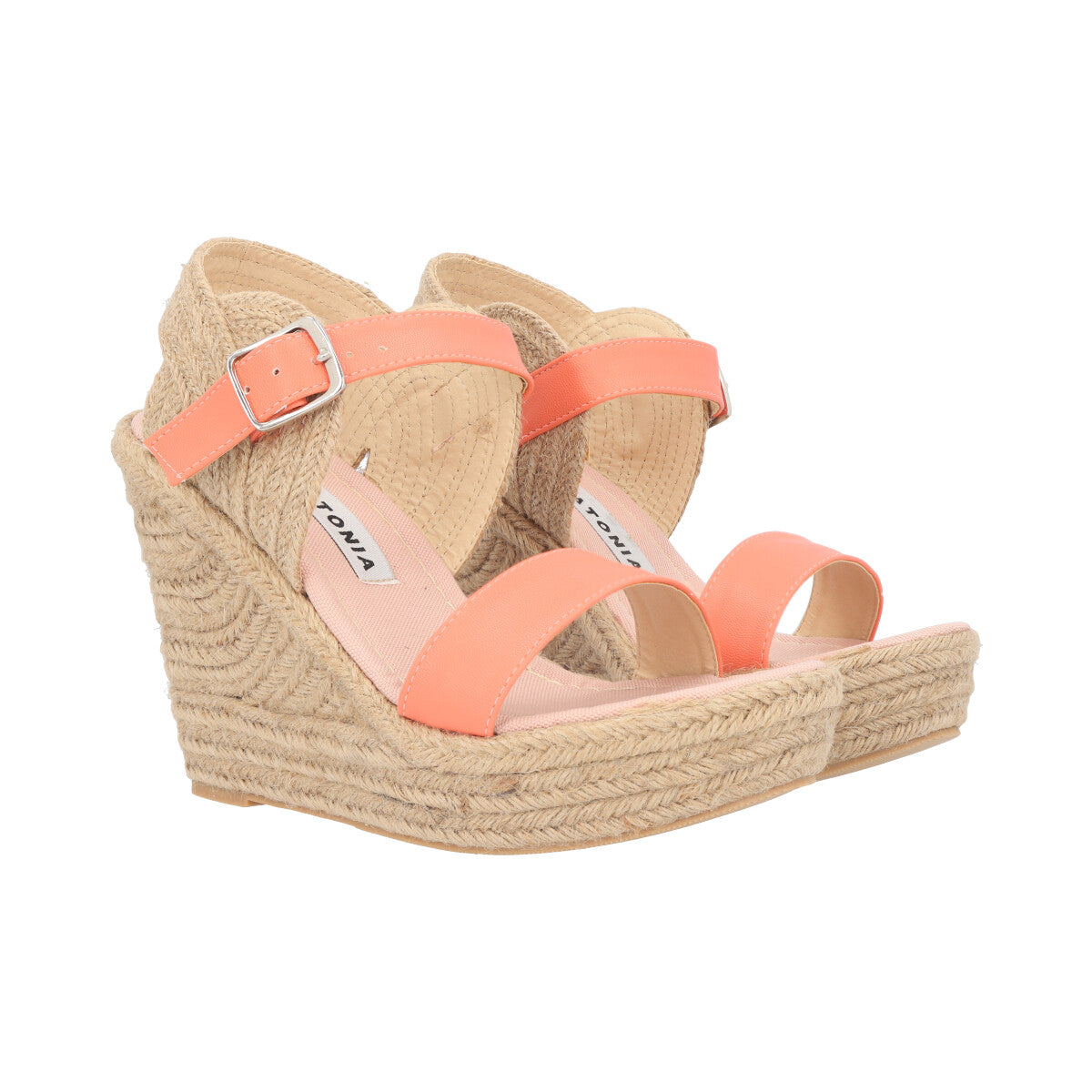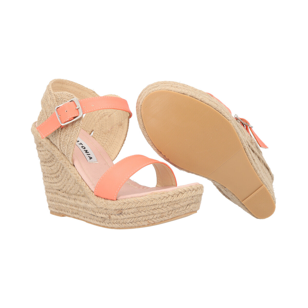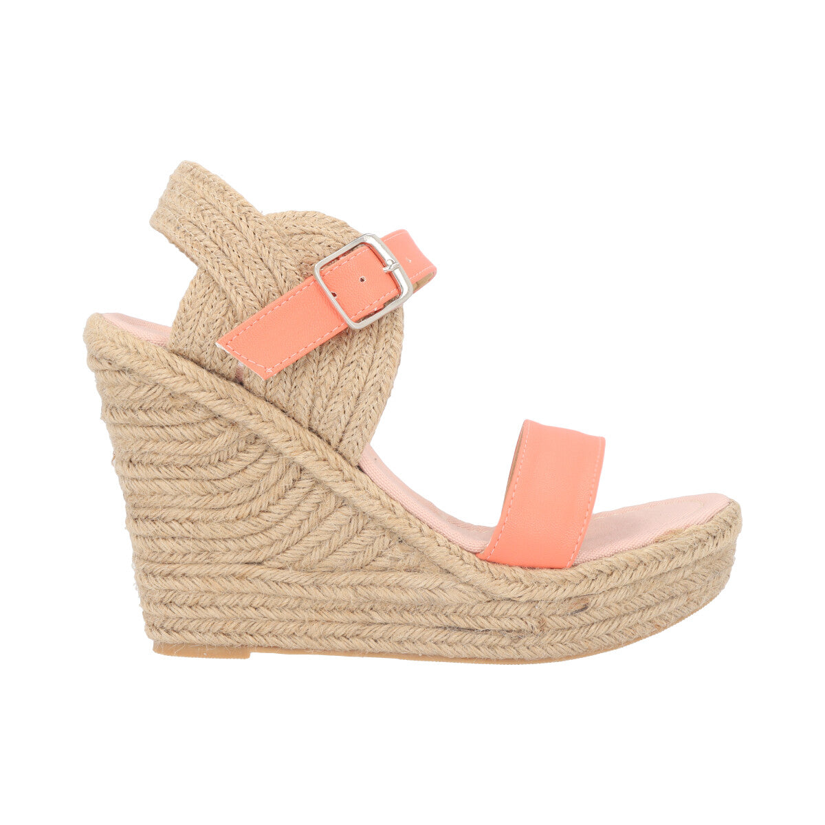 Alpargata sandalia de plataforma con yute natural y látigo ajustable cabra piel sintético coral para mujer.
