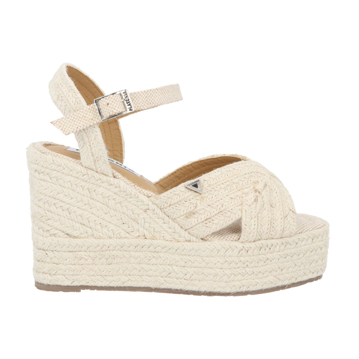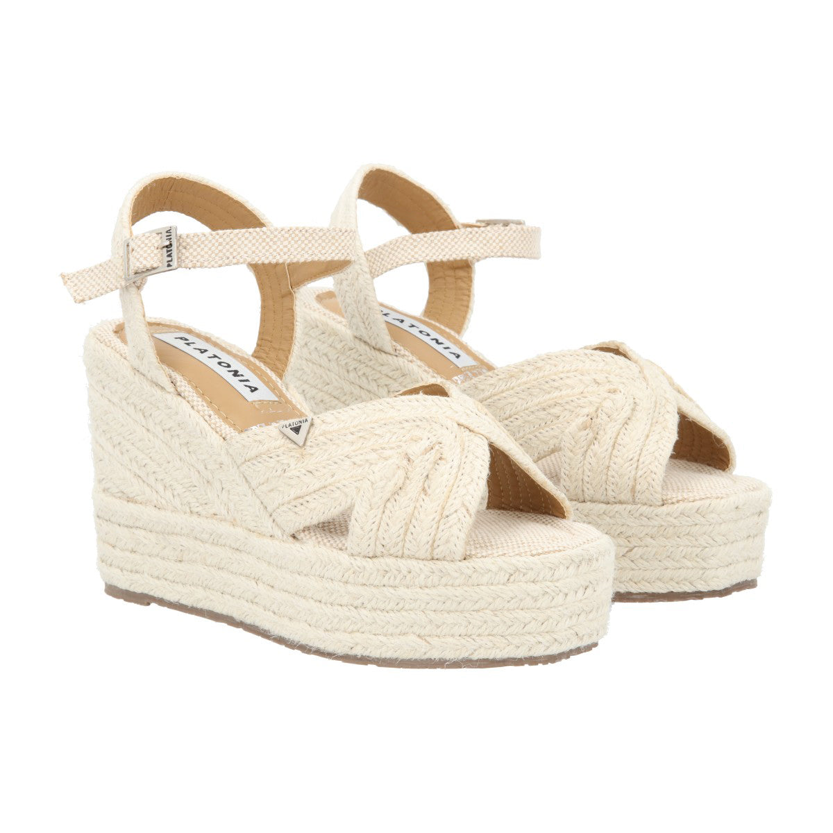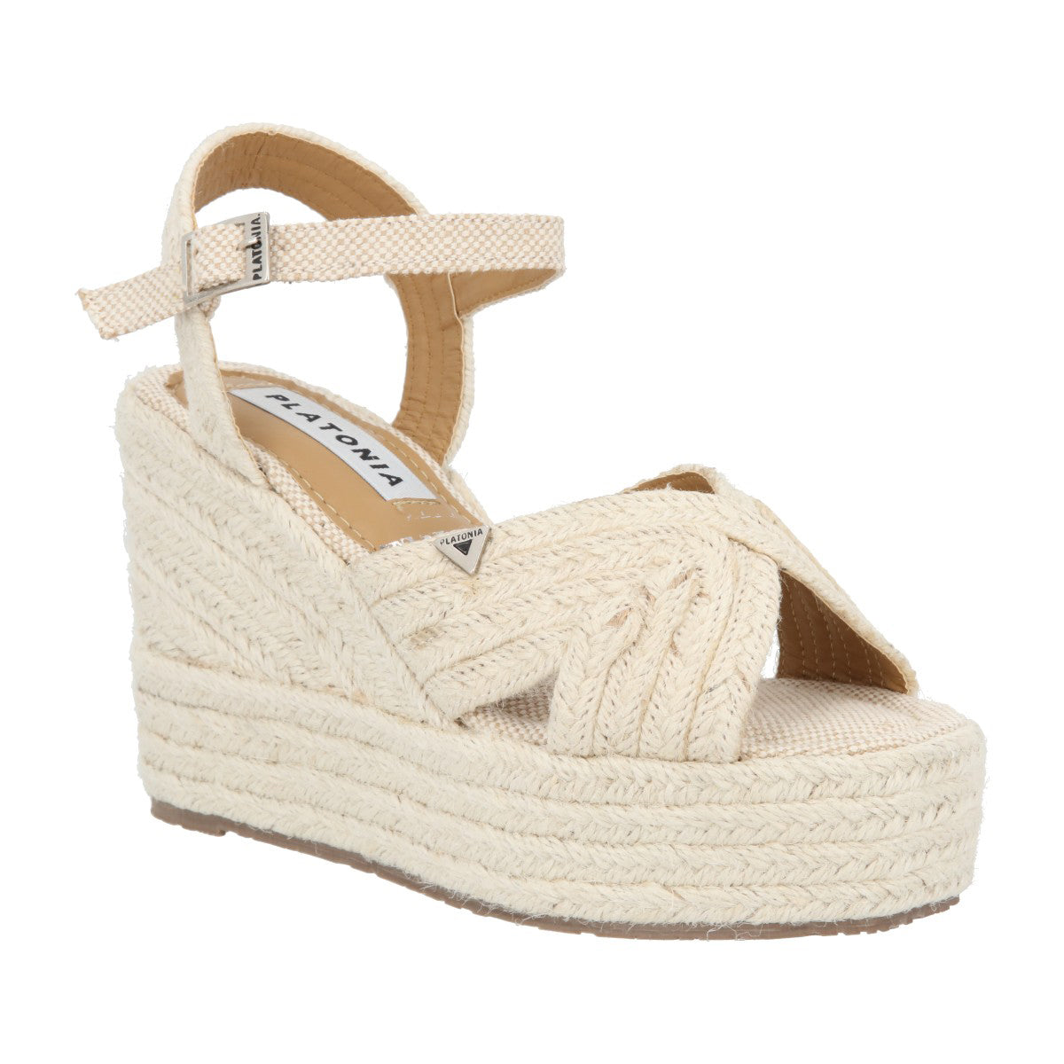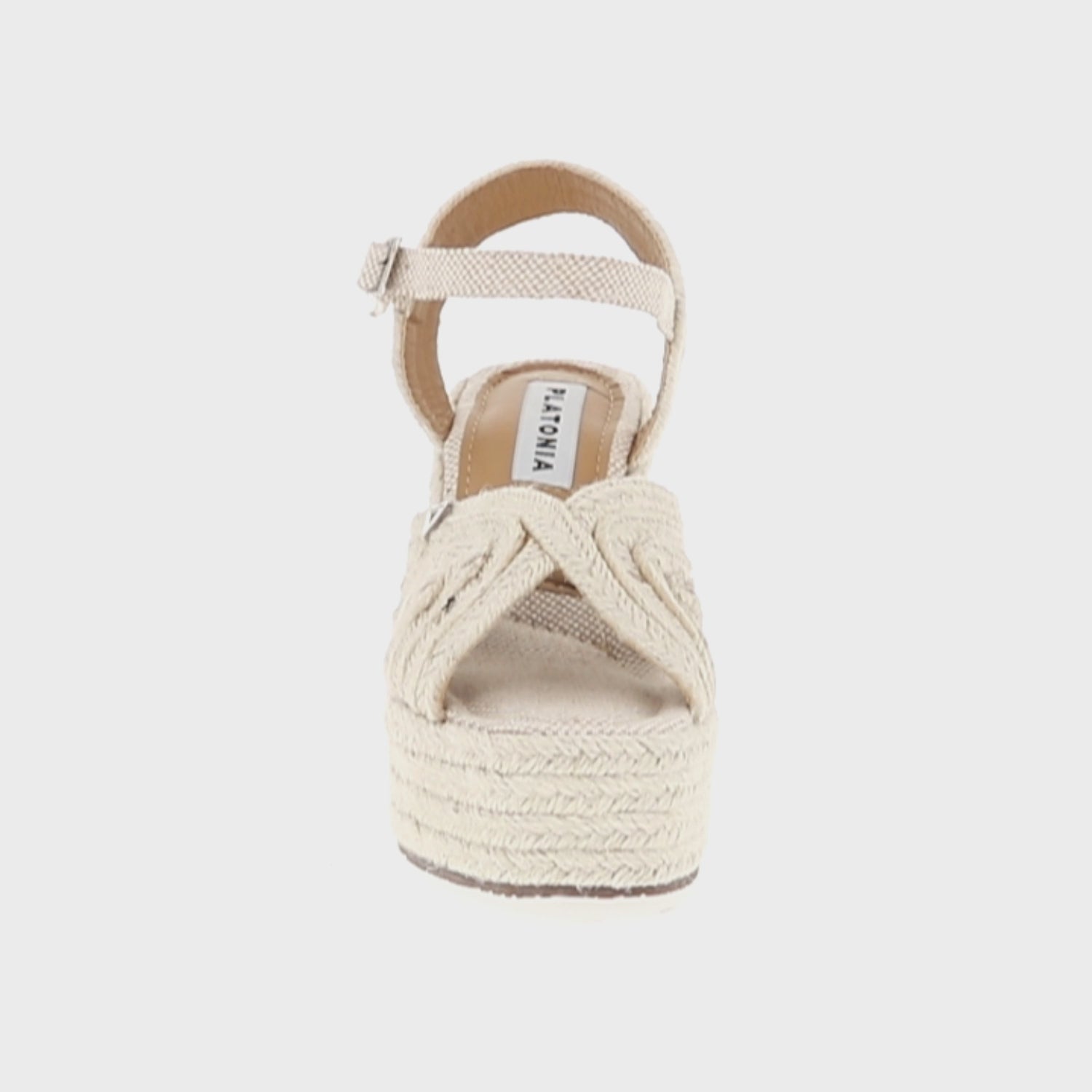 Sandalia de plataforma Petra con yute natural neutro con látigo ajustable estándar para mujer.