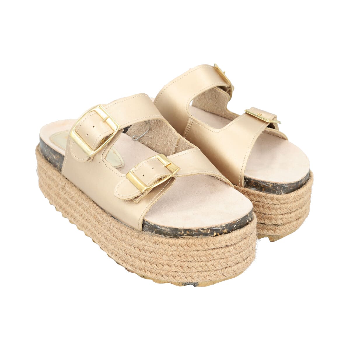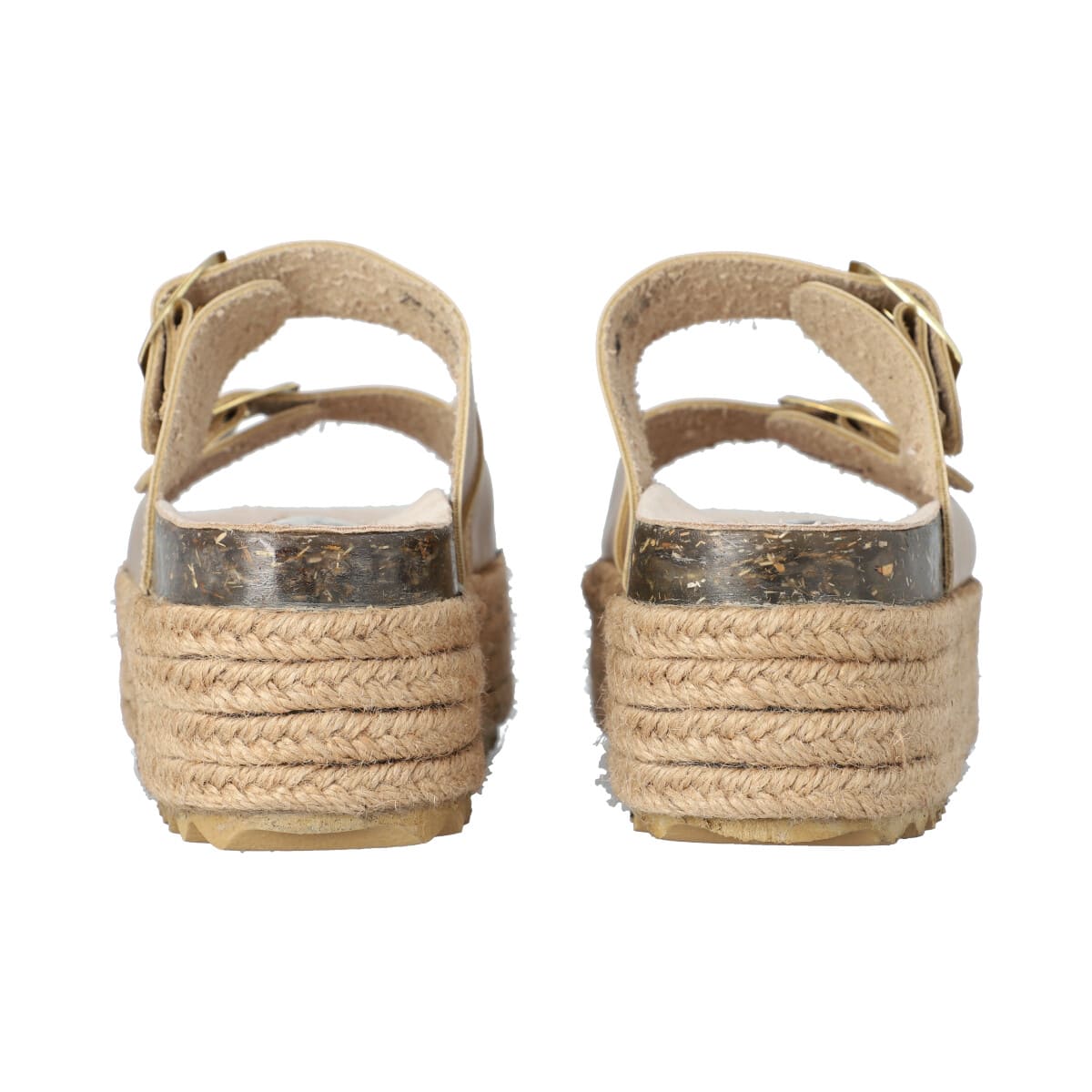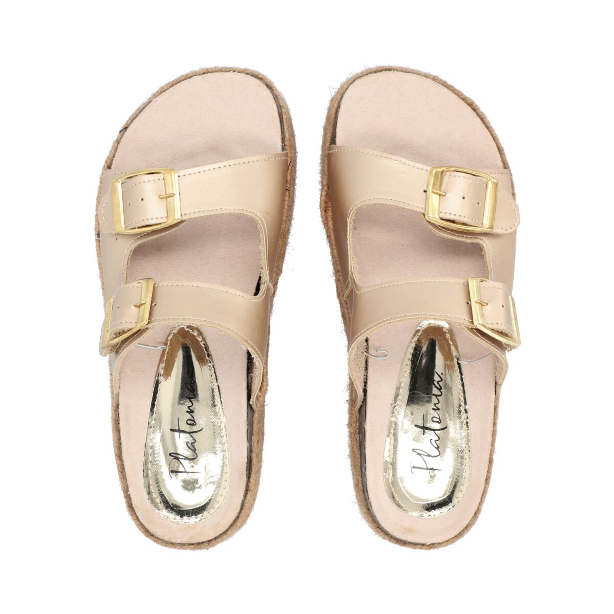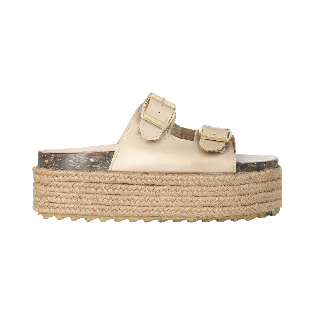 Sandalia de plataforma con yute para mujer color bronce de dos hebillas